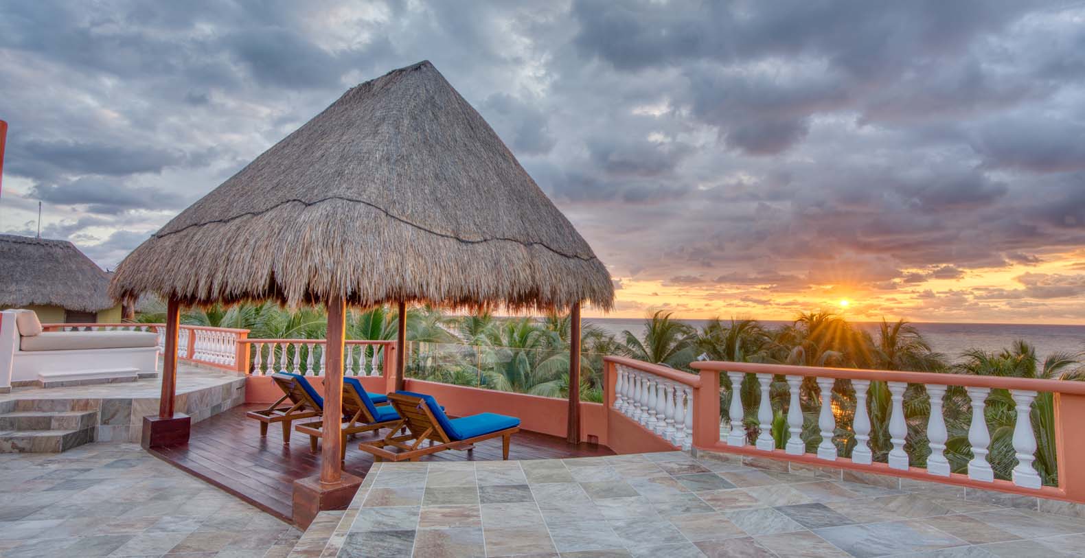 Casa Yardena's observatory rooftop balcony is equipped with an impressive lounge seating area, parasols, bar and a breathtaking view of the bay, the ocean and the vast jungle. The enchantment is complete as the sun romantically sinks beyond the horizon after another fabulous day. Casa Yardena is truly elegant, deliciously secluded and incredibly spacious, beachfront paradise home that charms its guests with its beauty, comfort and luxurious design, an exclusive property located on 80 feet of the private white sandy beaches of Tankah on Soliman Bay in the Caribbean, the world's second longest coral reef, home for colorful tropical fish and many varieties of coral and sea plants.