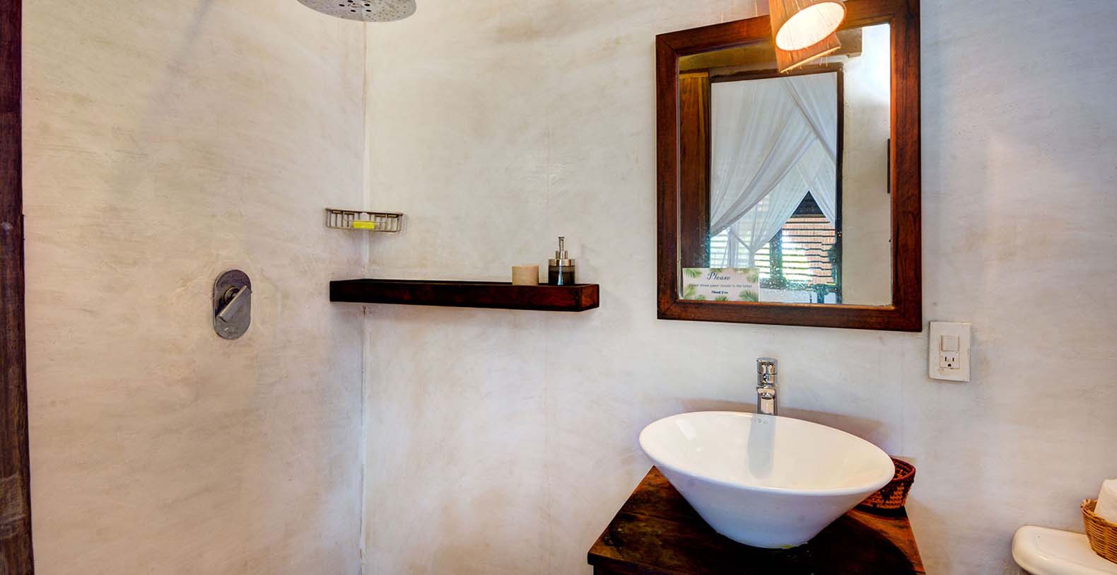 Eco Friendly Lodge features a wonderful open air concept, with air flowing through the house. No the house has no A/C and the furnishings and all the decor are locally harvested and Eco materials. The house is a wonderful blend of new and rich friendly harvested woods with a local wonderful glazed tile throughout. The house is made to be at one with nature and not destroy that which is around it. The beaches are sandy and pristine and you are close to everything without being too close to the neighbors and things that may disrupt your stay. Focus instead on beautiful surroundings during your holiday with us.