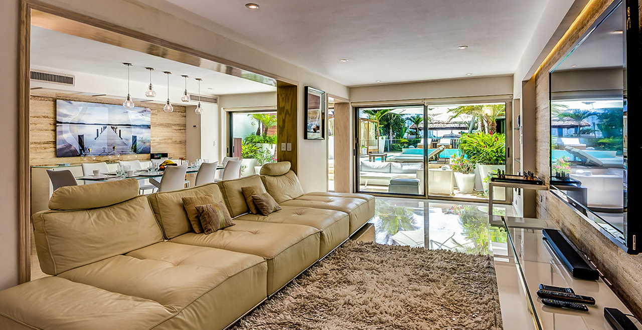 El Patron Villa is designed for up to 12 guests, spanning across 1,000 square metres that include 2 swimming pools, sauna, home cinema and a rooftop terrace with a bar. Separate bedrooms and living rooms allow for intimate gatherings, while ensuring personal space and tranquillity for all. Contemplate taking your vacation to the next level with a luxury yacht rental, anchored in your own back garden (inquire for more details).
