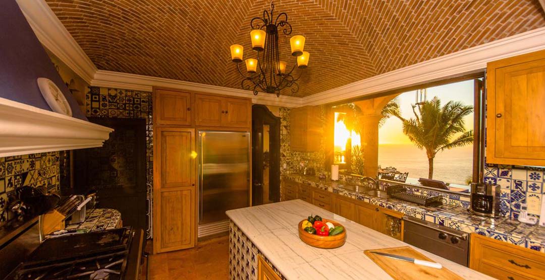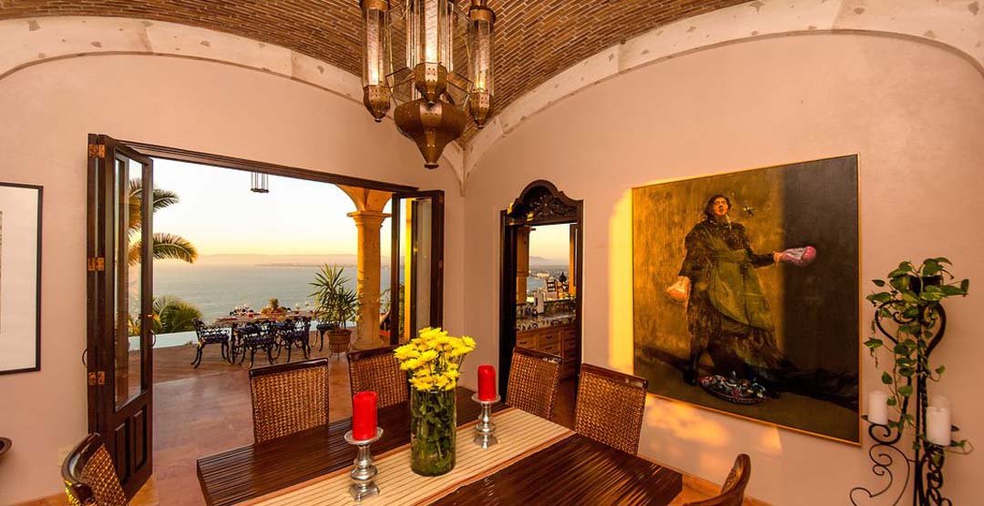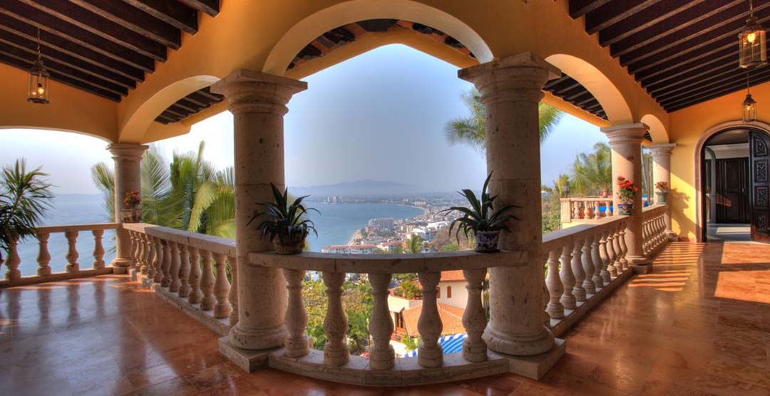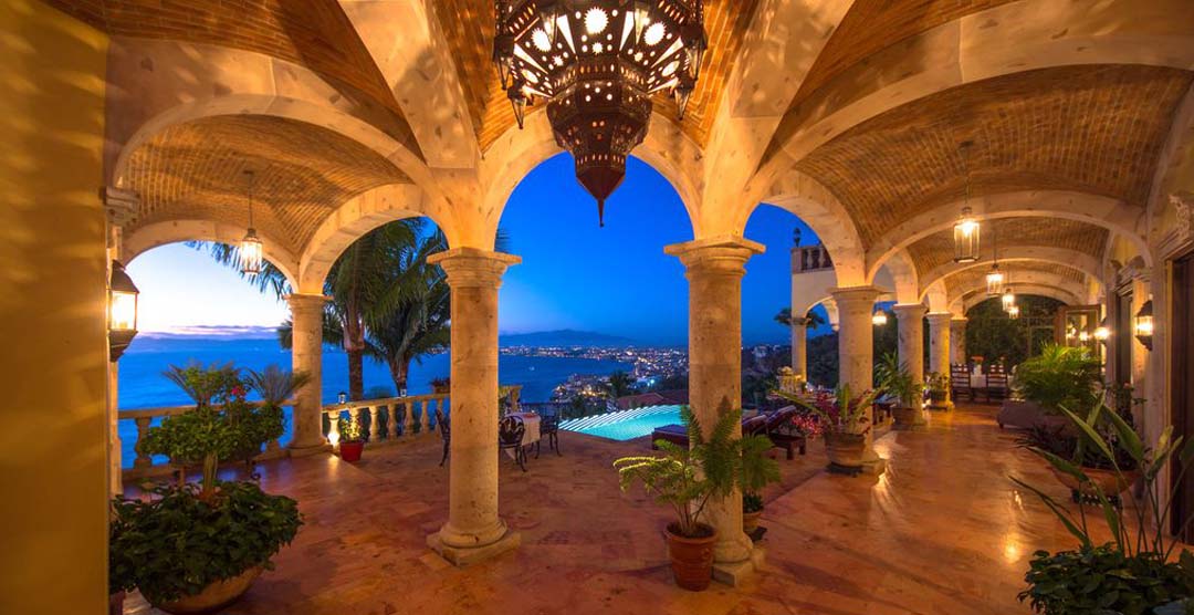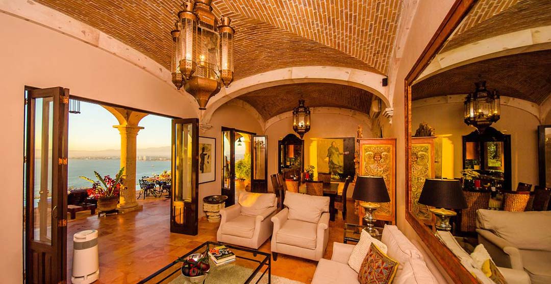 The Hacienda is located on a cliff in the exclusive residential enclave of Real de Conchas Chinas (only 11 homes are set inside this gated and guarded community), adjoining the famed Conchas Chinas neighborhood. The house’s panoramic ocean, city and mountain views are unrivaled.
