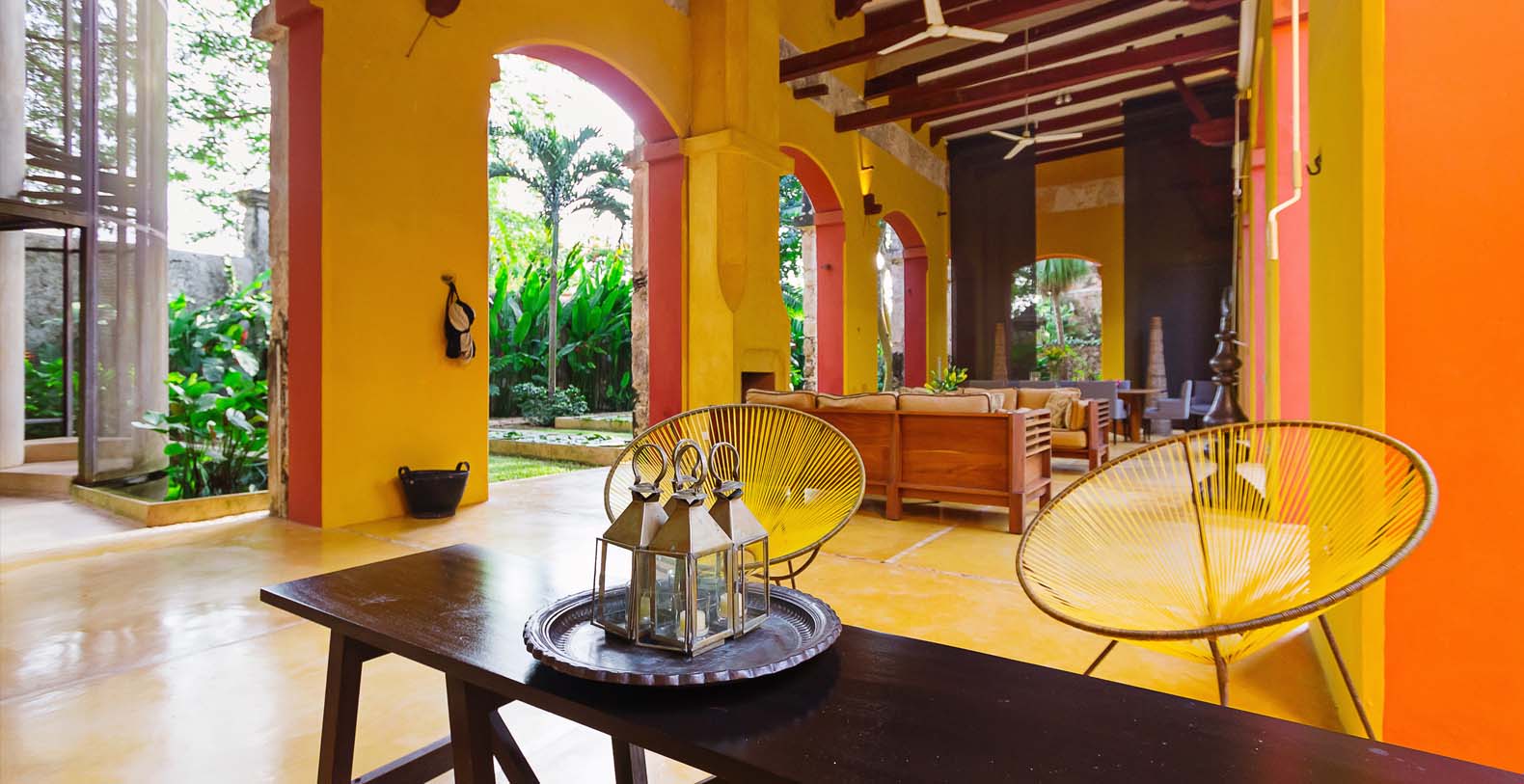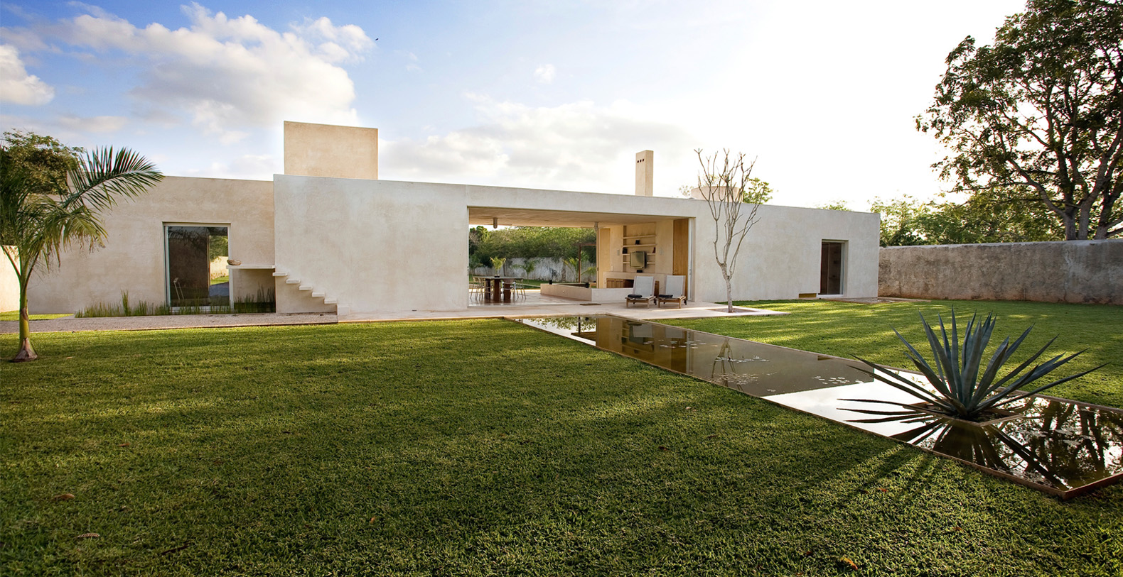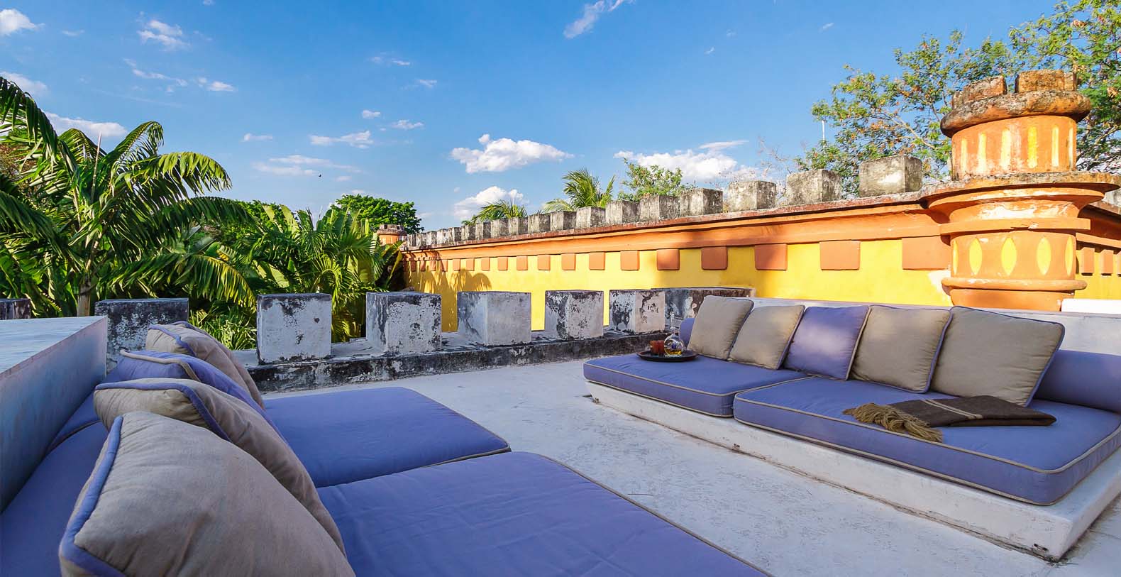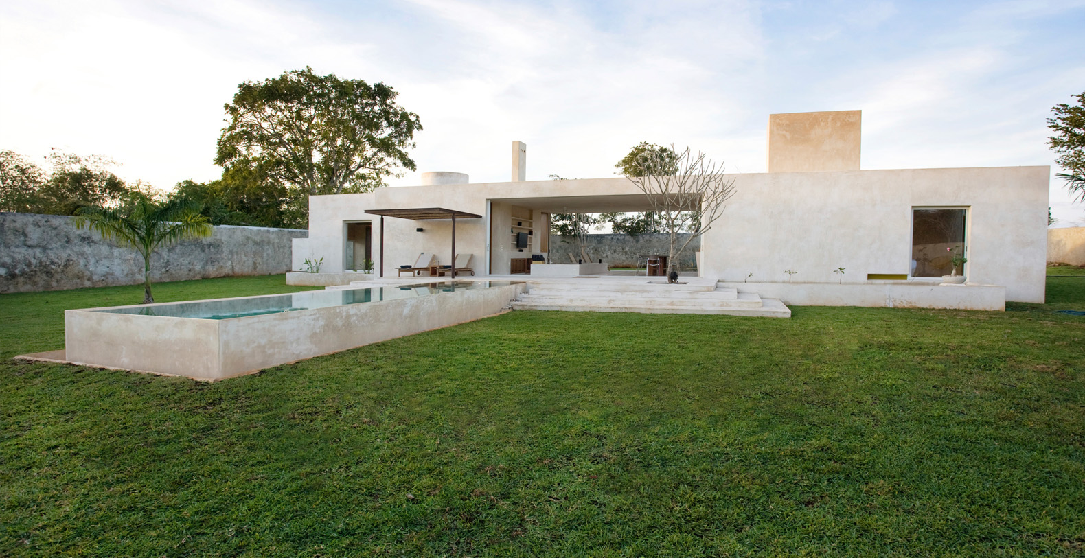 Tucked away on the lush grounds of Hacienda Sac Chich,Casa de Maquinas are 3 limestone buildings, a water tower and an 85 ft. chimney. Surrounded by palm filled gardens Casa de Maquinas consists of three 2000sq.ft. rectangular structures that date to 1850.
