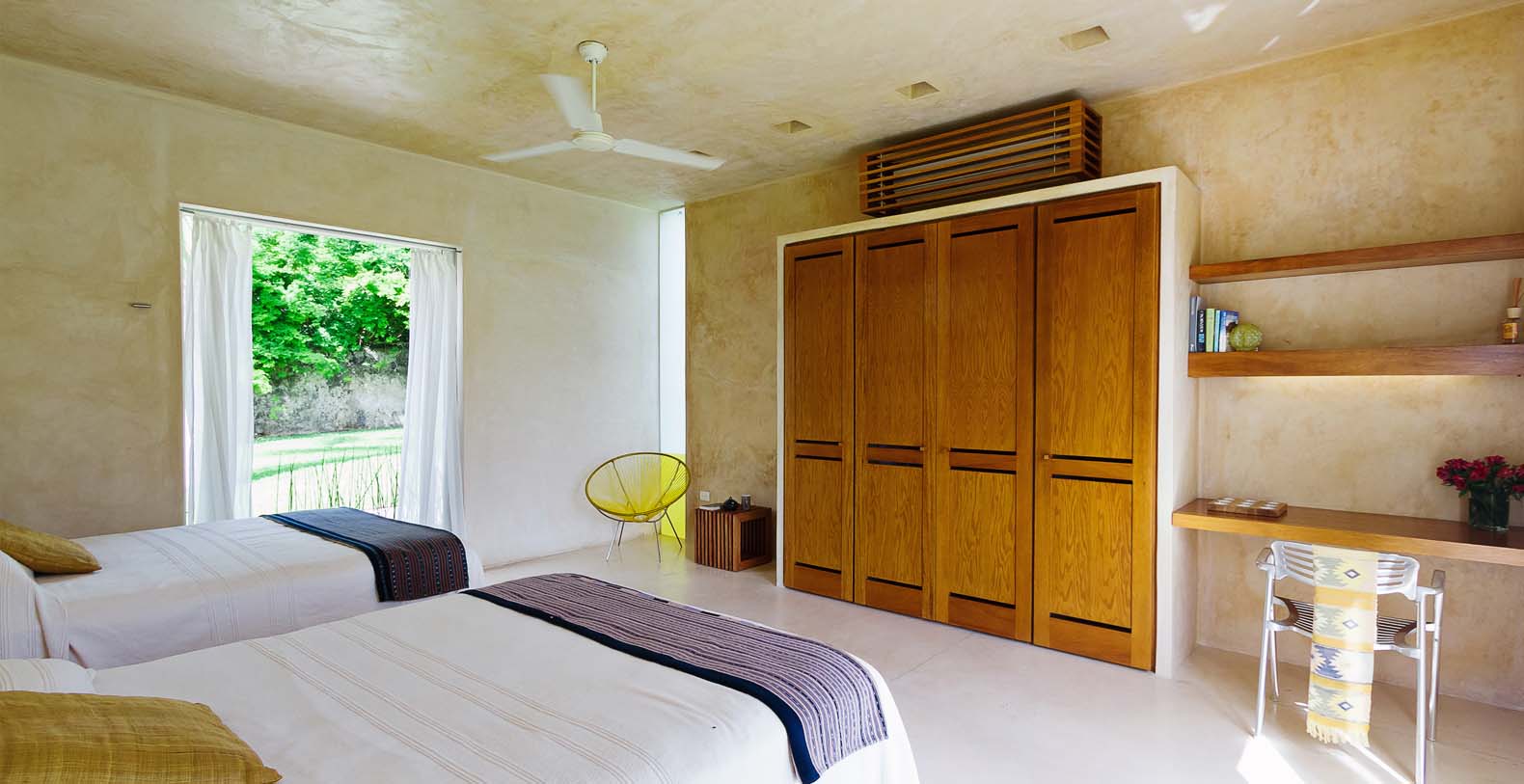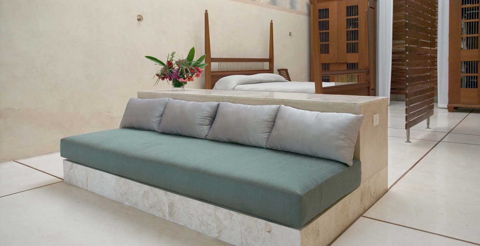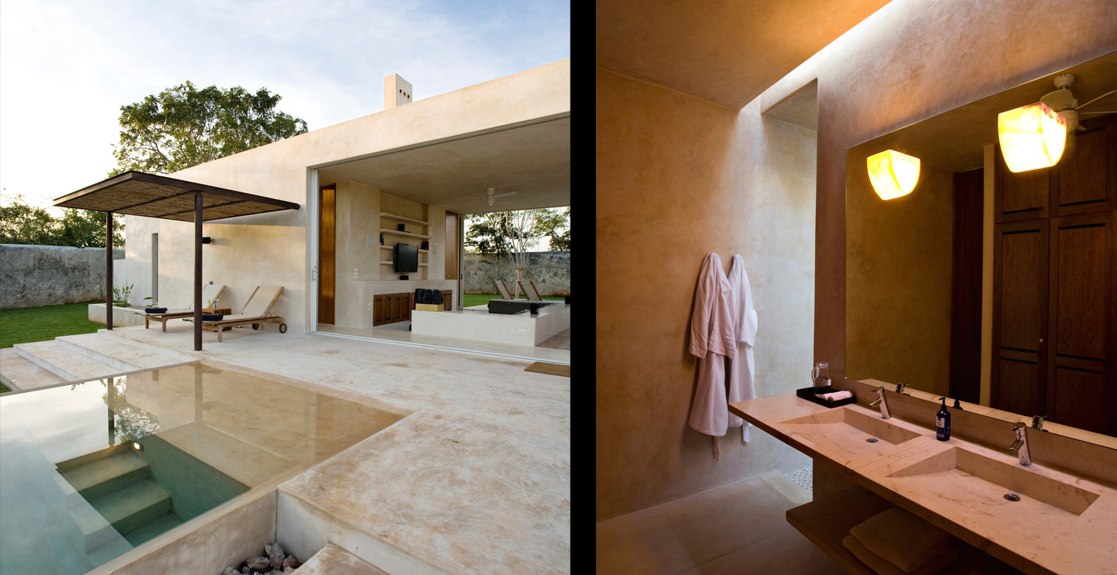 The house restoration has been a project of the renowned Mexican architect Salvador Reyes Rios and his partner and wife Josefina Larrain. Most of the furniture throughout is designed by Salvador and fabricated locally. This hacienda has been published in numerous magazines and books. Most recently Hacienda Style by Karen Witynski and Joe Carr, and prior to the renovation of the pool and Casa Nueva, The New Hacienda by the same authors.