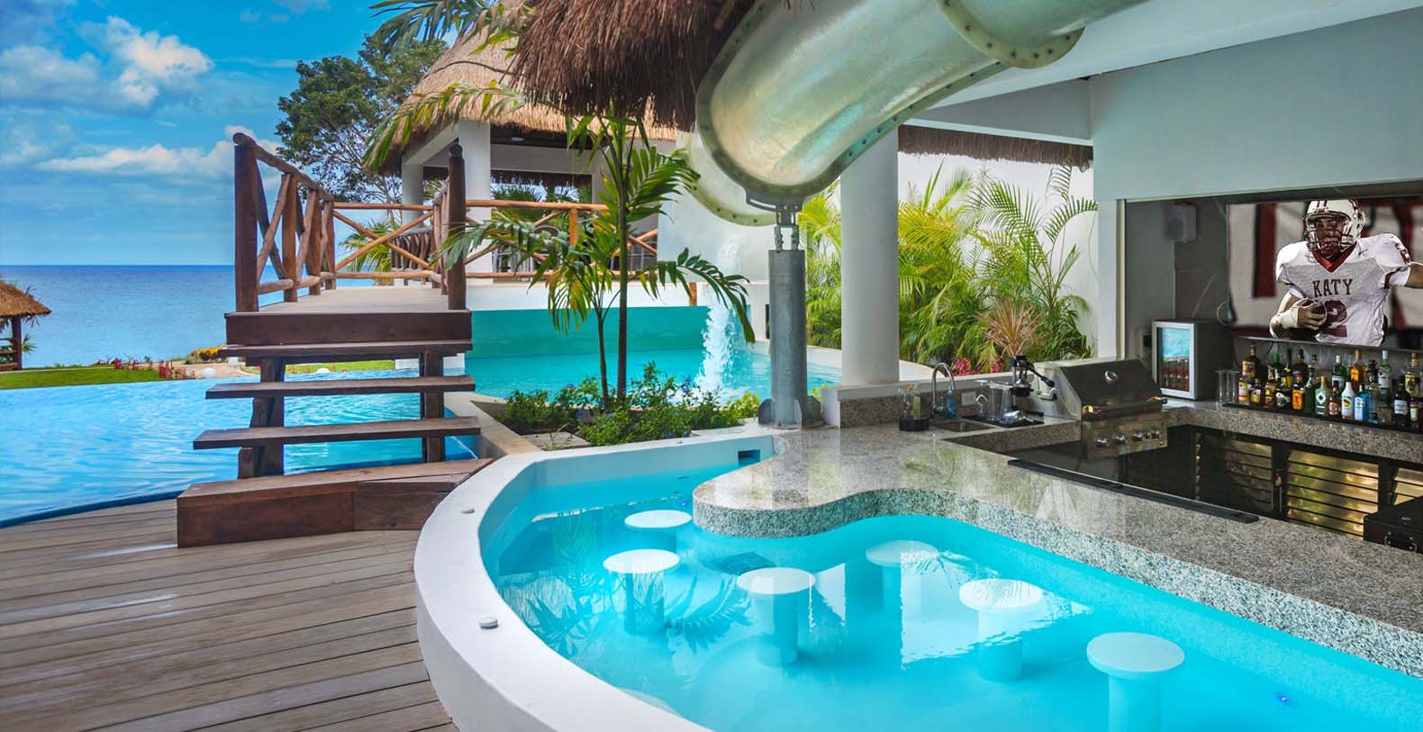 Riders board the Private Paradise Villa body slide on the roof of the Sunrise tower building at the Top-Of-The-World Sports Lounge and drop more than 40 feet! Several twists and turns later they fly through the game room, the staff kitchen and finally over everyone’s head at the Flyin-Mayan swim-up bar in a lighted see-through tube. Private Paradise Villa’s full-time staff of bilingual butlers, maids, bartenders and private chefs are at your command but you will delight in never having to ask. Our totally new vacation package concept is designed to give affluent travelers what they want before they even know that they want it – and not only at Private Paradise Villa but all around this amazing and ultra-safe Caribbean island.