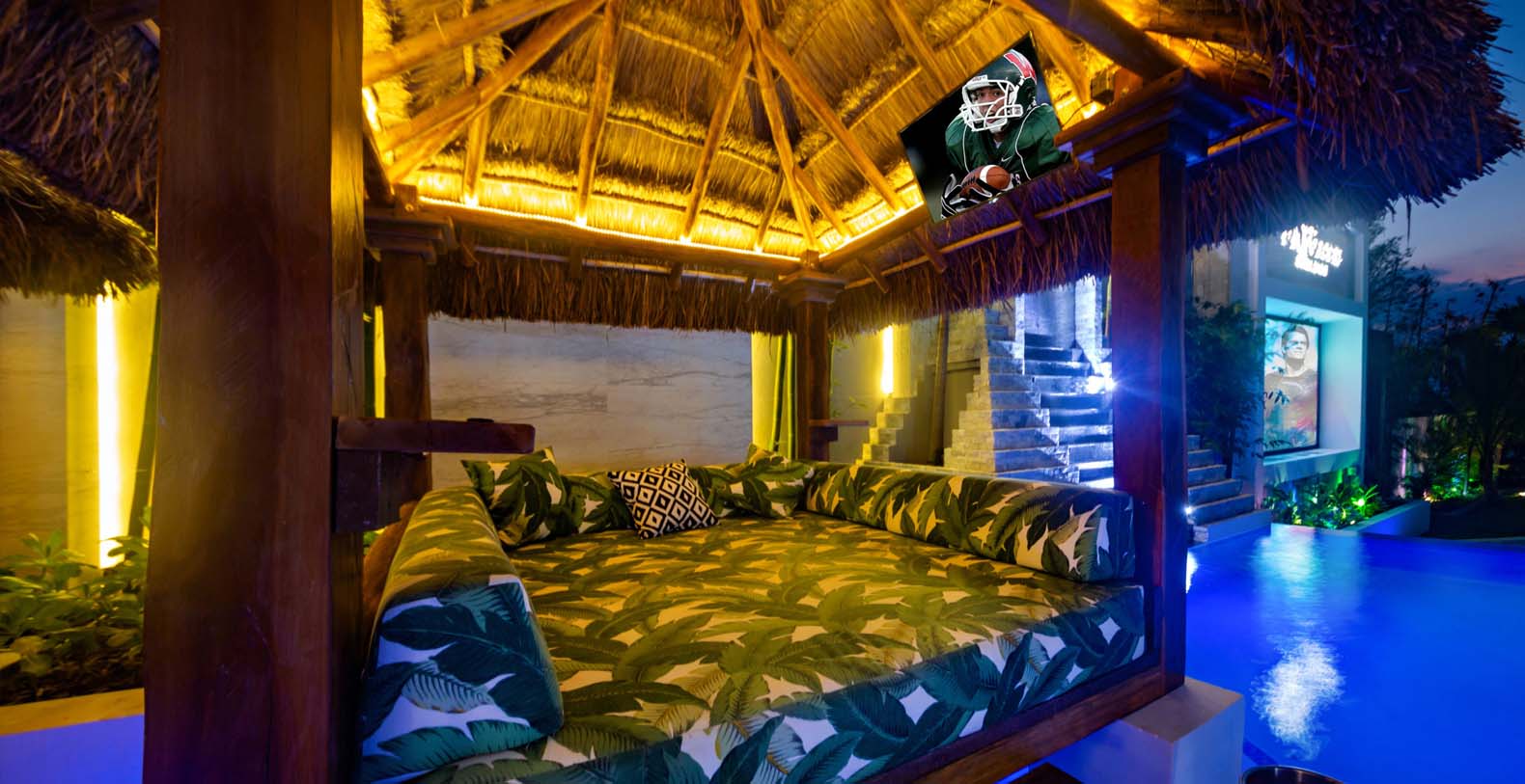 Private Paradise Villa – Boasting multiple buildings, a staff of 10 and a whopping 14,000 square feet of living and entertainment areas, Private Paradise is a palace size estate that blurs the lines between a luxury mega-villa and a theme park resort!