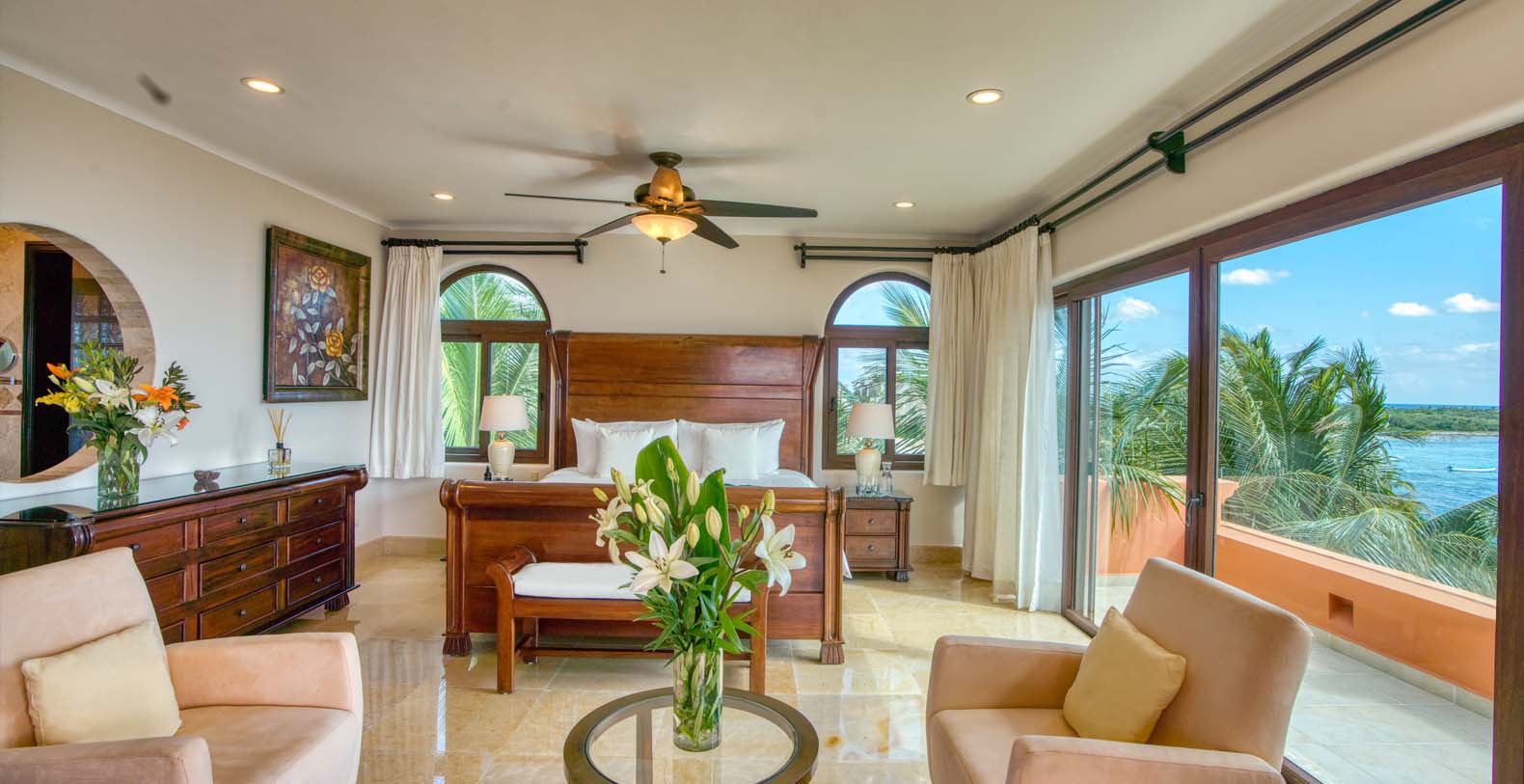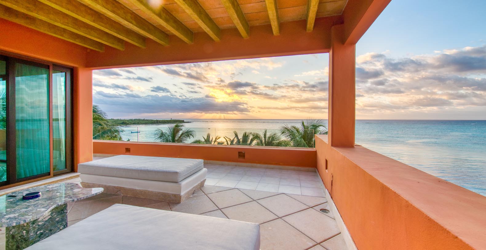 Sueno del Mar Riviera Maya villa rental is conveniently located on the pristine beaches with turquoise blue water of the Mexican Riviera Coastline. The area offers a wide range of activities for all travelers, such as diving, fishing, golf and shopping. Located at just 15 minutes drive from Tulum's Mayan Ruins for the history buff and close to a few eco parks and other natural attractions for the ecologist.