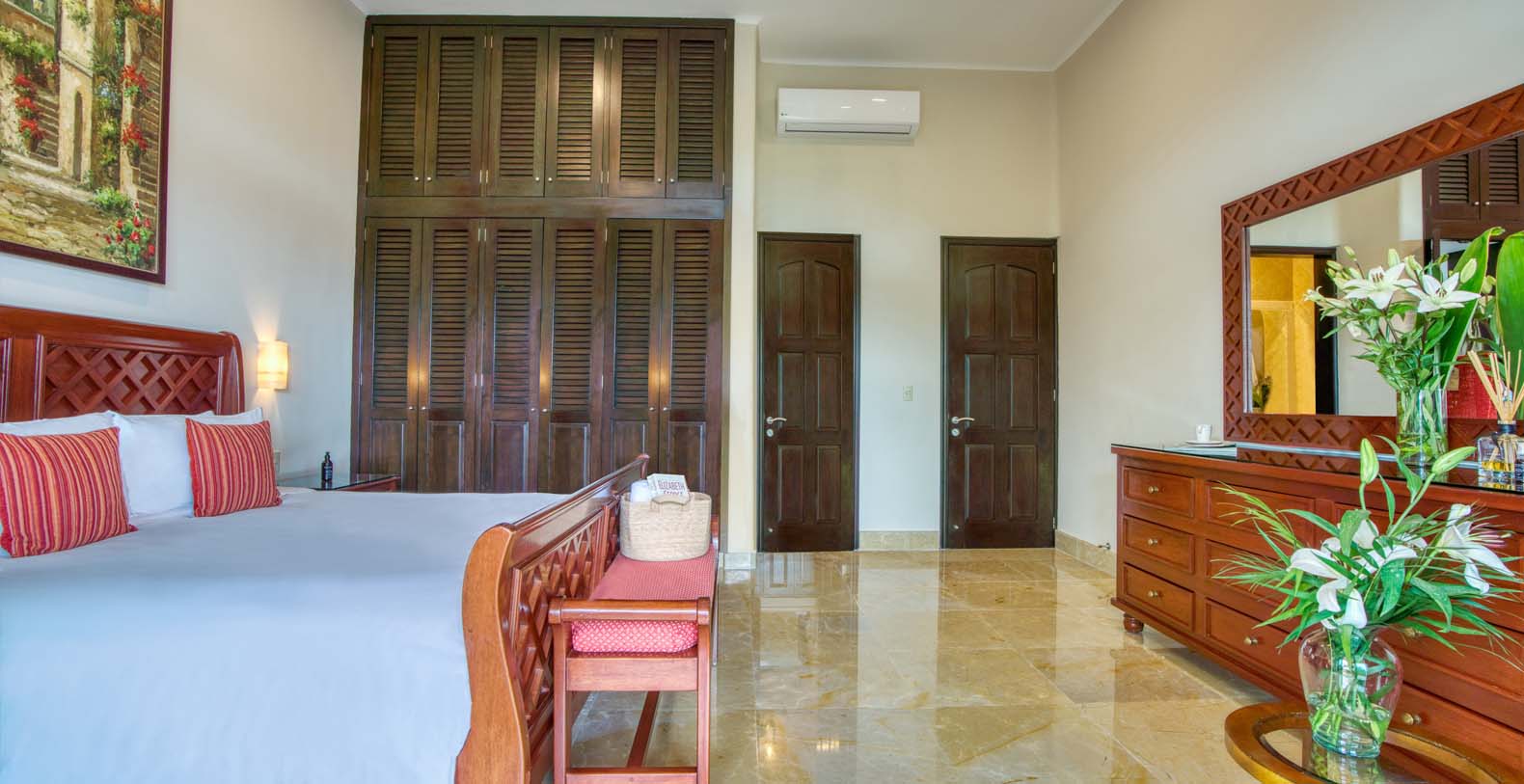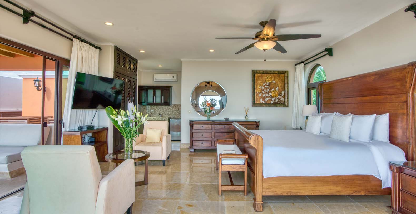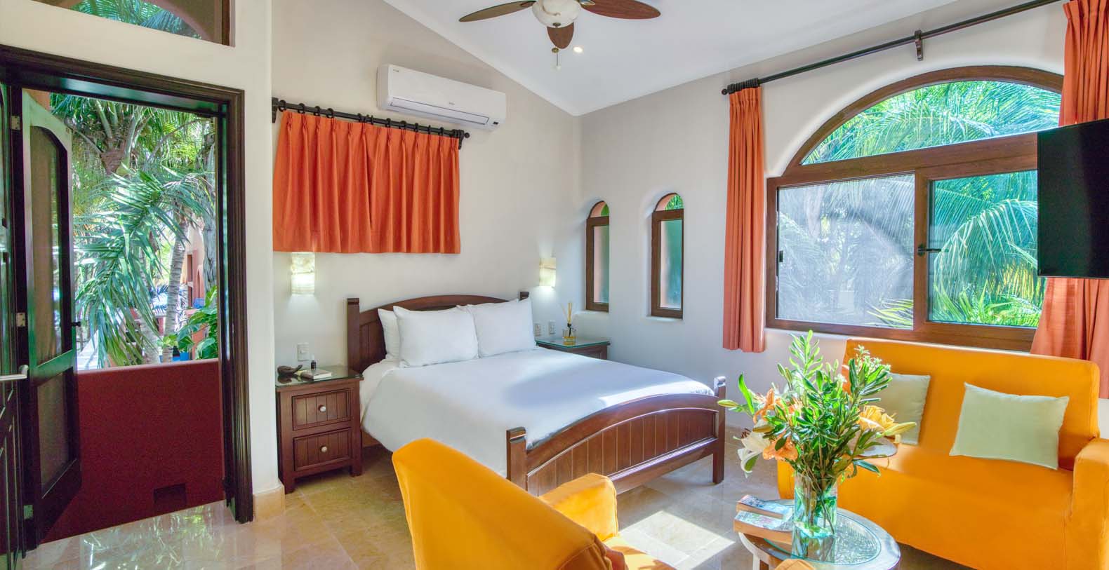 There are two living areas at Sueno del Mar. The first one can accommodate all guests comfortably with a spectacular view of the pool and the beach that is ideal for relaxing and entertainment. The pool is also equipped with an outdoor shower for your comfort. The second living area is located at the villa's entrance. Free internet access is available, which is ideal for modern travelers. Our manager also offers personal assistance, which includes planning and booking authentic Mayan excursions, and massages in the comfort of your dream vacation home. We also offer full-time caretakers.
