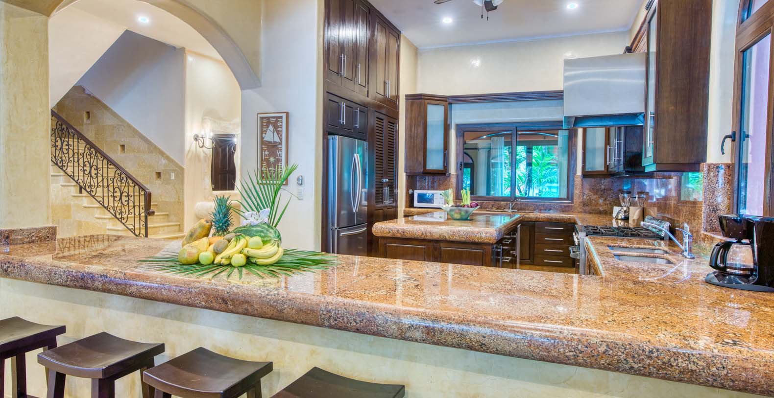 Your own personal Chef will prepare delicious meals for you in our fully equipped kitchen. Enjoy your meal in our dining area or outside by the pool. The Chef is dedicated to create gourmet recipes that will satisfy your appetite. Cuisines range from authentic Mexican to traditional European meals. All you need to do is provide us with a list of your favorite foods and we're happy to cook them, as well we can provide you with some menu ideas and always are happy to cook local cuisines for you and your guests. This is about feeling free to vacation and live life to the fullest and we want you to know that we believe in that idea.