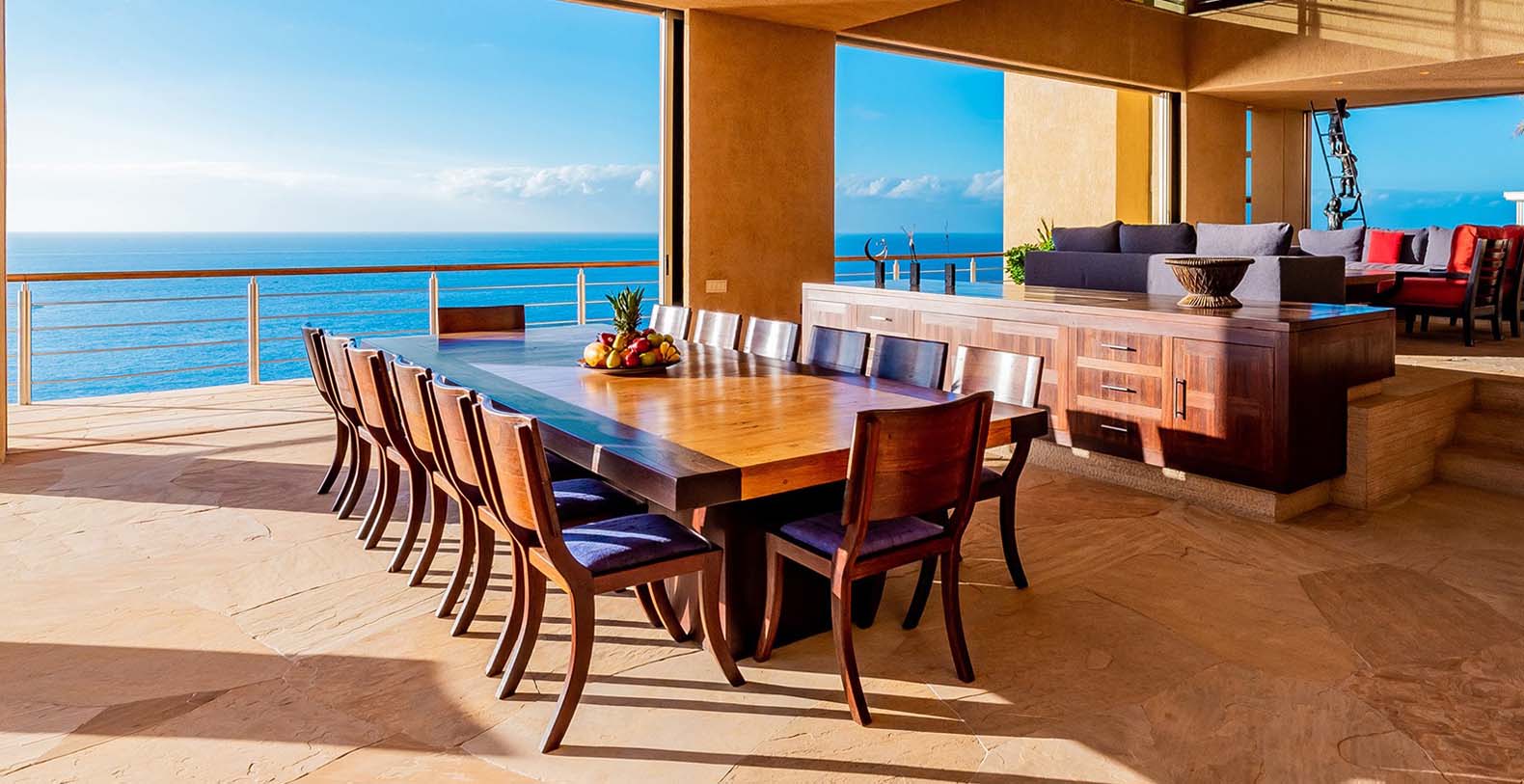 With a gourmet kitchen, a large separate commercial kitchen, indoor dining for 16 in the magnificent dining area overlooking the scenic main terrace, Villa Bellissima is ideal for entertaining. In fact, this exquisite property is a perfect choice for special events and can easily accommodate 150 guests for a dream location wedding, anniversary party or cocktail soirée.