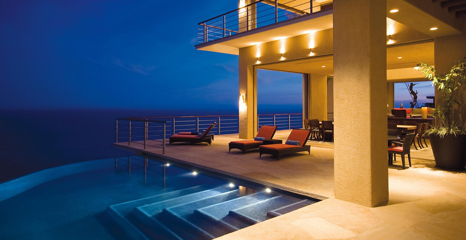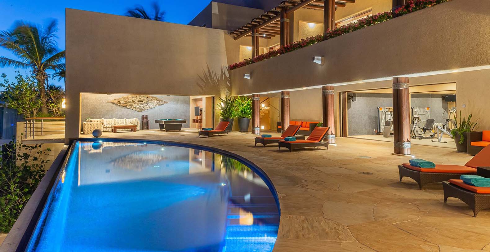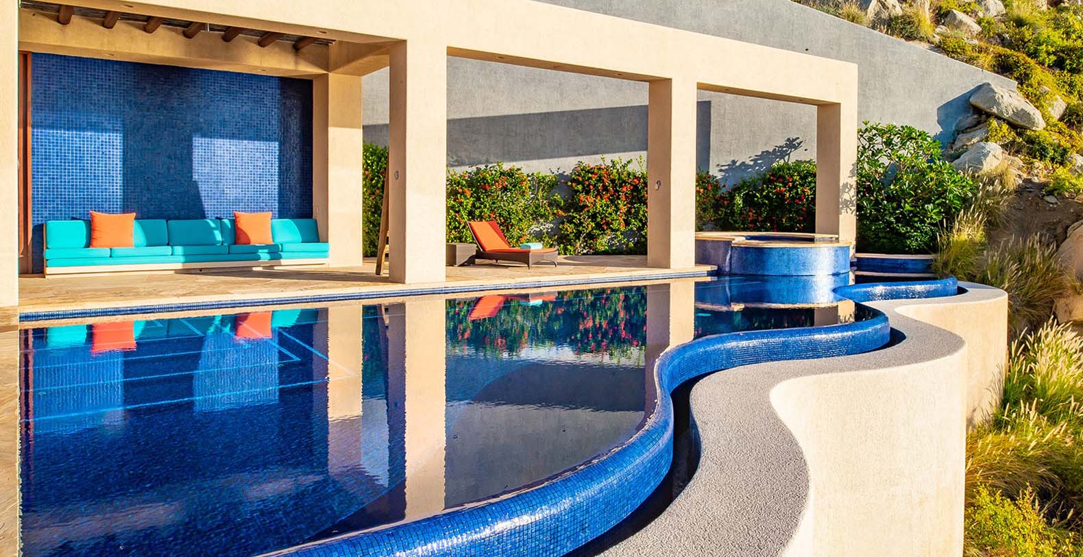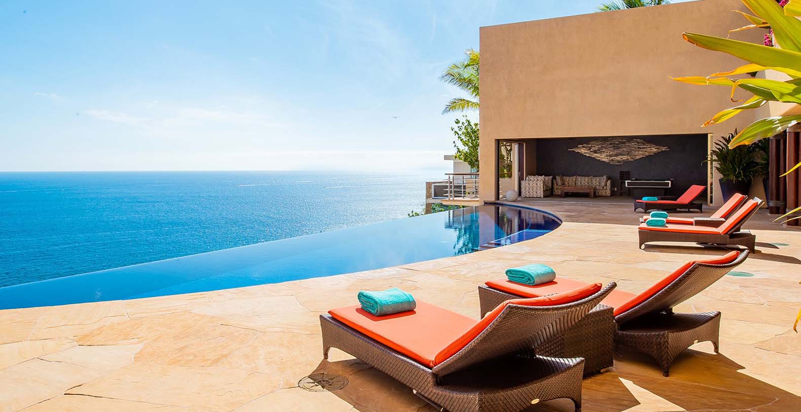 Villa Bellissima Cabo San Lucas, is an exceptional style and grace are clearly evident in every aspect of this sophisticated 5-level, 8BR/11BA home. The sleek contemporary architecture has been designed to maximize the impressive hillside location. Balconies and terraces invite guests to revel in the vistas. Inside, a spacious atmosphere of comfortable elegance awaits. Expanses of glass on each level flood interiors with that peculiarly brilliant Baja light. Guests will enjoy the privacy of the 8 roomy suites, each with its own balcony/terrace and inspiring ocean views. You’ll also find a home theater with 112" screen and reclining seating for 12, a gourmet kitchen, an ocean-view gym and even an elevator to zip you from floor to floor. Outside, the dramatic swimming pools look out over sweeping views of the Pacific.