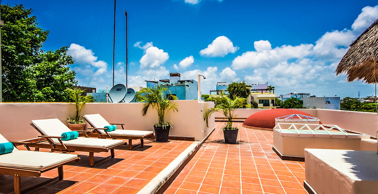 Located in downtown Playa del Carmen, Villa Mirasol’s location is second to none. The tropical white sand beaches and splendid turquoise sea are just one minutes walk away. The lively Quinta Avenida (5th Avenue) where you will find the towns best restaurants, bars and shopping is just one block in the other direction.