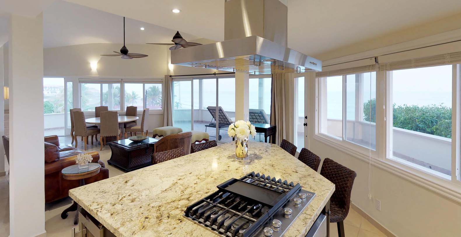 Inside, you’ll appreciate the luxurious ambiance of this exceptional vacation escape. With marble and tile flooring, sophisticated décor and comfortable bedroom suites, Villa Playamar affords you a tranquil sanctuary. When you’re ready to explore, the Puerto Los Cabos golf course and marina are easily accessible. Plus, you’re but a short drive to historic San José del Cabo. Treat yourself to a tranquil and private escape in paradise.