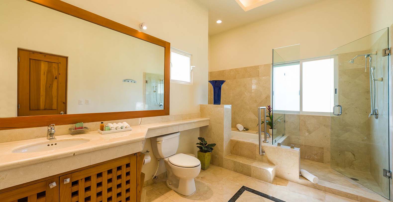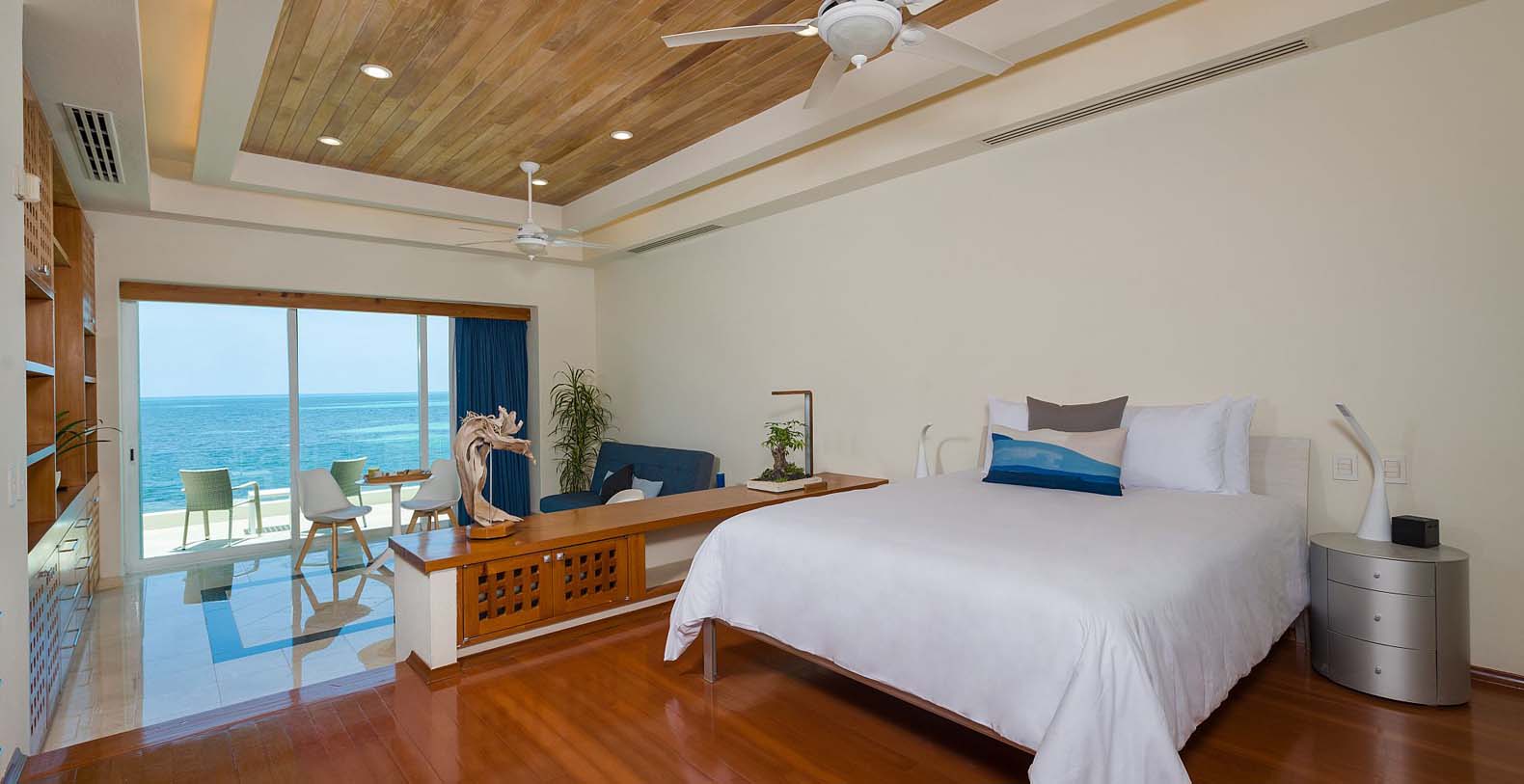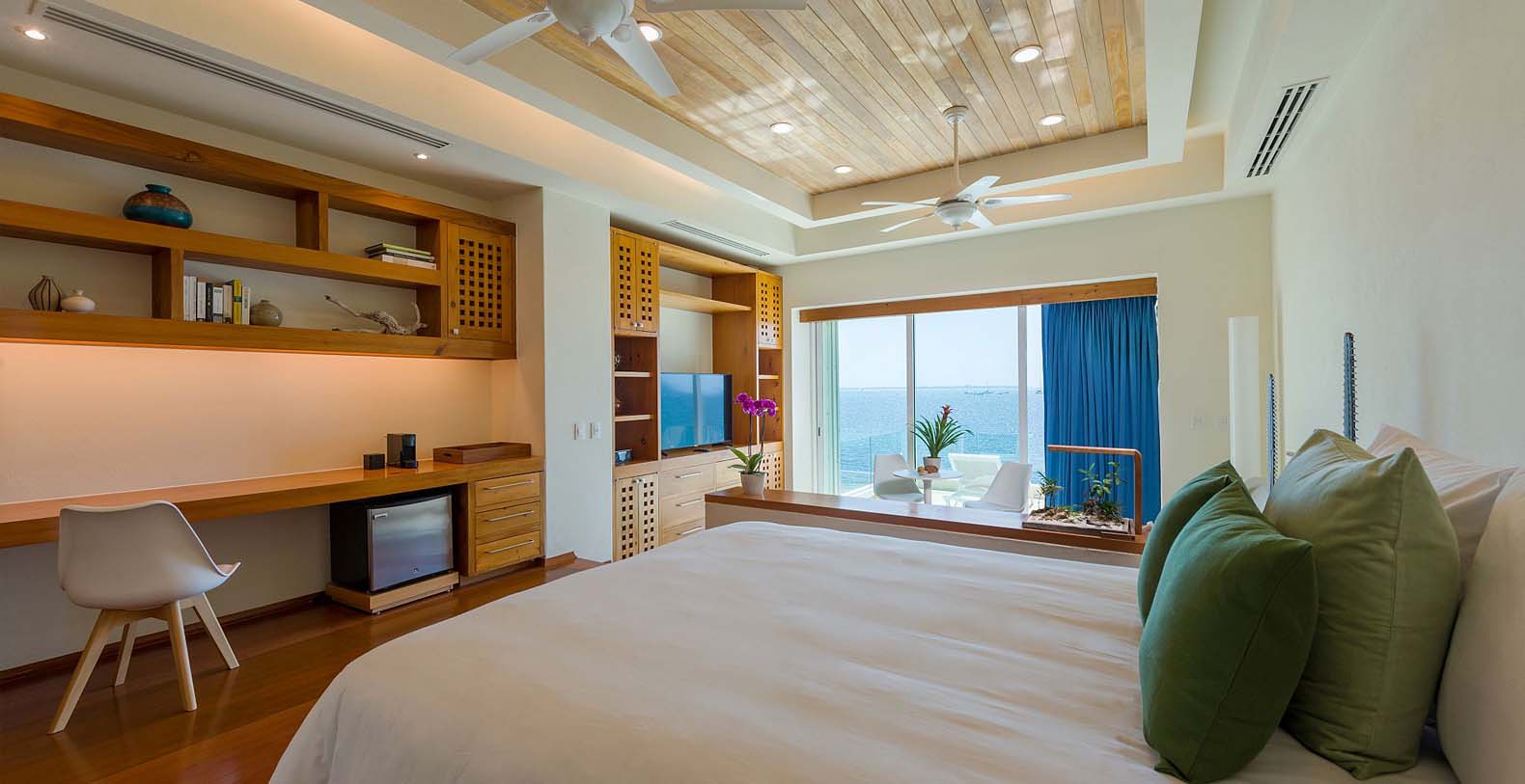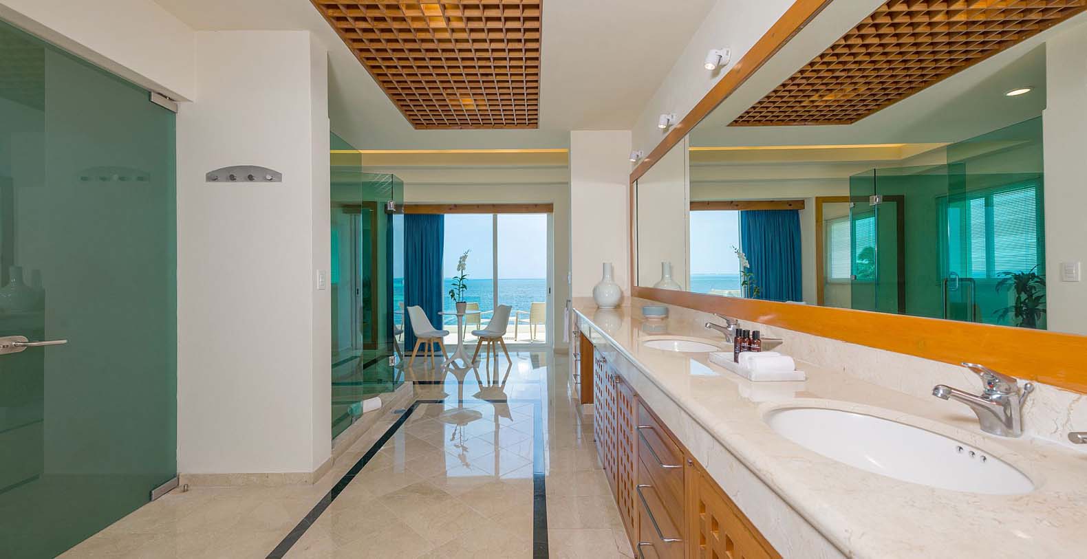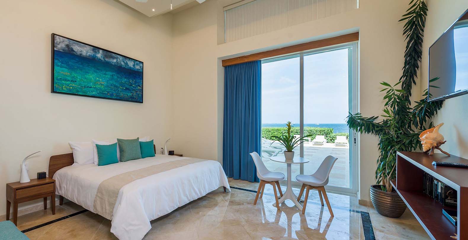 Villa Punta Sam has 5 spacious and comfortable bedrooms with the capacity to host up to 15 guests, 10 adults and 5 minors. On the second floor, the Arrecife Master Suite with a king size bed, a very spacious bathroom, and a private terrace. The two Junior Suites Cielo and Mangle with queen size beds, share a terrace and each give you the opportunity to enjoy a bath in a tub overlooking the ocean. On the first floor, the Master Suite Mar with a king size bed grants you the freedom to take a step towards the garden, the pool and the Caribbean Sea whenever you want. The Arena Double Room with two double beds and a view of the front garden, is ideal for teenagers because it is also designed as the game room, here you will find the Xbox.