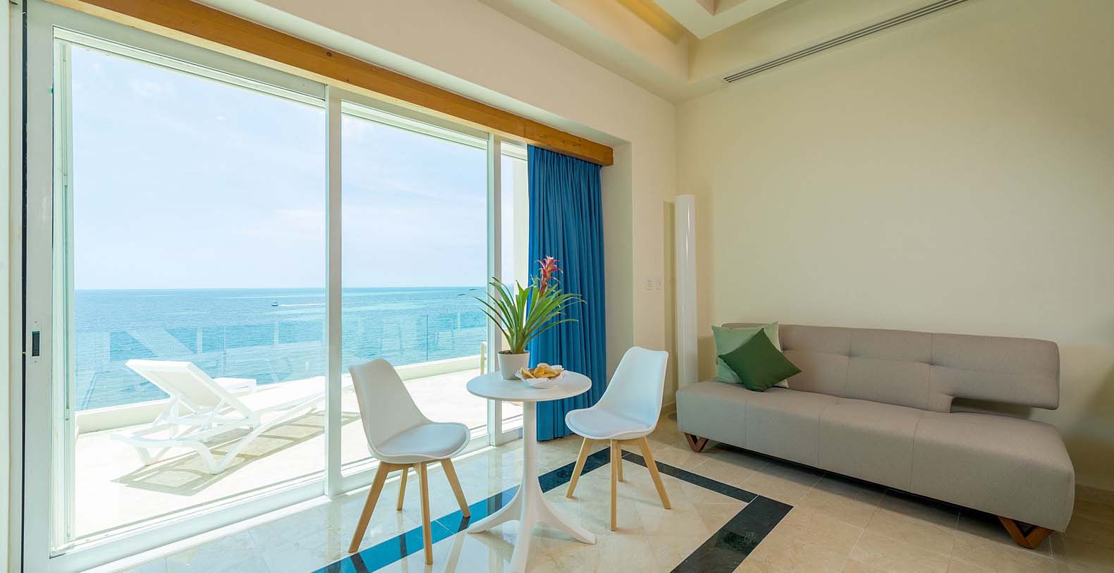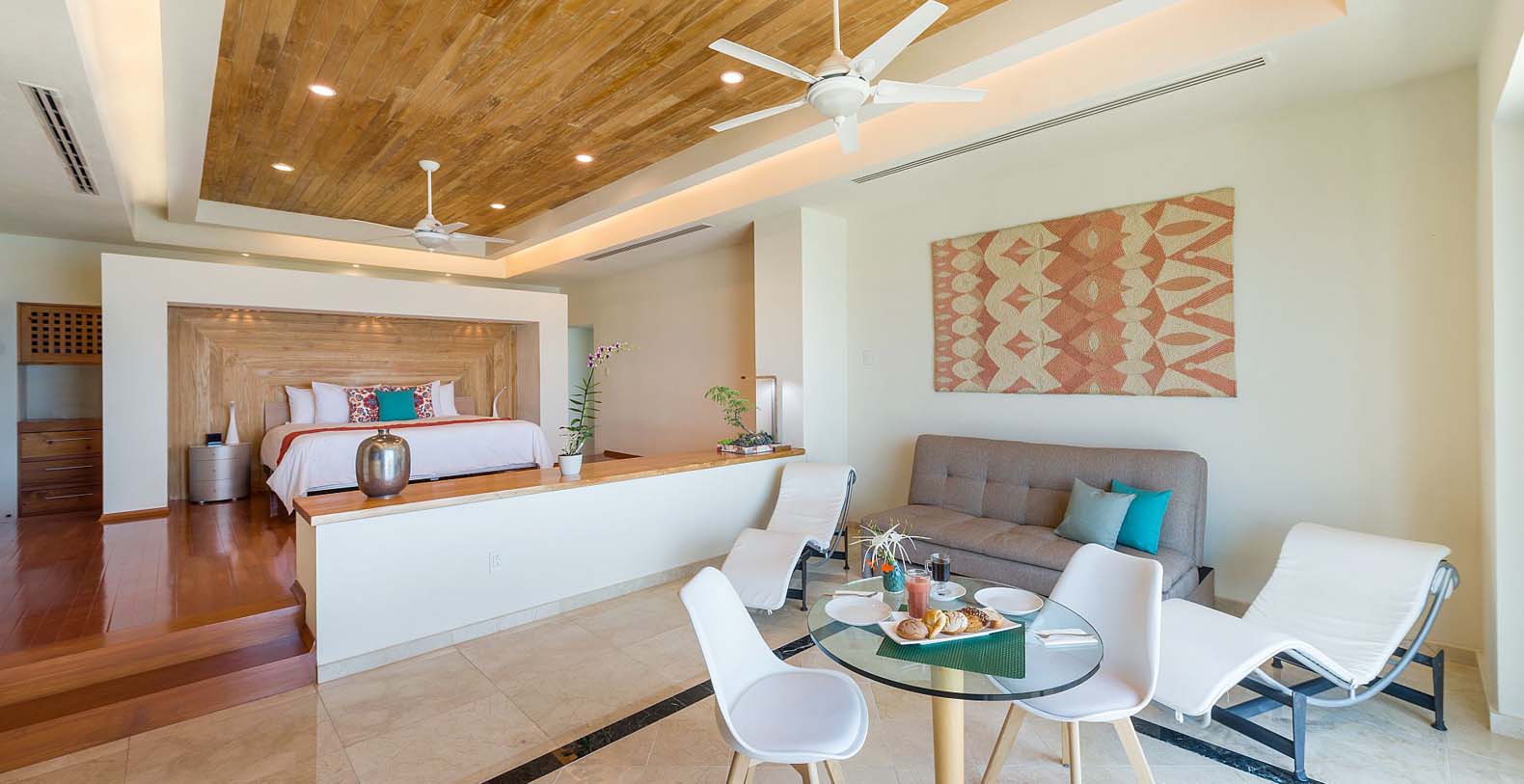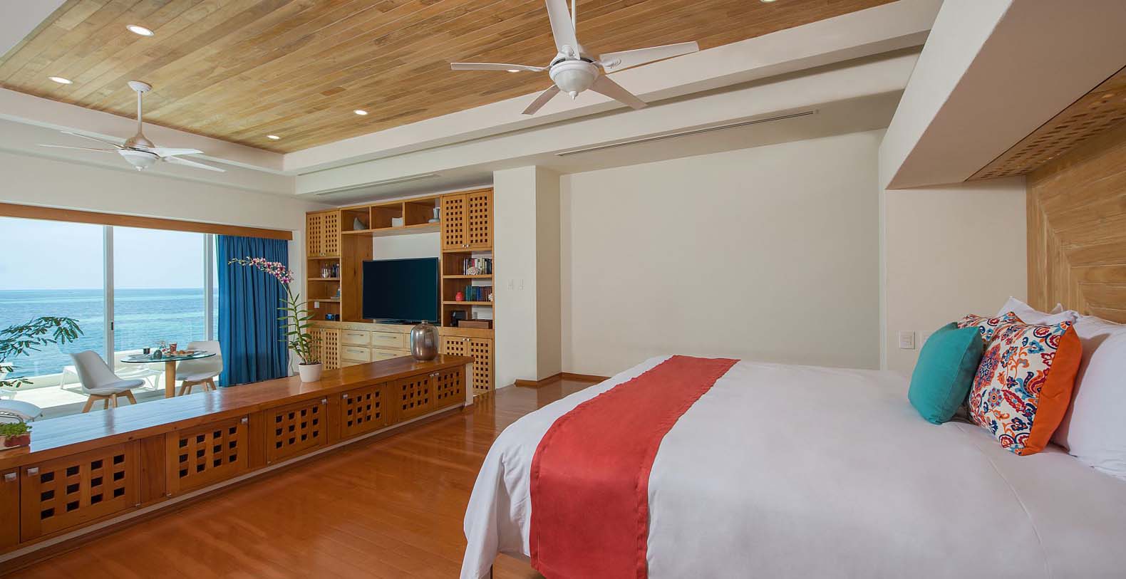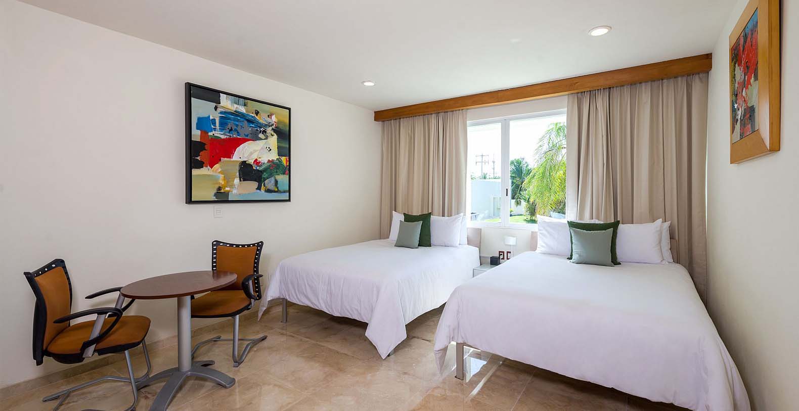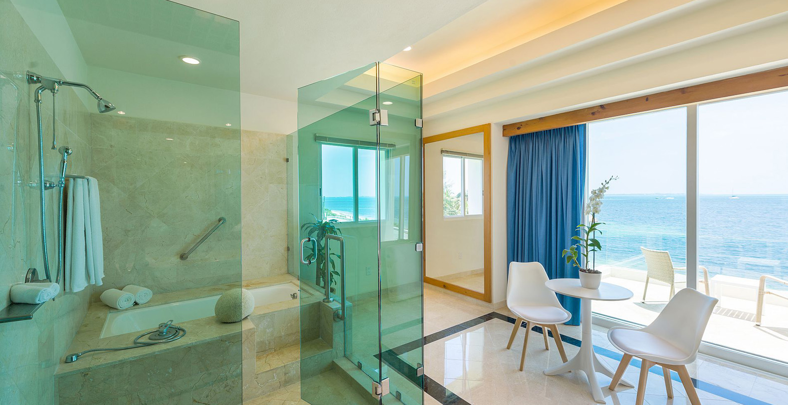 Villa Punta Sam has 5 spacious and comfortable bedrooms with the capacity to host up to 15 guests, 10 adults and 5 minors. On the second floor, the Arrecife Master Suite with a king size bed, a very spacious bathroom, and a private terrace. The two Junior Suites Cielo and Mangle with queen size beds, share a terrace and each give you the opportunity to enjoy a bath in a tub overlooking the ocean. On the first floor, the Master Suite Mar with a king size bed grants you the freedom to take a step towards the garden, the pool and the Caribbean Sea whenever you want. The Arena Double Room with two double beds and a view of the front garden, is ideal for teenagers because it is also designed as the game room, here you will find the Xbox.