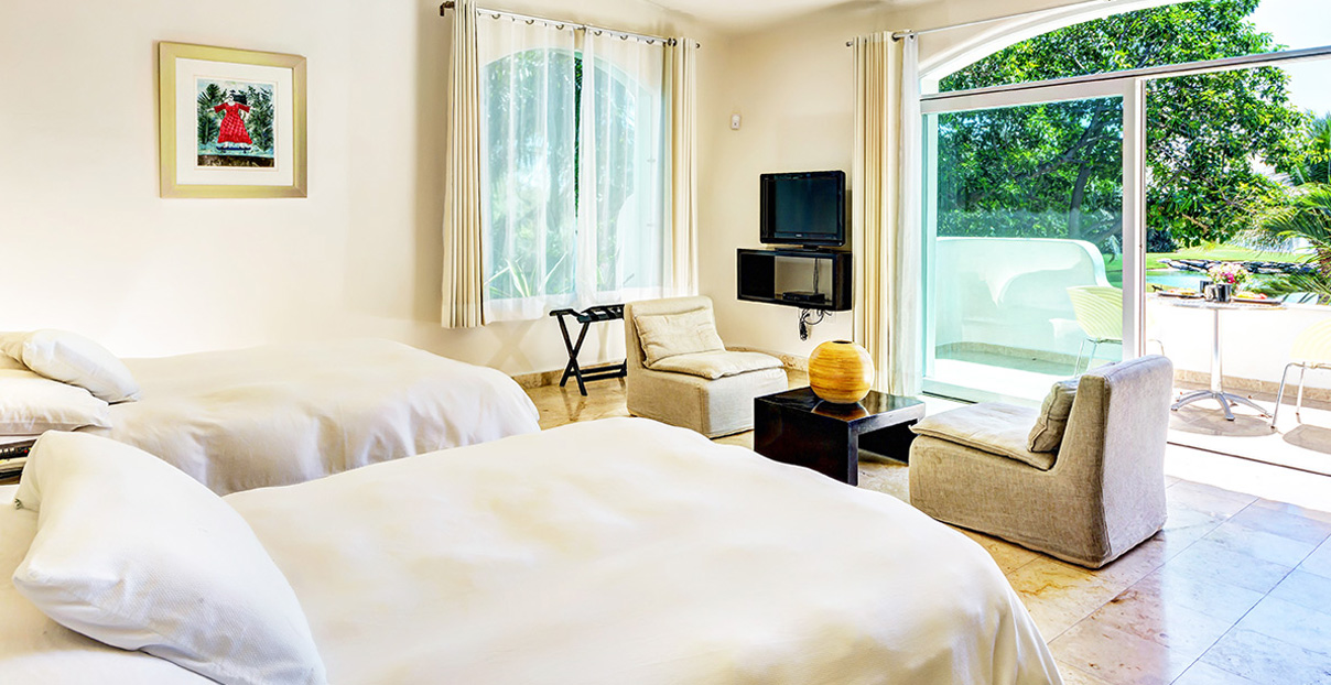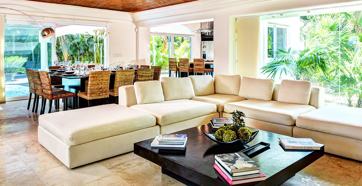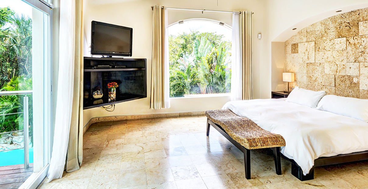 Accommodations include 5 bedrooms, 6 ½ bathrooms, dining room that seats 10, TV room, and al fresco dining right by the pool for up to 10 guests. Villa Saasil boasts 1,900 sq. feet of beautifully-manicured gardens. This full-service accomodation offers guests the feeling of a relaxing spa resort, with a dedicated staff to ensure that your stay at Villa Saasil is a truly unforgettable experience. All your food and exotic drinks will be prepared for you. Our concierge will gladly arrange sightseeing tours, championship golf outings or fishing excursions, as well as music and entertainment, and a range of exquisite gastronomic experiences. Bicycles and sports gear are available for exercise enthusiasts, and massages can be arranged at your convenience. Quinta Avenida, the vibrant shopping street full of restaurants, shops and bars, is within easy reach for your enjoyment.