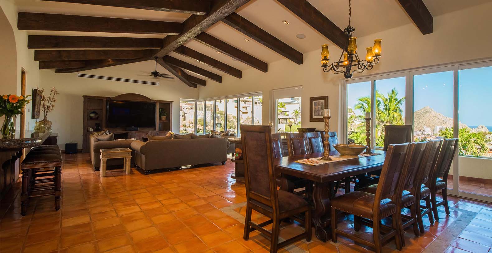 A recently renovated luxury villa located in Cabo’s private gated Pedregal community, this spectacular retreat offers the perfect combination of captivating traditional hacienda style, an excellent location and top-of-the-line modern amenities for a breathtaking vacation getaway. Ocean views, tile floors, wood-beamed ceilings, designer accents and stunning furnishings are just a few of the appealing highlights at this spacious villa.
