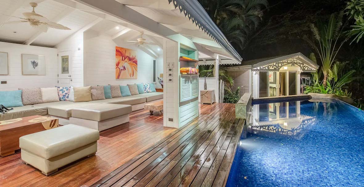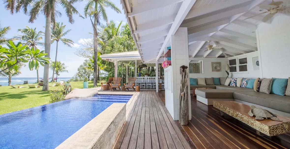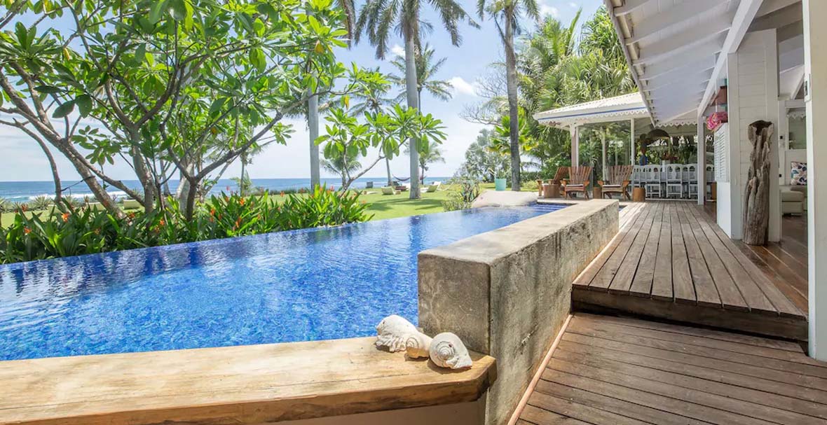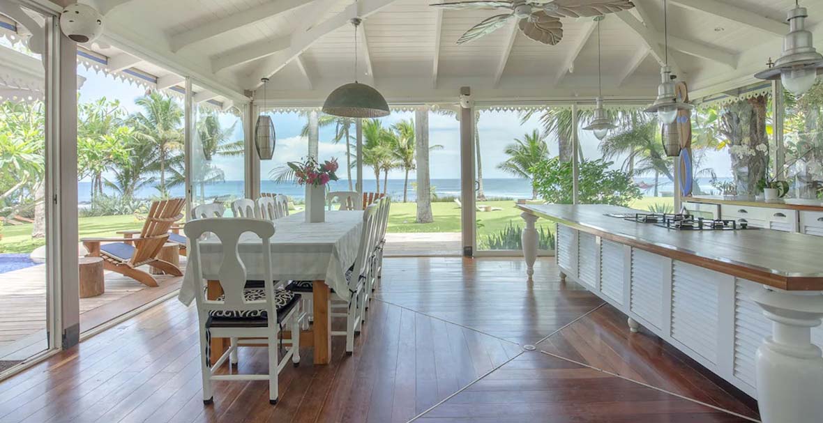 This extraordinary beachfront estate is a rare masterpiece in architecture and interior design, and includes every luxury imaginable. The sumptuous décor has been customized with some finest art, creating a true beachfront palace.