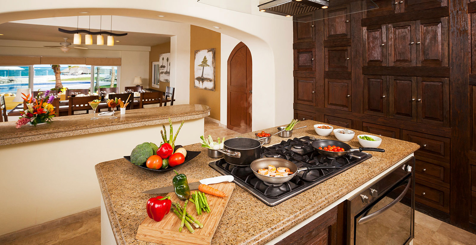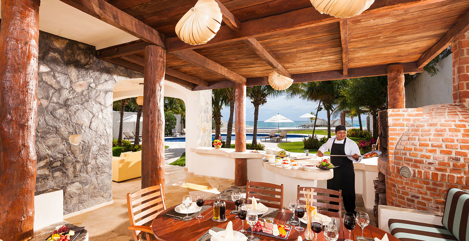 From pre-arrival service to personalized al fresco check-in, you won’t have to lift a finger to settle into paradise. Your stay at Azul Villa Carola grants you the 24-hour service of a Majordomo, otherwise known as a butler. Along with a dedicated staff of eight, your Majordomo will take care of all aspects of your stay. A luxury vacation isn’t complete without tantalizing cuisine. Enjoy the innovative delicacies prepared by our award-winning chefs, using only the freshest ingredients grown in the greenhouse of El Dorado Royale.