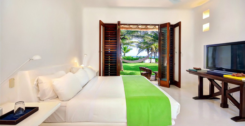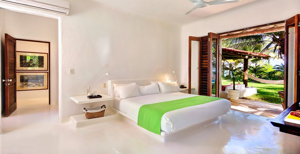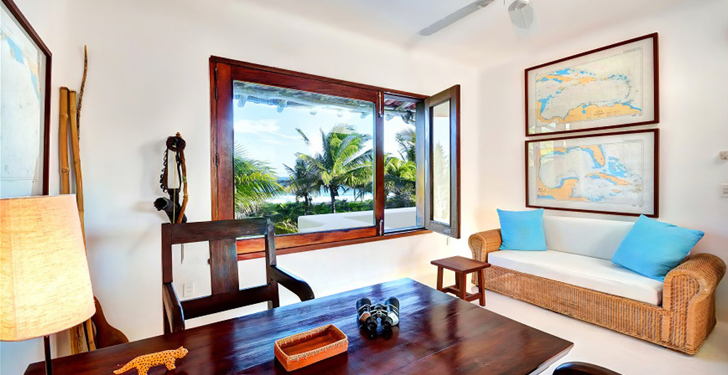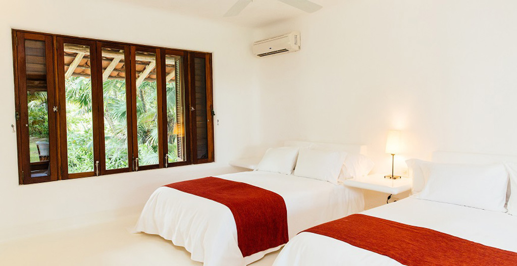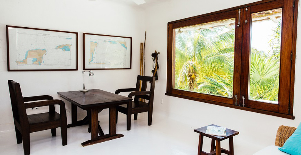 Belha Villa is a beautiful beach house located in a 50 acre family-owned jungle and palm tree estate facing the Caribbean Sea on the Mayan Riviera (Yucatan Peninsula), Mexico. There are only three houses in this unique and very private estate: Belha Villa, is a large house belonging to a family member with a guest pavilion. Belha Villa was commissioned to one of Mexico's top beach architects (whose work includes the famous Las Alamandas Hotel) and was decorated in a minimalist style by it's owner using local and Mexican things. All wood work is made from mahogany and other tropical woods from the Yucatan and Chiapas jungles.