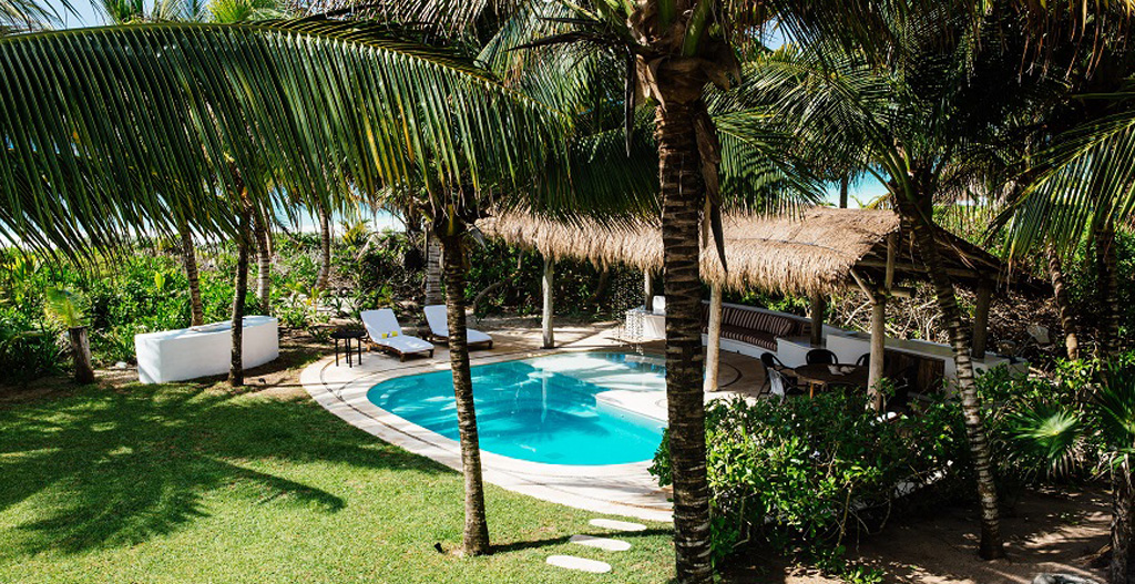 The house's pool area leads the way to the white sandy beach where the private Palapa, surrounded by palm trees and sea grapes, is located. During June and July, the Caguama giant sea turtles protected specie come to lay their eggs on the beach.