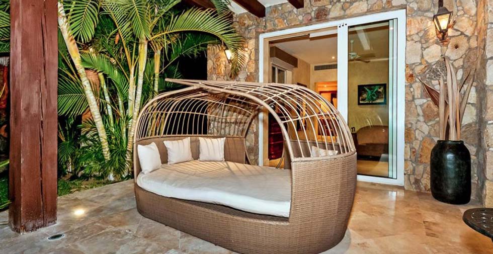 This luxury property has two bedrooms with king beds, including one with a jetted tub, and one bedroom with two queen beds. All three bedrooms have en-suite bathrooms featuring Teva Naturalis toiletries, and, for your comfort, air conditioning and ceiling fans.