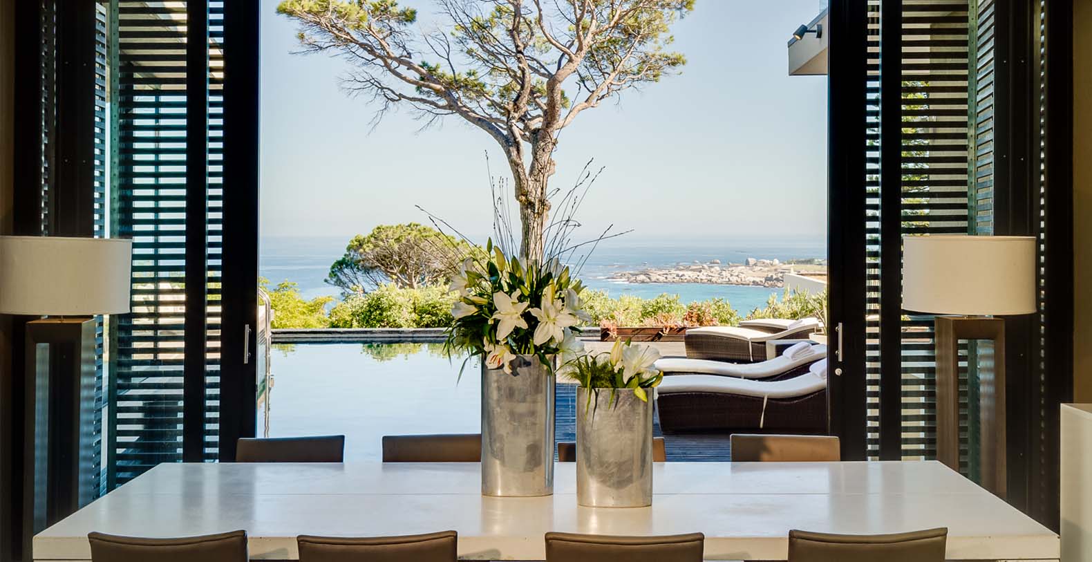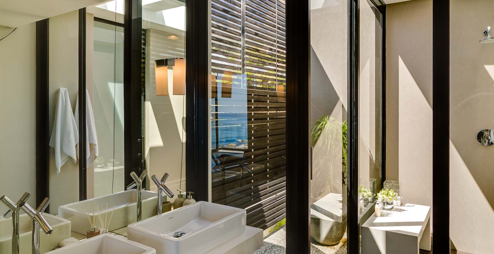 Being in the Cape, one of the world’s richest floral kingdoms, Serenity is grounded in its own little piece of virgin fynbos heaven. Untouched and unspoilt. Naturally beautiful in every way. A sun deck wraps around the perimeter of the villa, maximising views of the Twelve Apostles peaks, Table Mountain, Camps Bay beach and the painterly sunsets that the Cape’s Atlantic horizon is famous for.