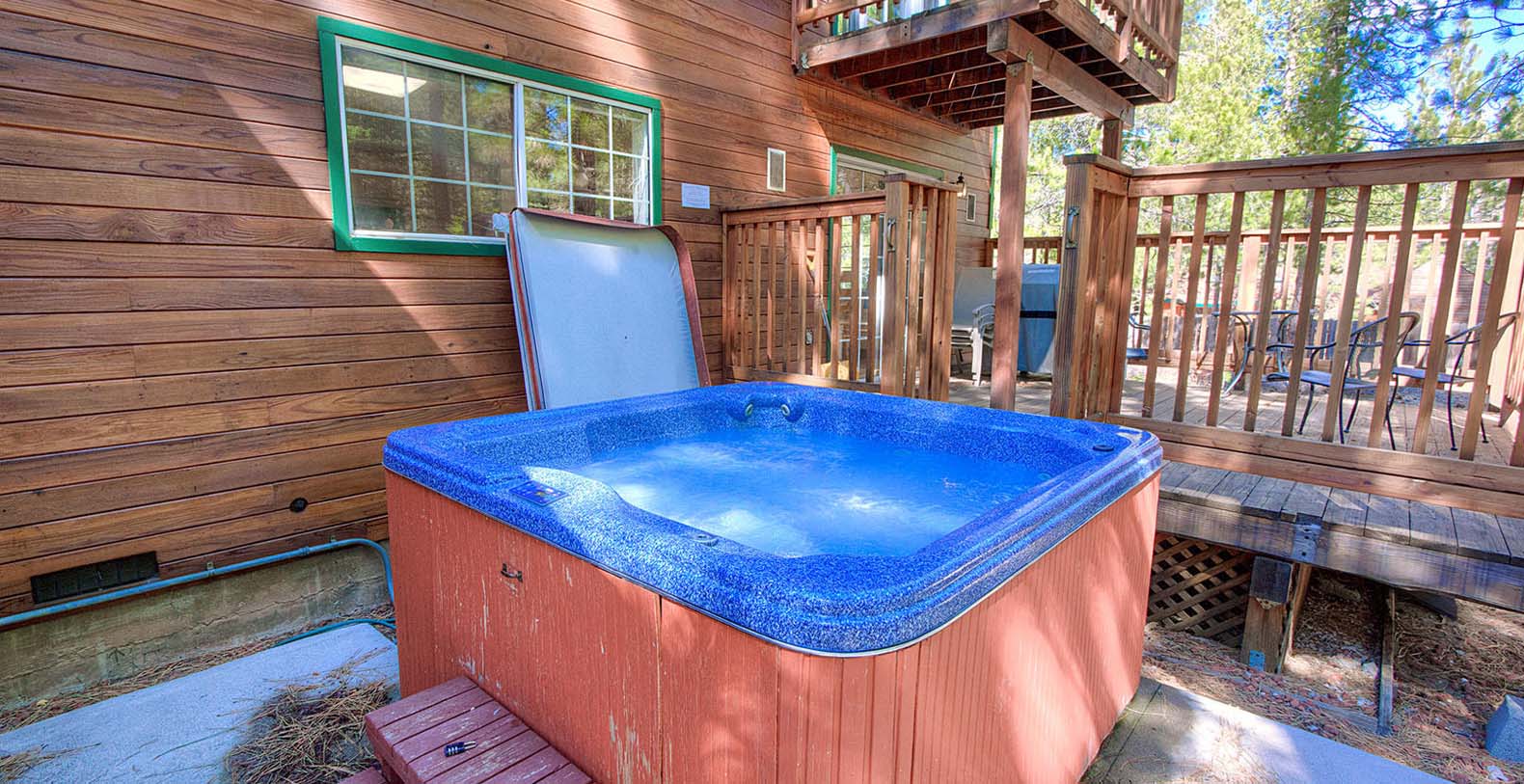 This is one great vacation rental with sleeping for 8 people, 4 bedrooms and 2 1/2 bathrooms, and a private hot tub! Located just outside the City limits the home is only 10 minutes from Tahoe activities including beaches and shopping! Skiing is only 15 minutes away at either Heavenly Ski Resort or Sierra-at-Tahoe! The home is wonderful with a downstairs living plan with one king bedroom downstairs and 3 up. The master suite has a king size bed and private bathroom with a steam shower, the hot tub is located in the fenced-in backyard on the side of the house, and you will have high speed internet. Perfect! Great home in a great place!
