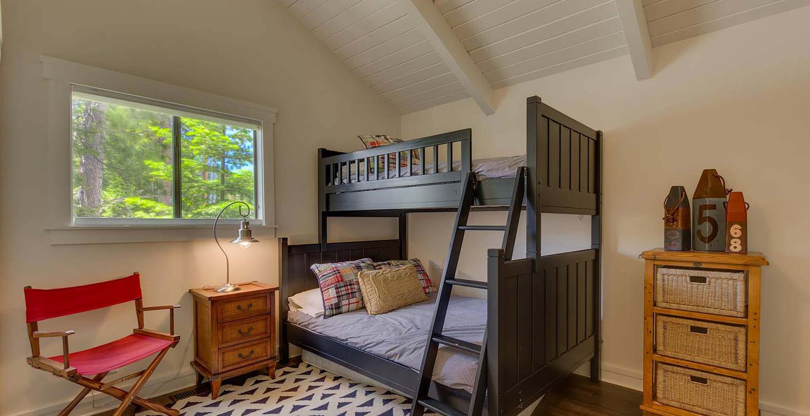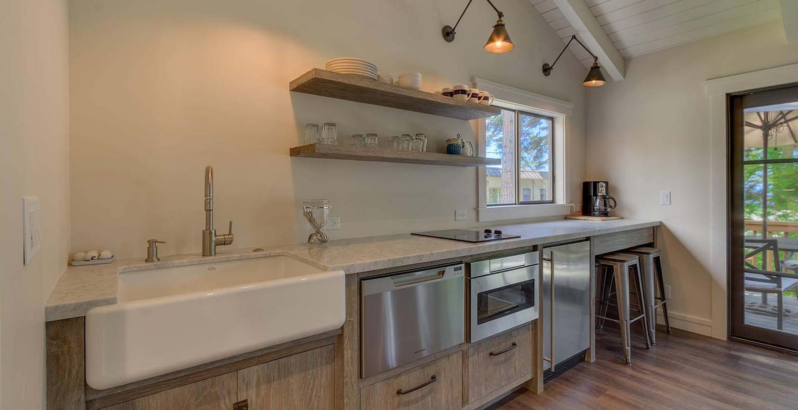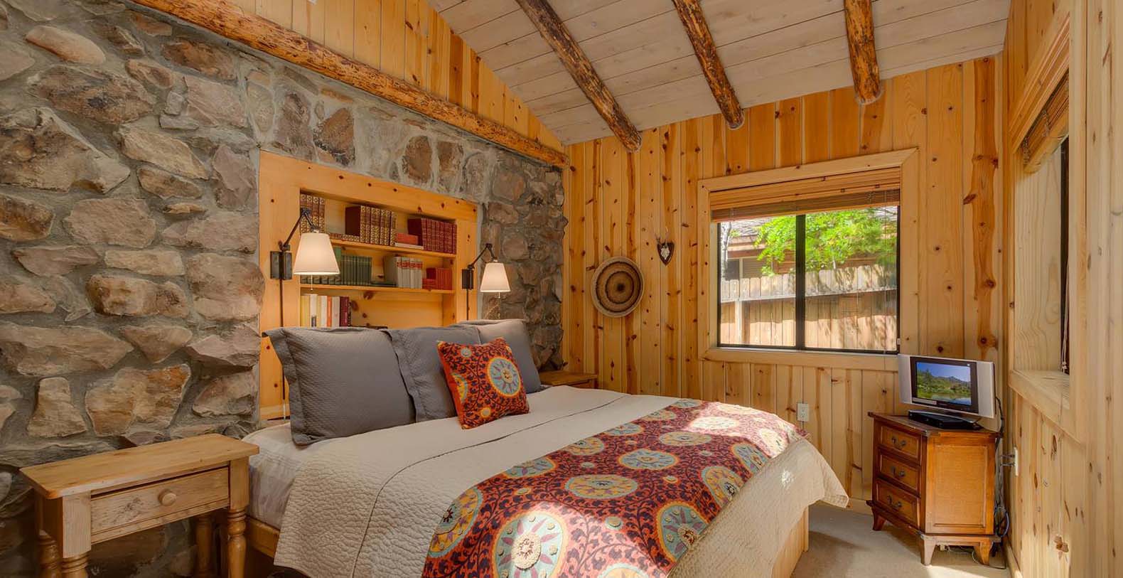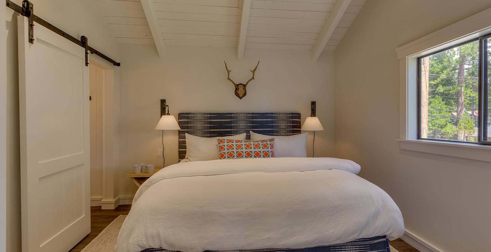 This historic 1919 stone house vacation rental is beautifully remodeled capturing Old Tahoe charm amidst contemporary upgrades throughout. The main house boasts rare, south-facing panoramic views, enjoyed from the dining room, stone patio, great room, and master bedroom. The great room is inviting and cozy with several seating areas to accommodate family get-togethers and a large wood burning fireplace to gather around.