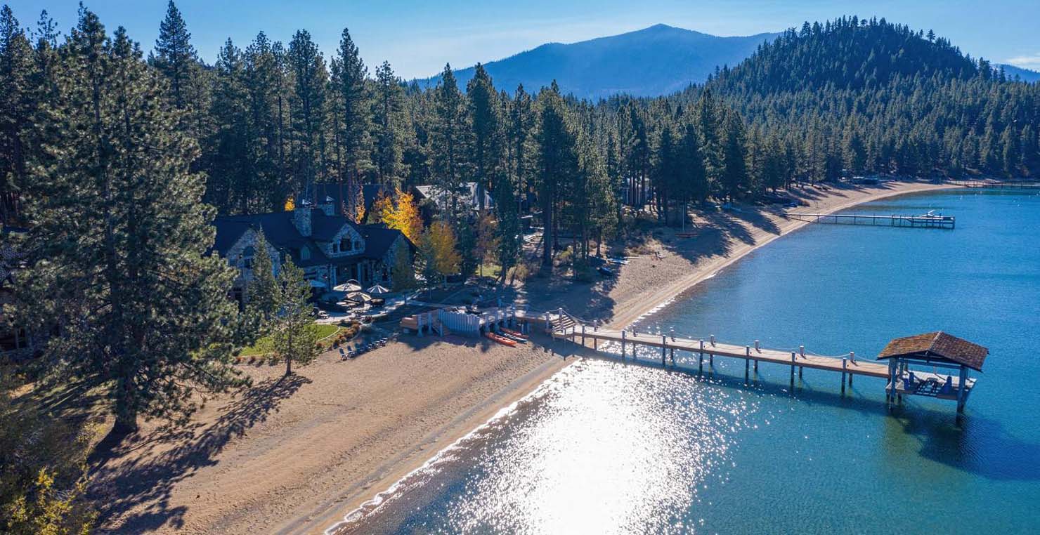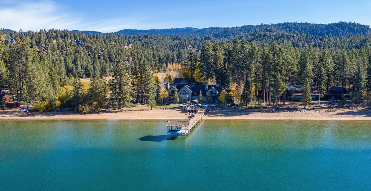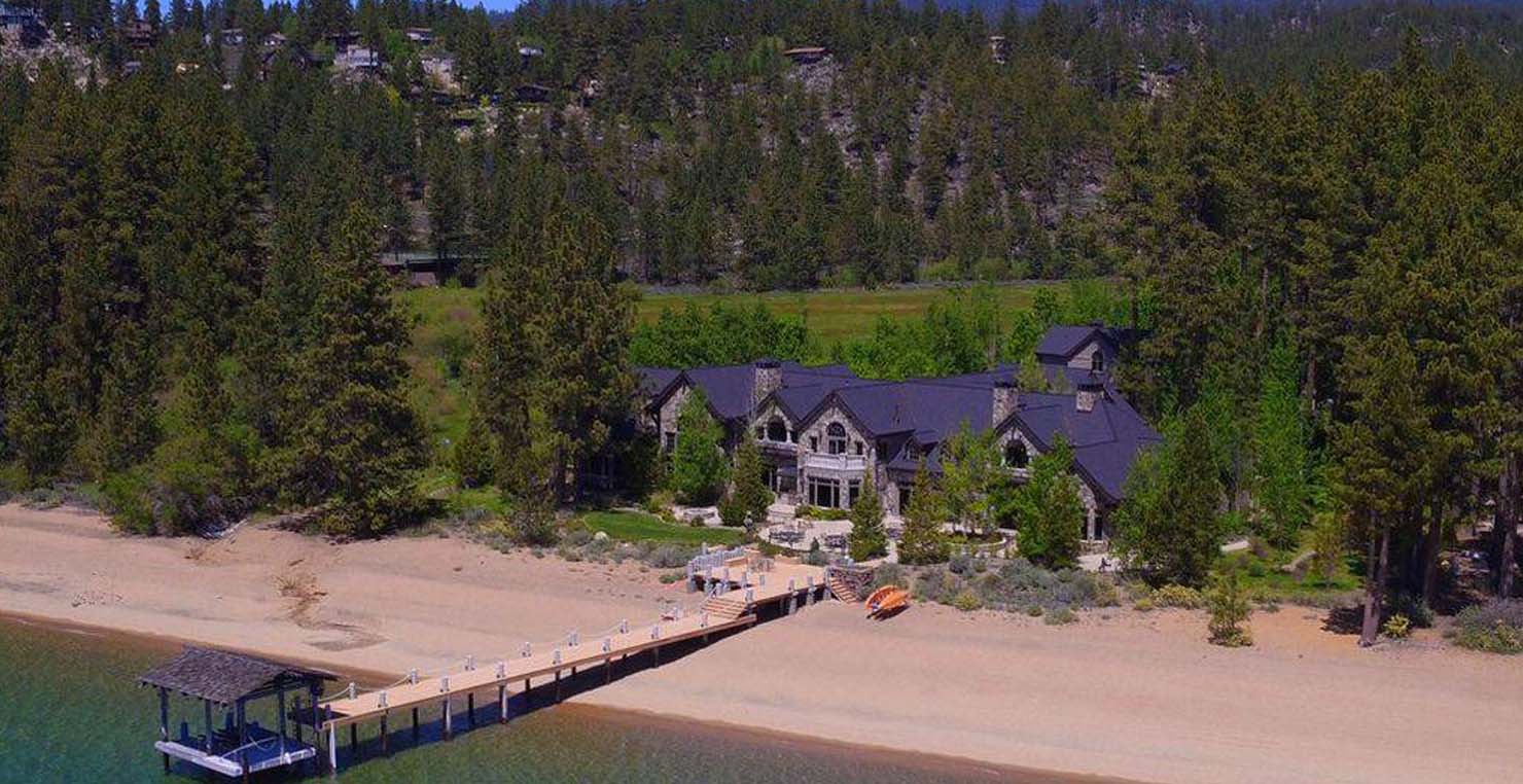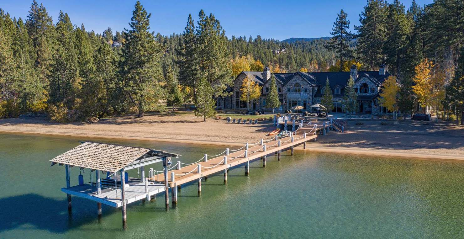 The grandest view this world affords can be found along the southeast shore at Sierra Sunset. This is where luxury is defined and your search for a slice of heaven need not continue. With a 16,703 sq. foot main house, a complete guest house, a private dock, and over 50 yards of shoreline, this 24-acre estate isn’t just another vacation destination, it is your personal glimpse into one-of-a-kind, mountain living. Tucked behind gated access, only 10 minutes away from South Lake Tahoe, this spectacular home boasts nine bedrooms, a theater room, a wine room, a gourmet kitchen with full butler’s pantry, a game room with a fully equipped bar, and enough backyard patio space to host friends and family year round. For those flying in, Minden and South Lake Tahoe Airports are both easily accessible. This estate is expansive, yet comfortably serene, You are guaranteed to enjoy the lapping waves of Lake Tahoe, the rustling Aspen trees, and the wildlife that can be spotted throughout the year.