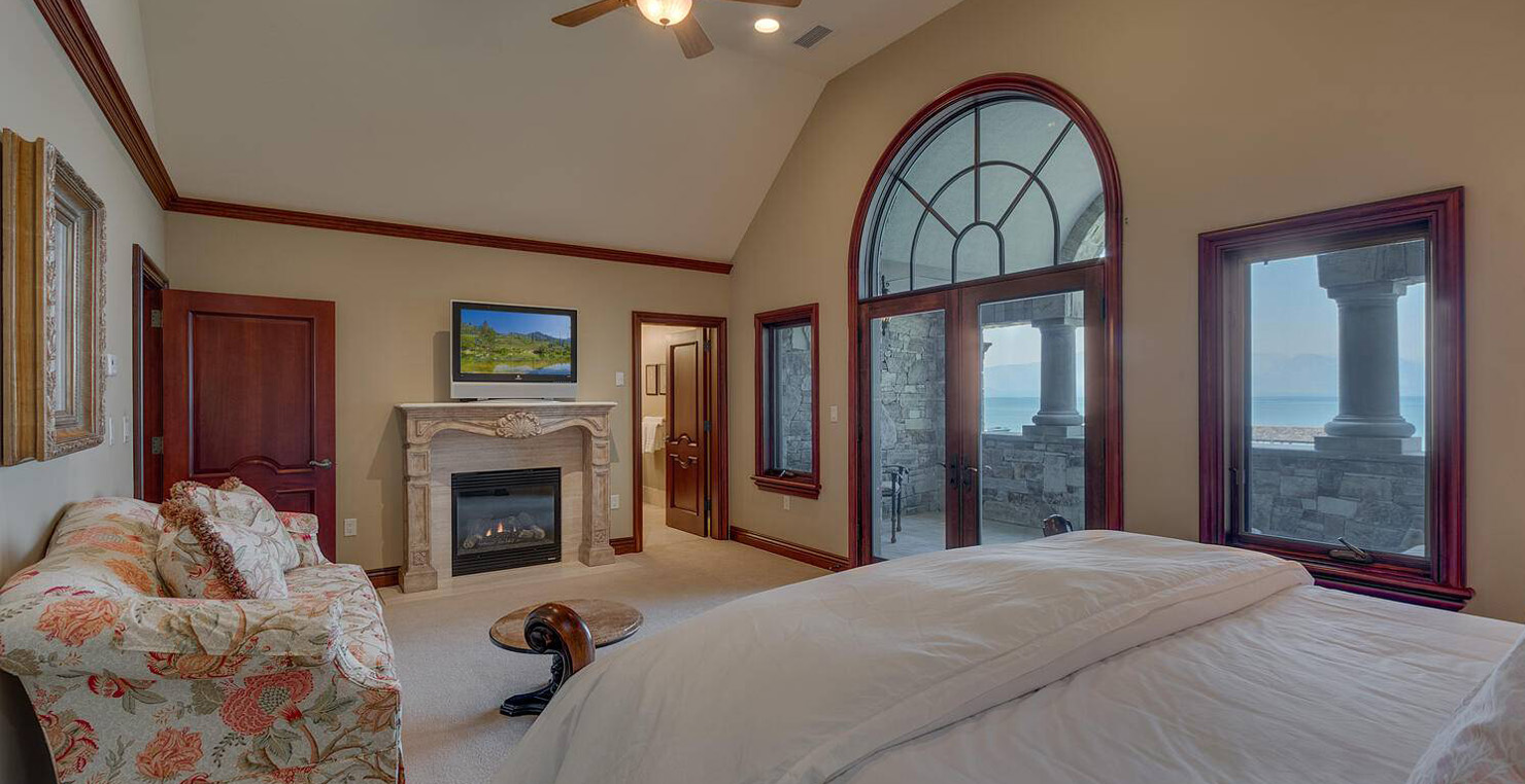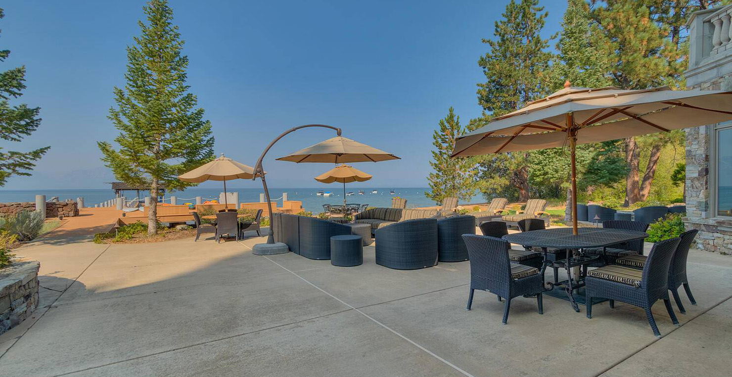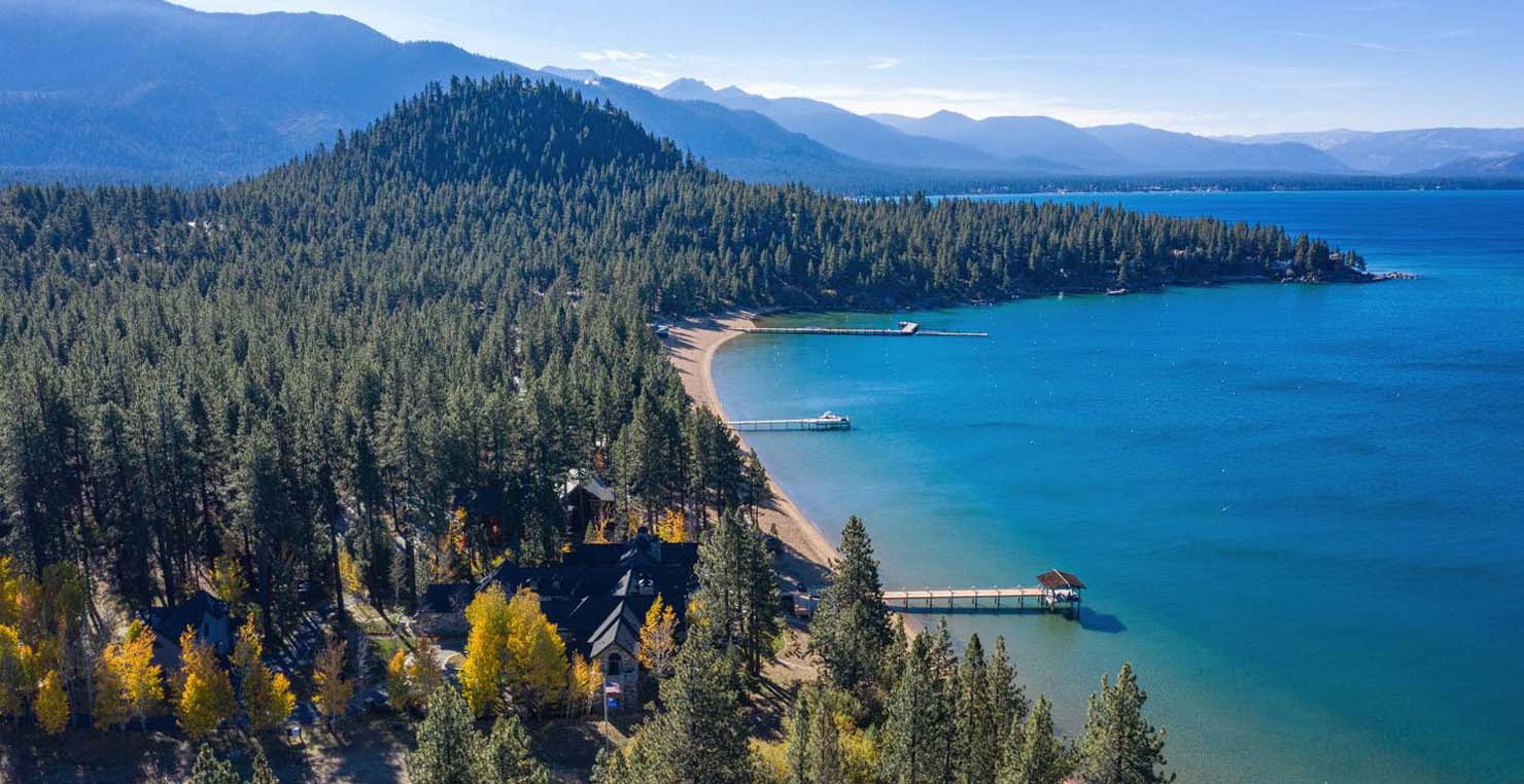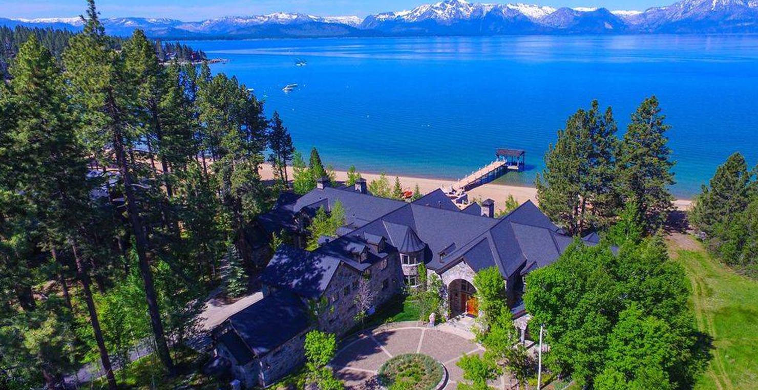 The grandest view this world affords can be found along the southeast shore at Sierra Sunset. This is where luxury is defined and your search for a slice of heaven need not continue. With a 16,703 sq. foot main house, a complete guest house, a private dock, and over 50 yards of shoreline, this 24-acre estate isn’t just another vacation destination, it is your personal glimpse into one-of-a-kind, mountain living. Tucked behind gated access, only 10 minutes away from South Lake Tahoe, this spectacular home boasts nine bedrooms, a theater room, a wine room, a gourmet kitchen with full butler’s pantry, a game room with a fully equipped bar, and enough backyard patio space to host friends and family year round. For those flying in, Minden and South Lake Tahoe Airports are both easily accessible. This estate is expansive, yet comfortably serene, You are guaranteed to enjoy the lapping waves of Lake Tahoe, the rustling Aspen trees, and the wildlife that can be spotted throughout the year.