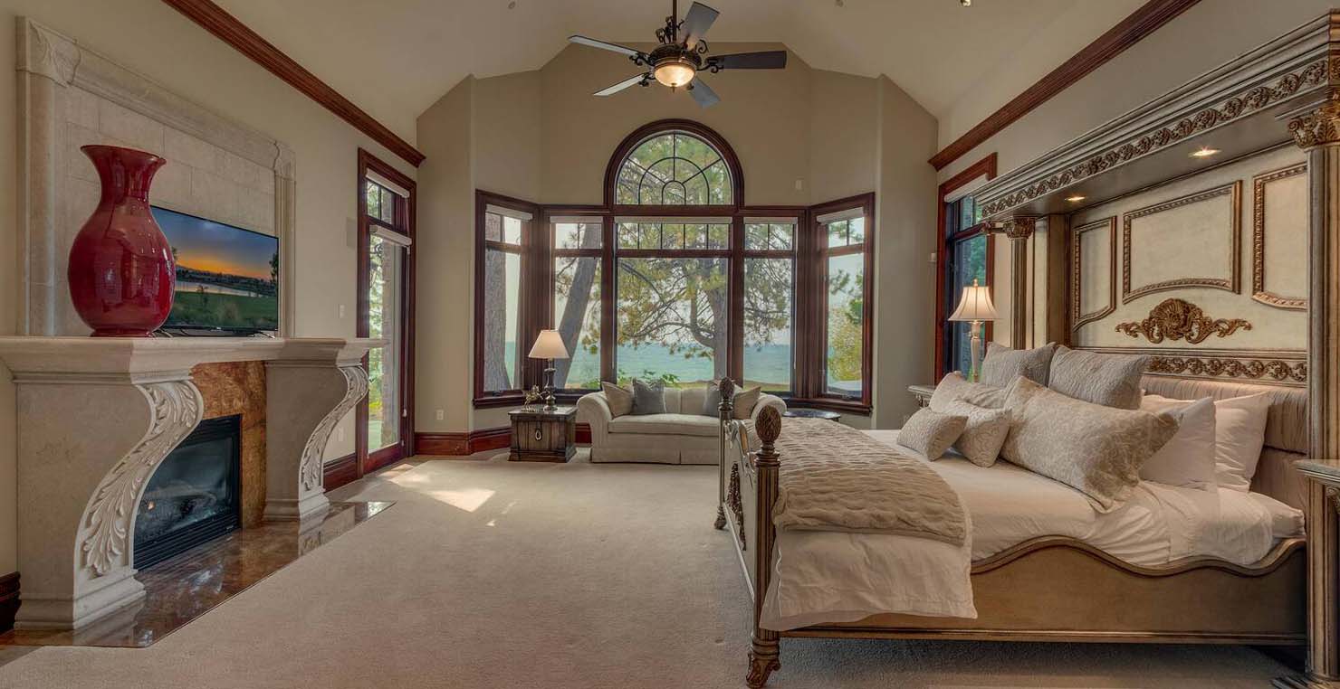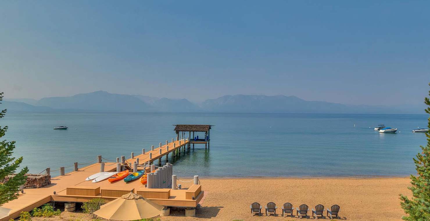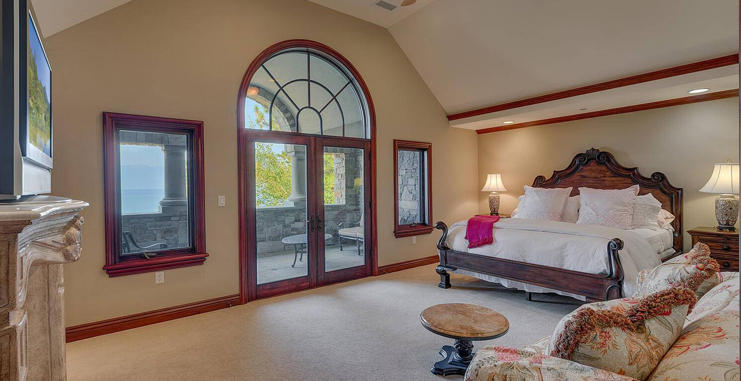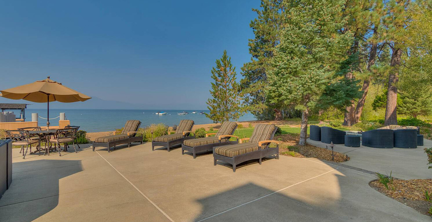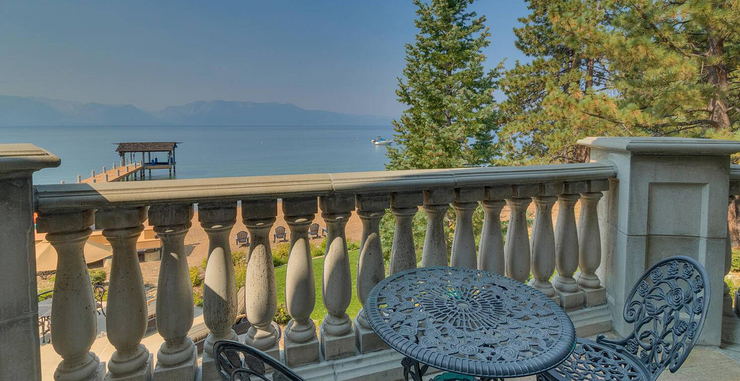 The grandest view this world affords can be found along the southeast shore at Sierra Sunset. This is where luxury is defined and your search for a slice of heaven need not continue. With a 16,703 sq. foot main house, a complete guest house, a private dock, and over 50 yards of shoreline, this 24-acre estate isn’t just another vacation destination, it is your personal glimpse into one-of-a-kind, mountain living. Tucked behind gated access, only 10 minutes away from South Lake Tahoe, this spectacular home boasts nine bedrooms, a theater room, a wine room, a gourmet kitchen with full butler’s pantry, a game room with a fully equipped bar, and enough backyard patio space to host friends and family year round. For those flying in, Minden and South Lake Tahoe Airports are both easily accessible. This estate is expansive, yet comfortably serene, You are guaranteed to enjoy the lapping waves of Lake Tahoe, the rustling Aspen trees, and the wildlife that can be spotted throughout the year.