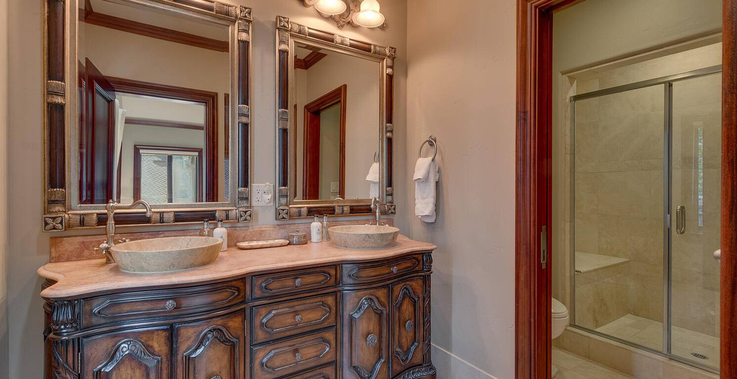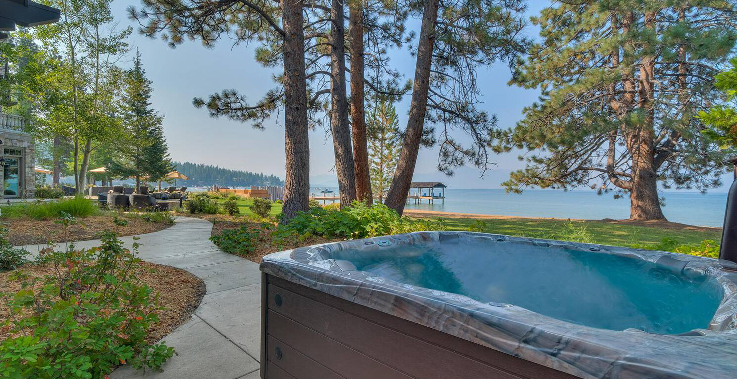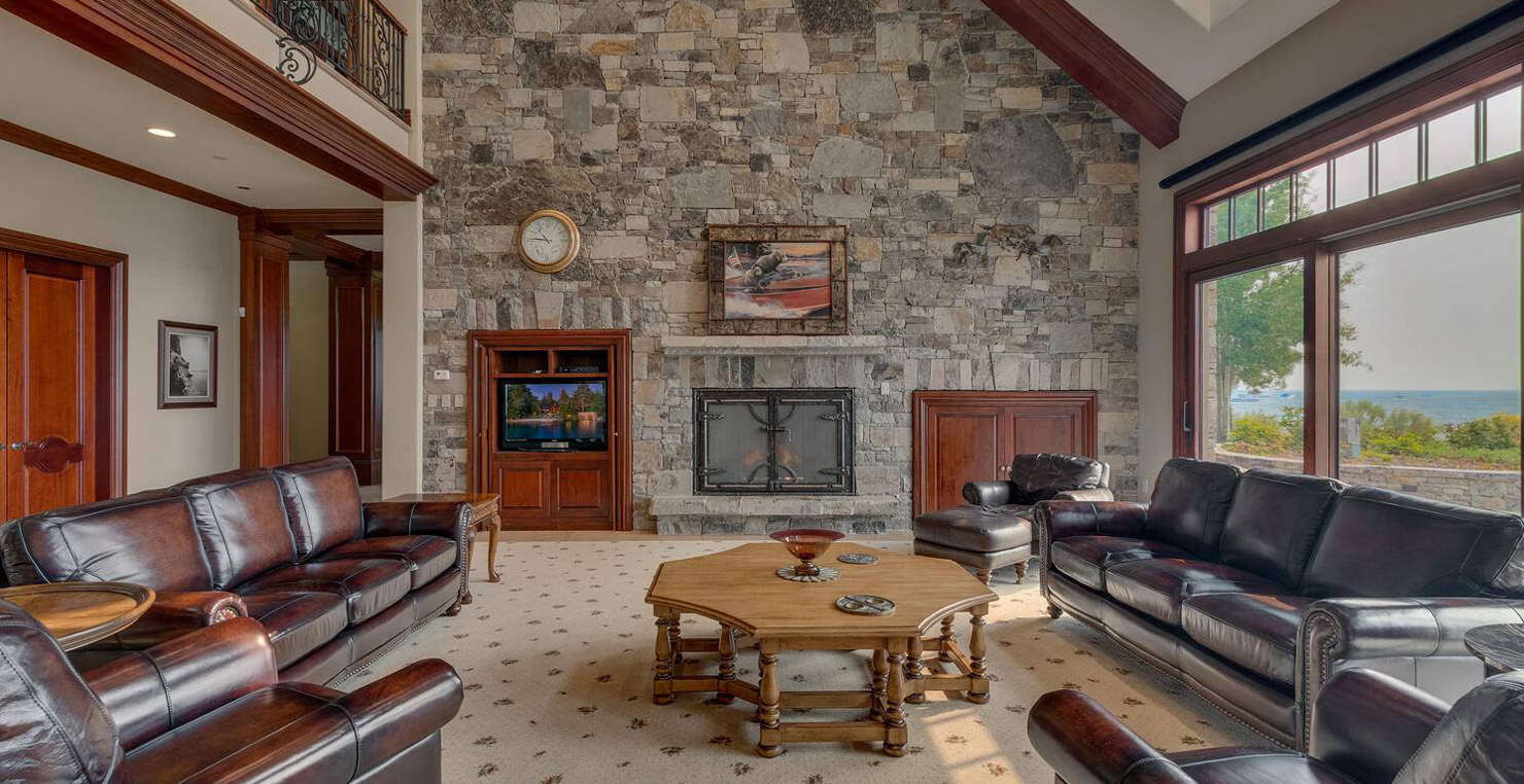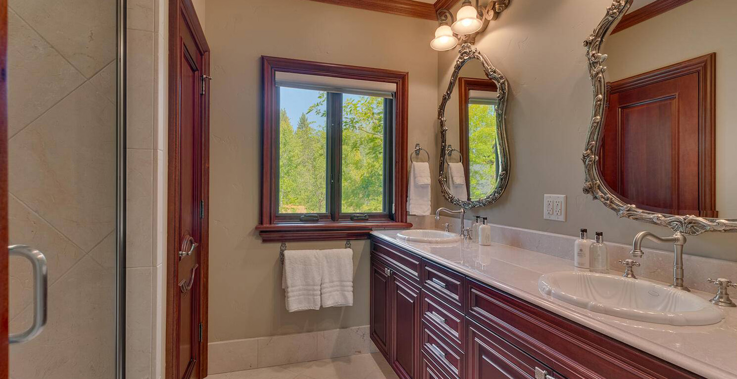 The grandest view this world affords can be found along the southeast shore at Sierra Sunset. This is where luxury is defined and your search for a slice of heaven need not continue. With a 16,703 sq. foot main house, a complete guest house, a private dock, and over 50 yards of shoreline, this 24-acre estate isn’t just another vacation destination, it is your personal glimpse into one-of-a-kind, mountain living. Tucked behind gated access, only 10 minutes away from South Lake Tahoe, this spectacular home boasts nine bedrooms, a theater room, a wine room, a gourmet kitchen with full butler’s pantry, a game room with a fully equipped bar, and enough backyard patio space to host friends and family year round. For those flying in, Minden and South Lake Tahoe Airports are both easily accessible. This estate is expansive, yet comfortably serene, You are guaranteed to enjoy the lapping waves of Lake Tahoe, the rustling Aspen trees, and the wildlife that can be spotted throughout the year.