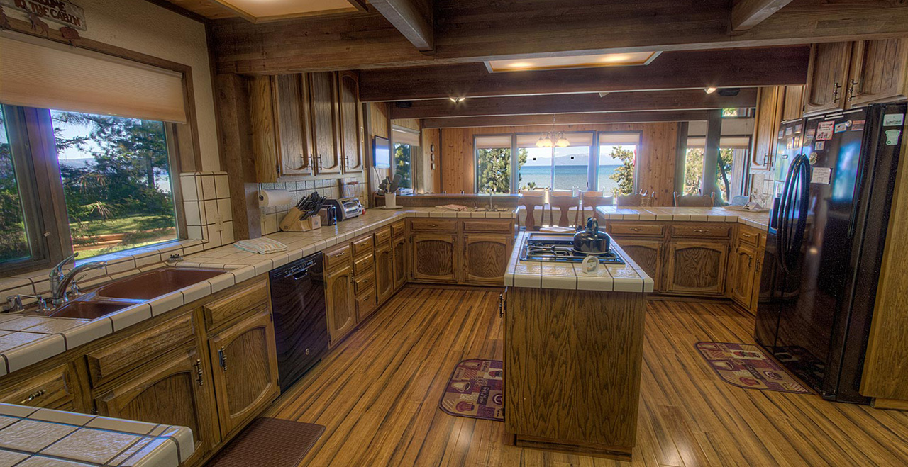 The large open kitchen with center island grill, ideal for family cooking and entertaining, opens to the dining area that seats eight comfortably with four more at the tile kitchen bar. Five bedrooms make it perfect for families. Bedroom 4 has an extra firm mattress for your sleeping comfort. The living room, dining room, kitchen, three bedrooms and two baths are all ground level. Two bedrooms and bath are upstairs. This home comes complete with wireless DSL Internet for those who need to check back on the office.