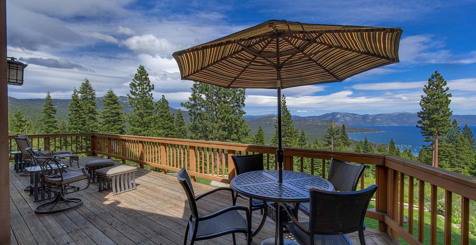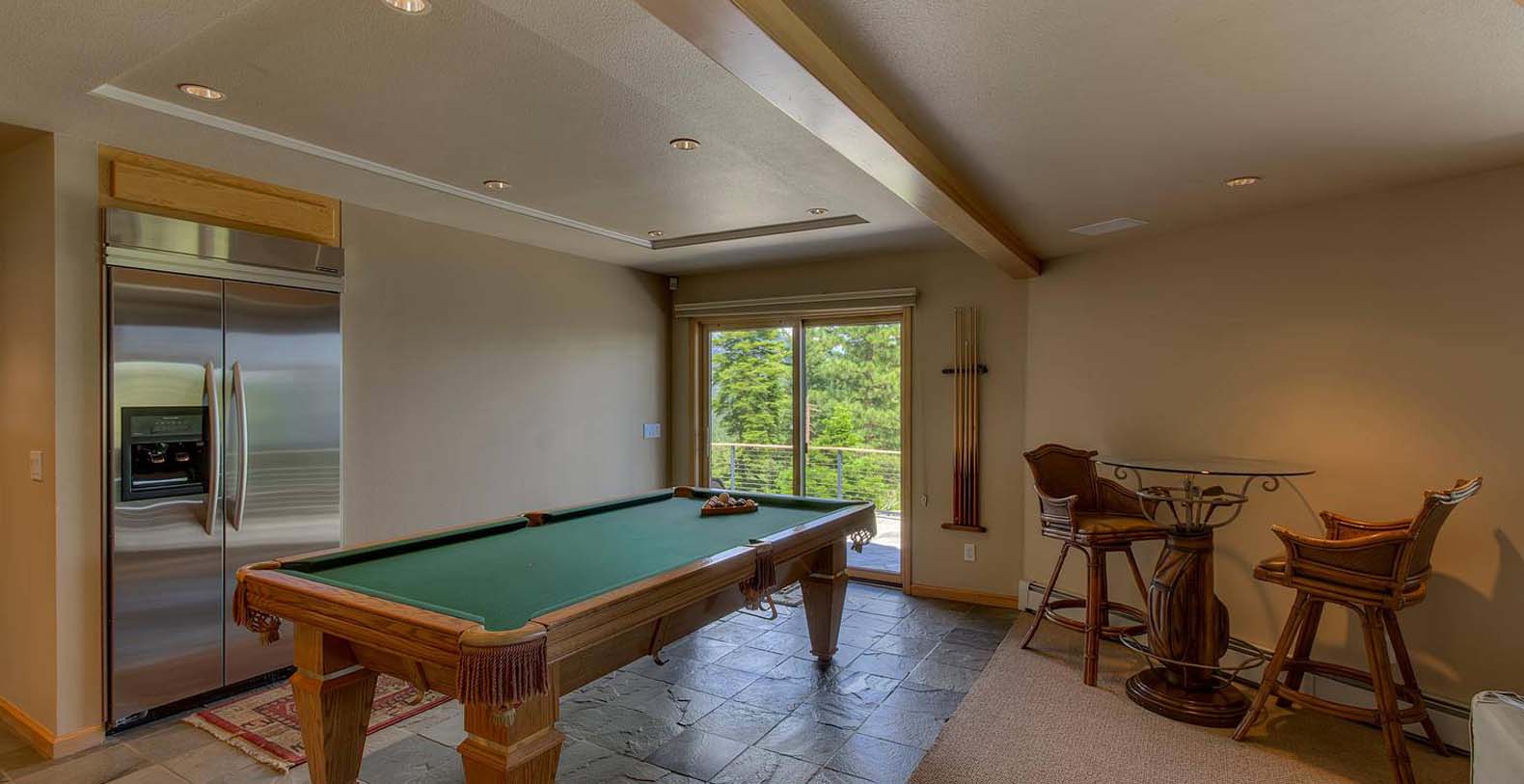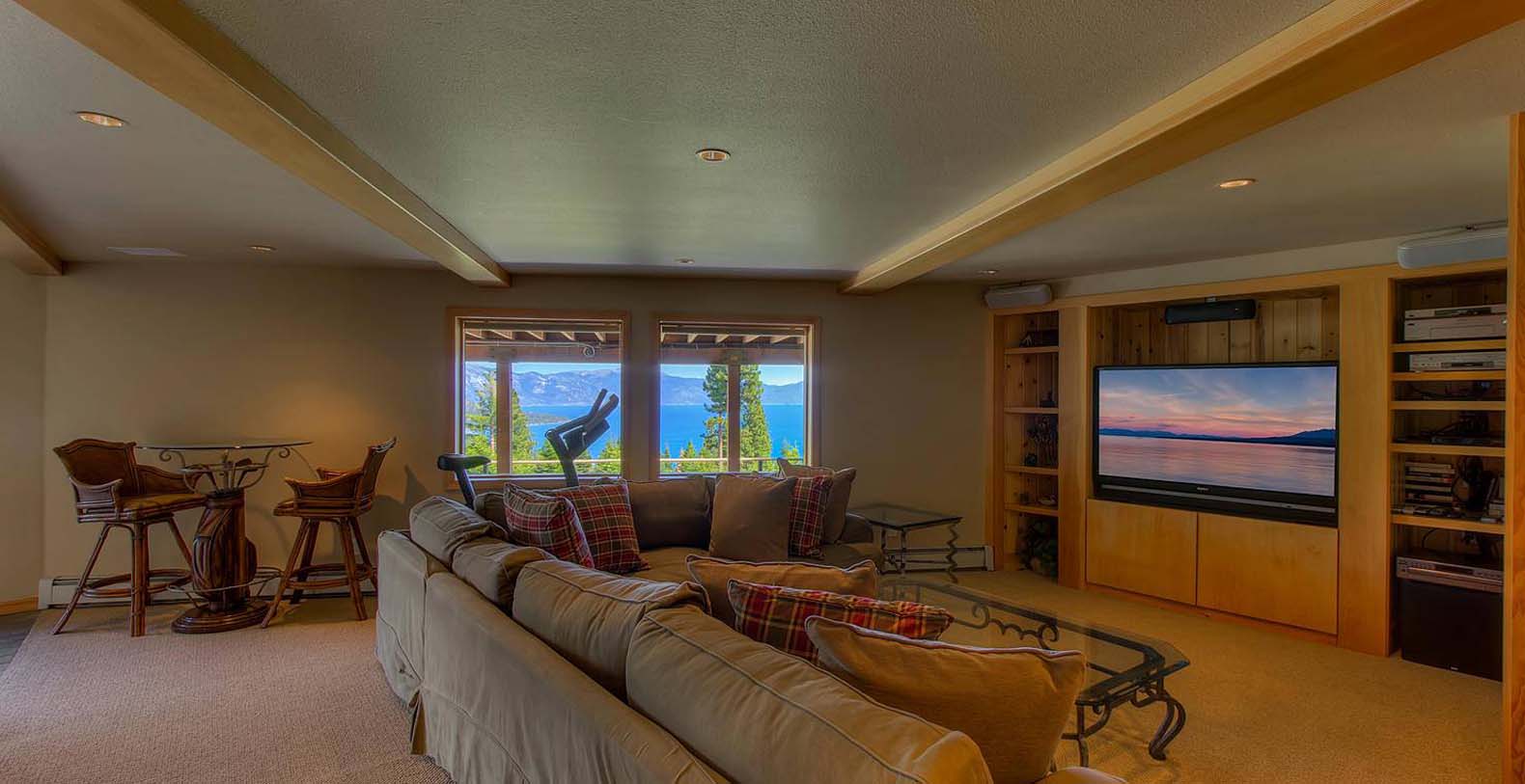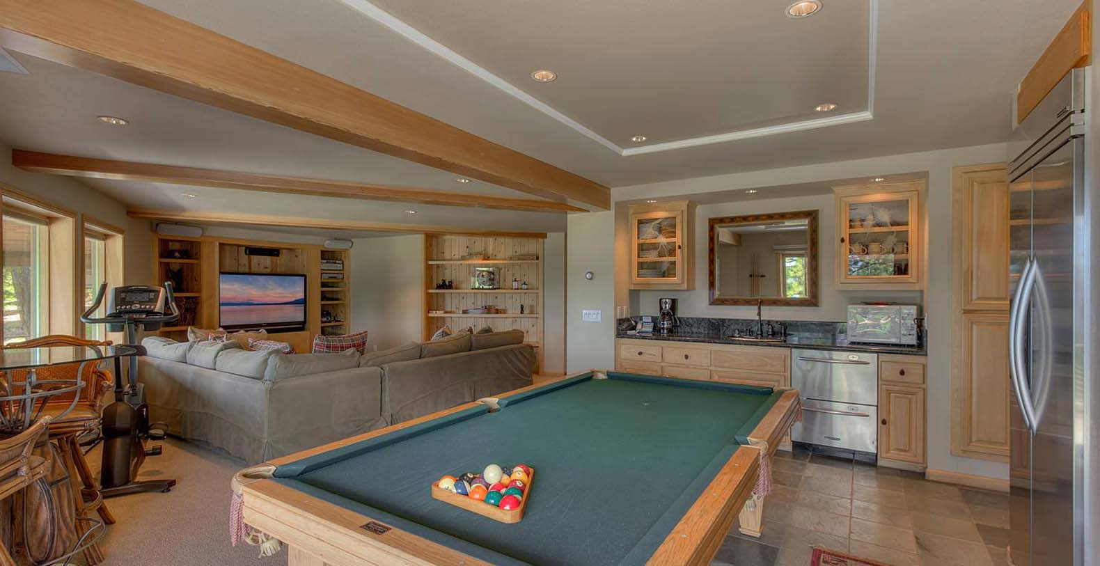 The home is spacious enough for the whole family. The family room has a pool table and sectional sofa with large screen television. Walk out from the family room to the 1,400 square foot Quartzite patio and hot tub looking over the lake and open to gaze at the stars. Get your workout done in an extensive gym. You will enjoy beautiful lake and mountain views throughout the entire home from Diamond Peak Ski area to Heavenly Valley.