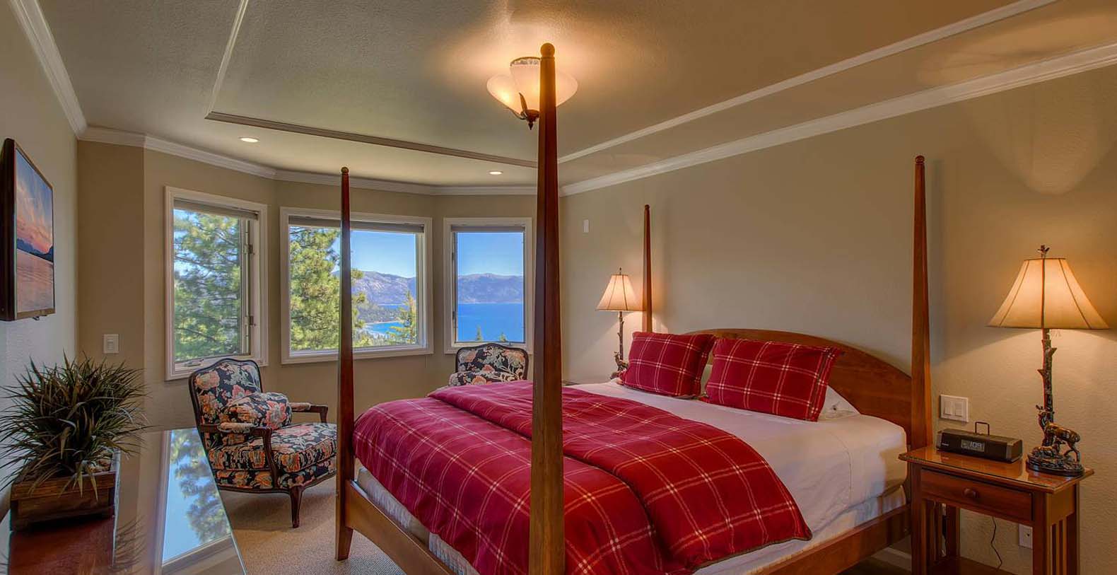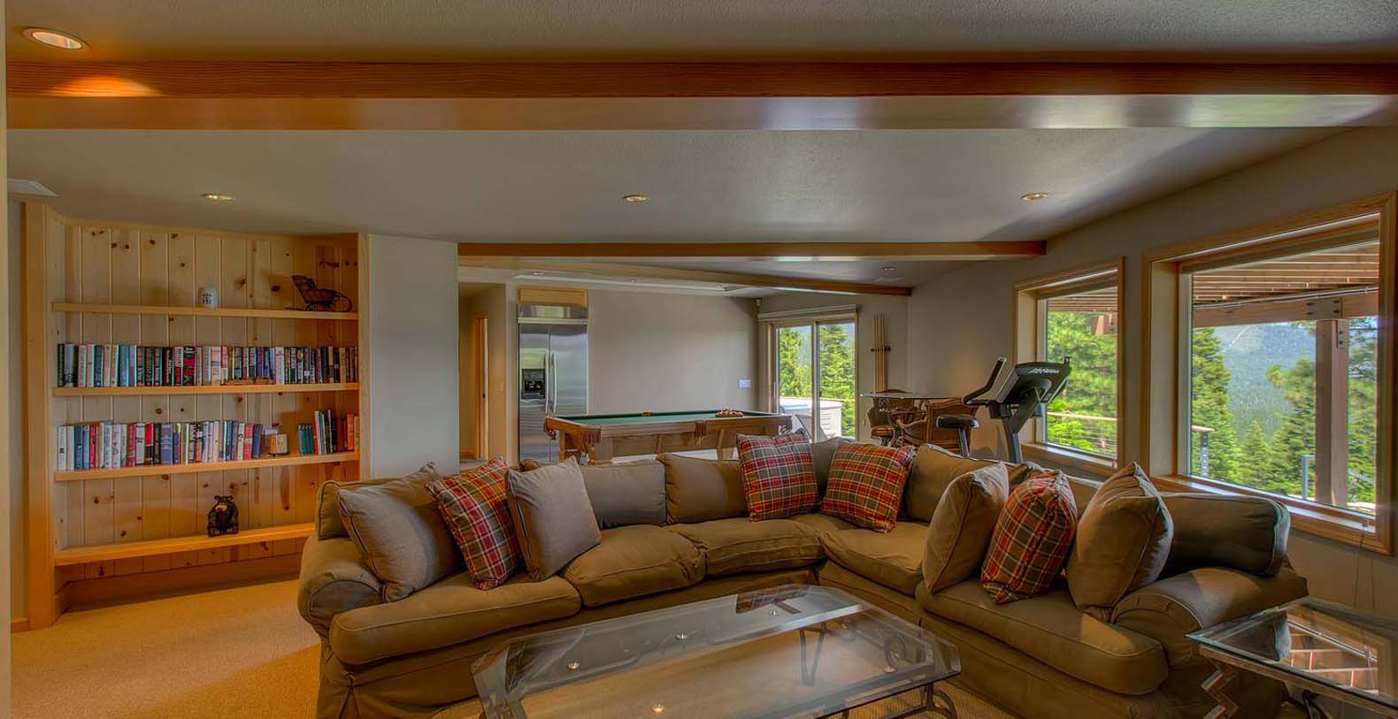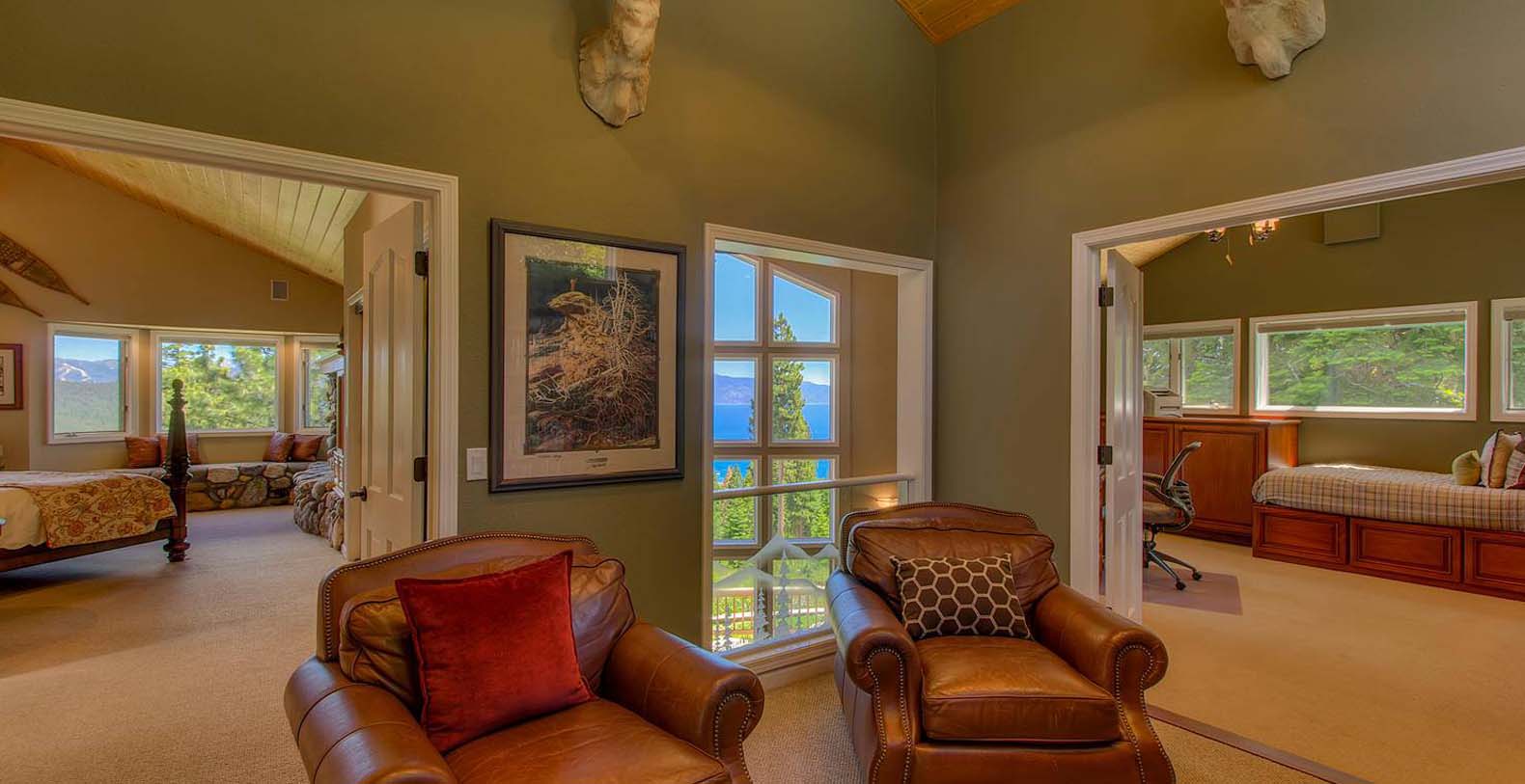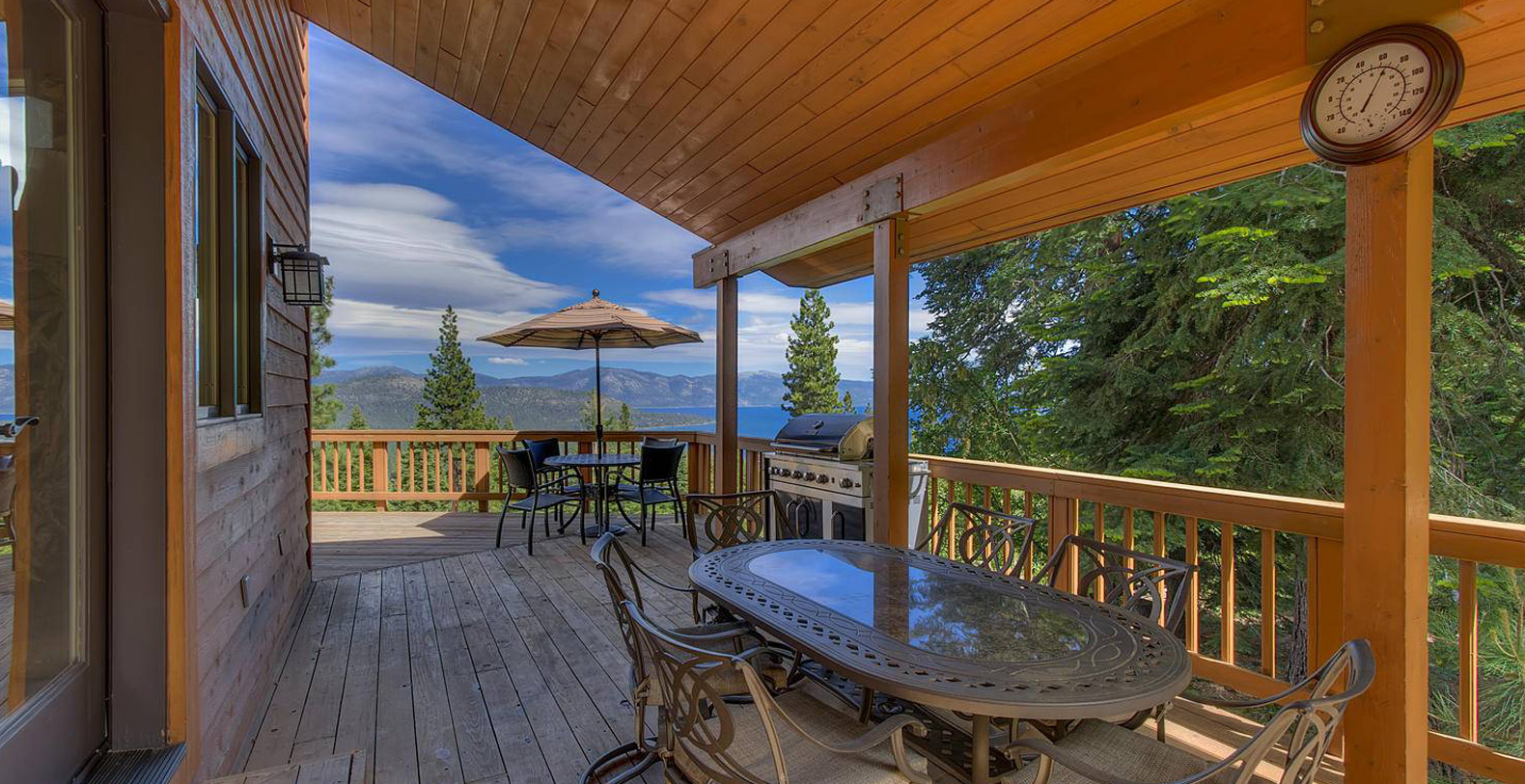 The home is spacious enough for the whole family. The family room has a pool table and sectional sofa with large screen television. Walk out from the family room to the 1,400 square foot Quartzite patio and hot tub looking over the lake and open to gaze at the stars. Get your workout done in an extensive gym. You will enjoy beautiful lake and mountain views throughout the entire home from Diamond Peak Ski area to Heavenly Valley.