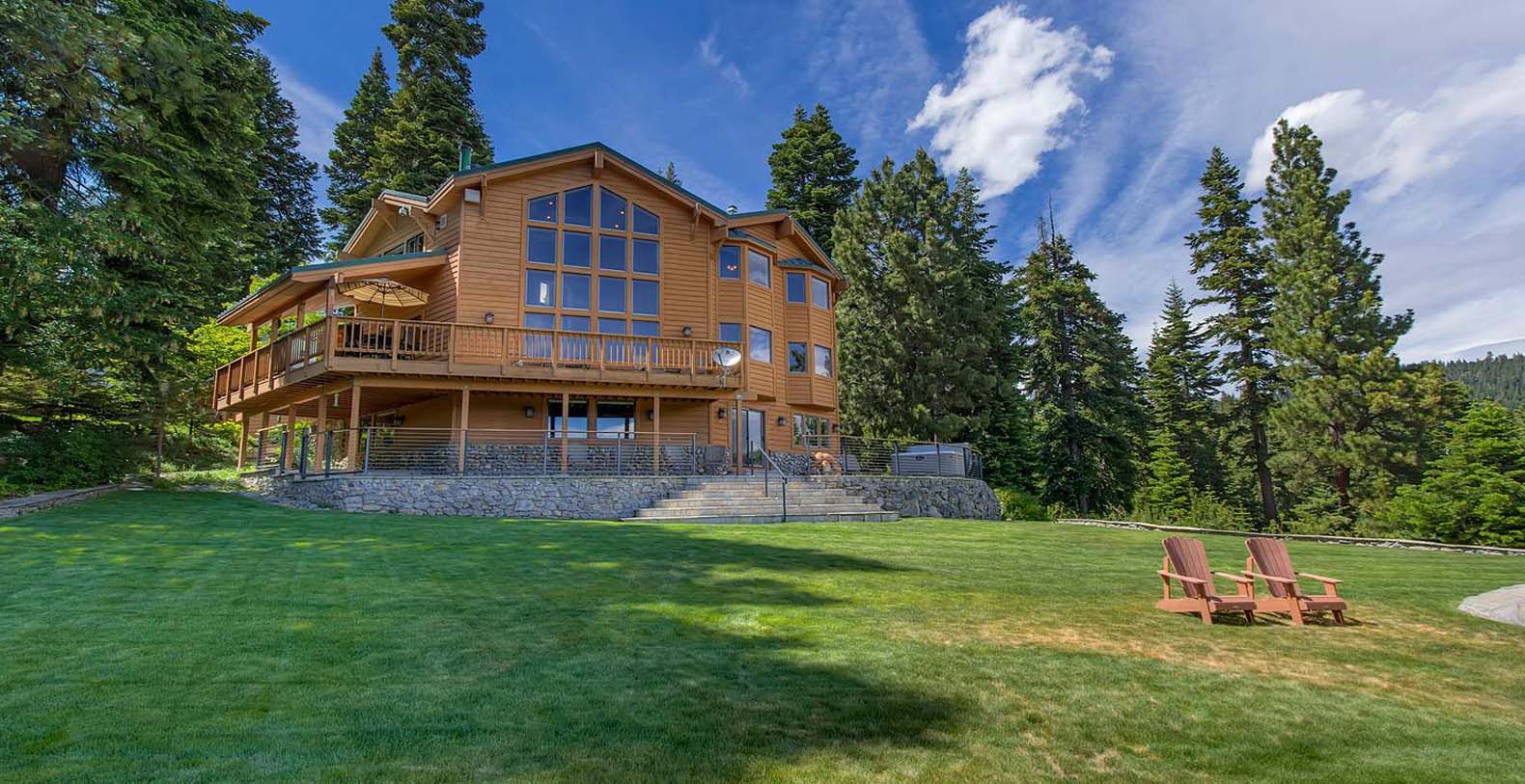 Tahoe Beauty is a 4,770 square foot home nestled on a very private lot, with national forest on three sides. It has private beautiful grounds, large lawn areas and waterfall. The interior was professionally done and includes high end furnishing and designer bedding.