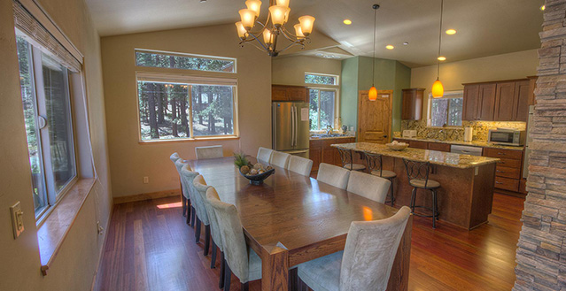 This house is unbelievable! Brand new construction in 2010, this house was designed specifically for vacation rentals, every detail with you in mind! The home has 6 bedrooms and 4 1/2 baths, can sleep 15 people comfortably, has a private hot tub on the 1200 square foot upstairs deck, game room with pool table and 37" flat screen TV, dual master suites, one with a jacuzzi bath tub, both have gas fireplaces and flat screen TV's, and an enormous kitchen with dining for 12! The upstairs living plan has hardwood floors and a 55" TV, the kitchen has granite counters and a beautiful gas range, dual sided gas fireplace faces both the living room and kitchen, there is a gas barbecue on the deck, and a wet bar with mini fridge and wine refrigerator! All this and you will be only 5 minutes to Heavenly Ski Resort, beaches, and casinos! Amazing!