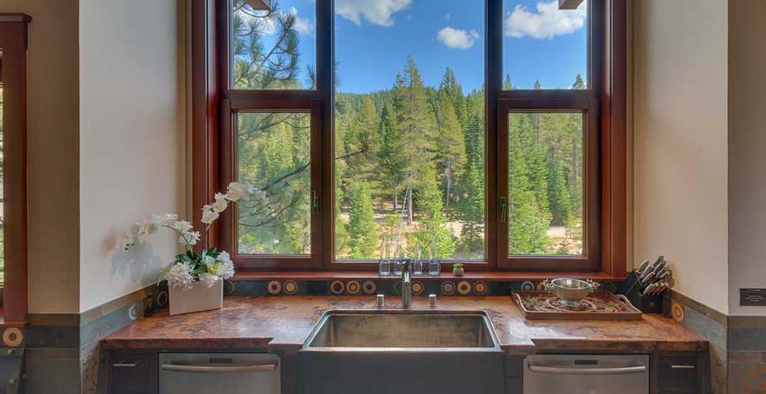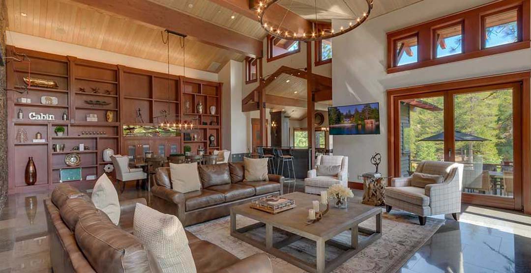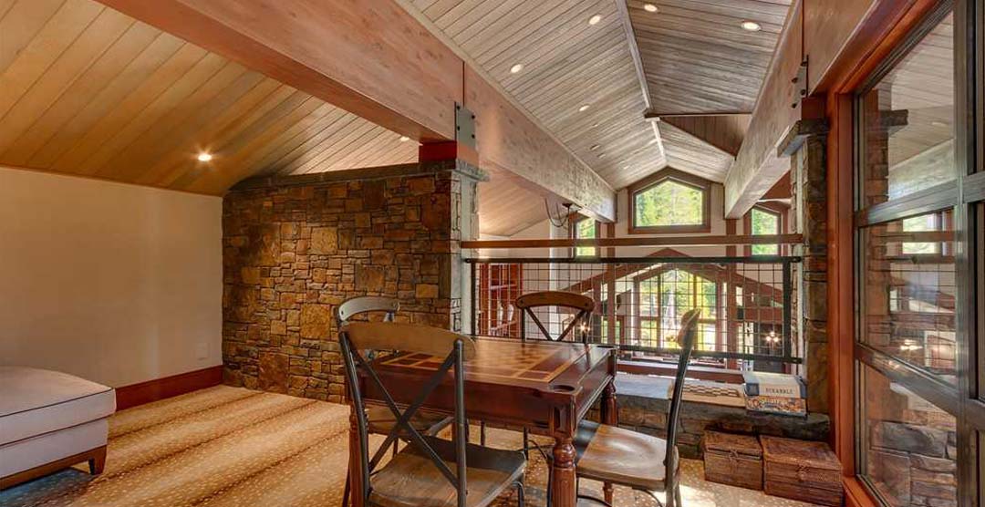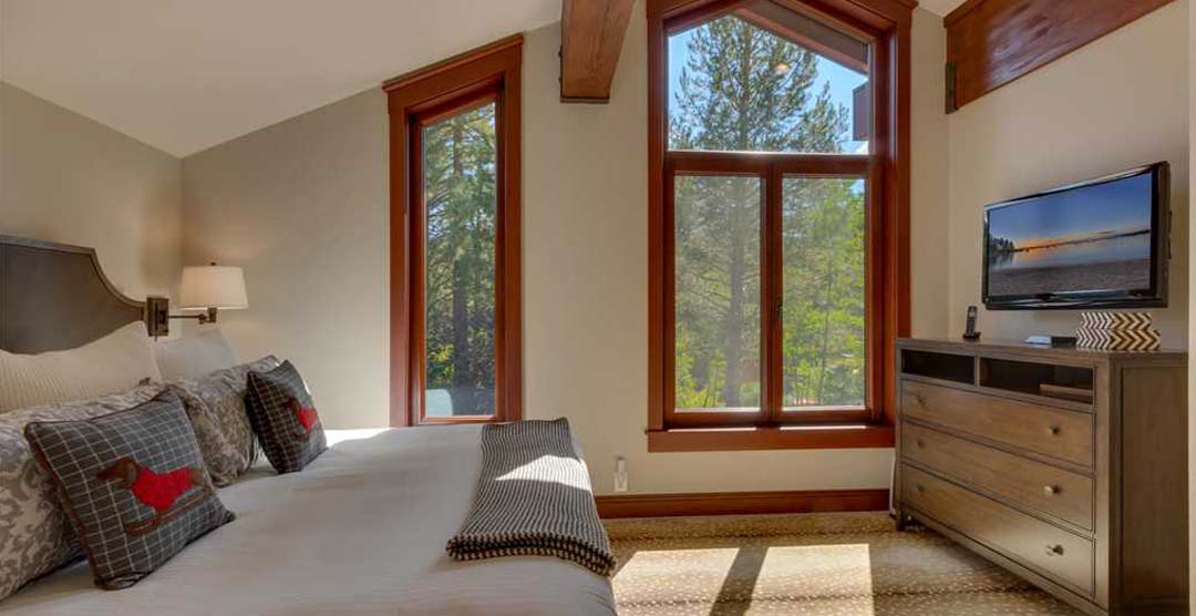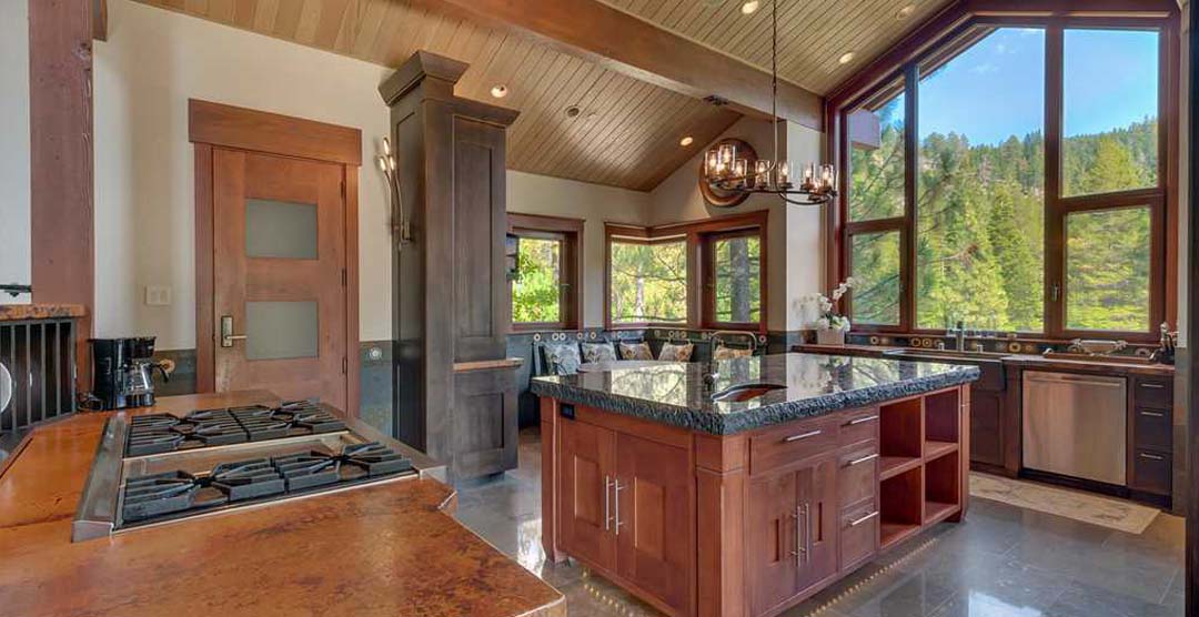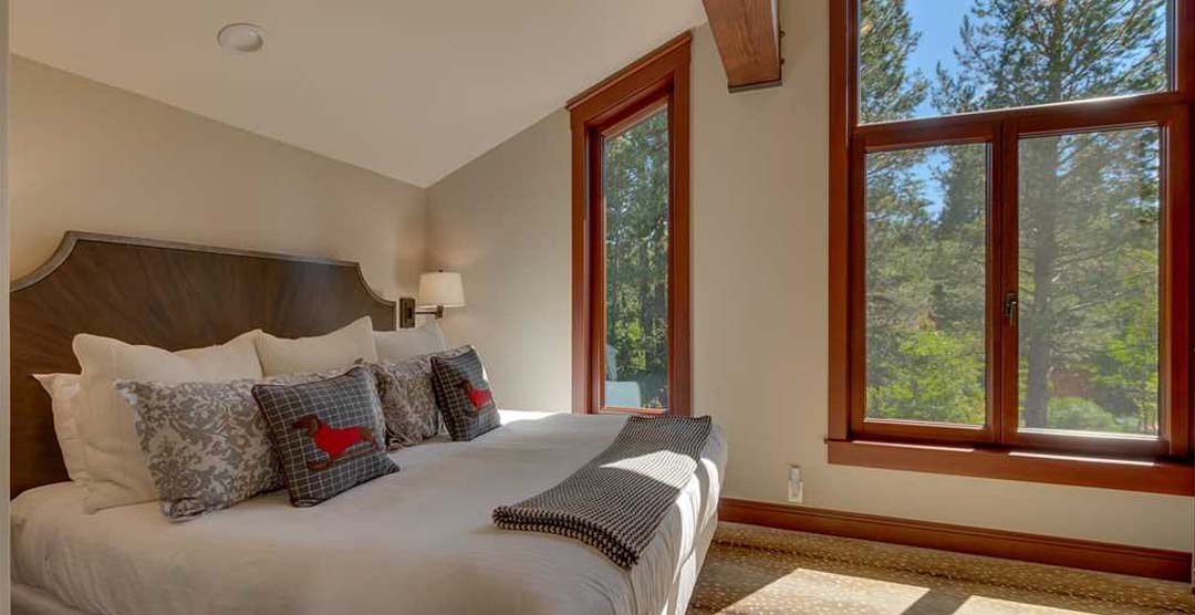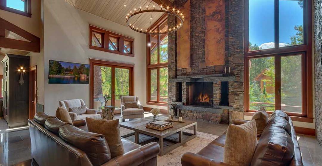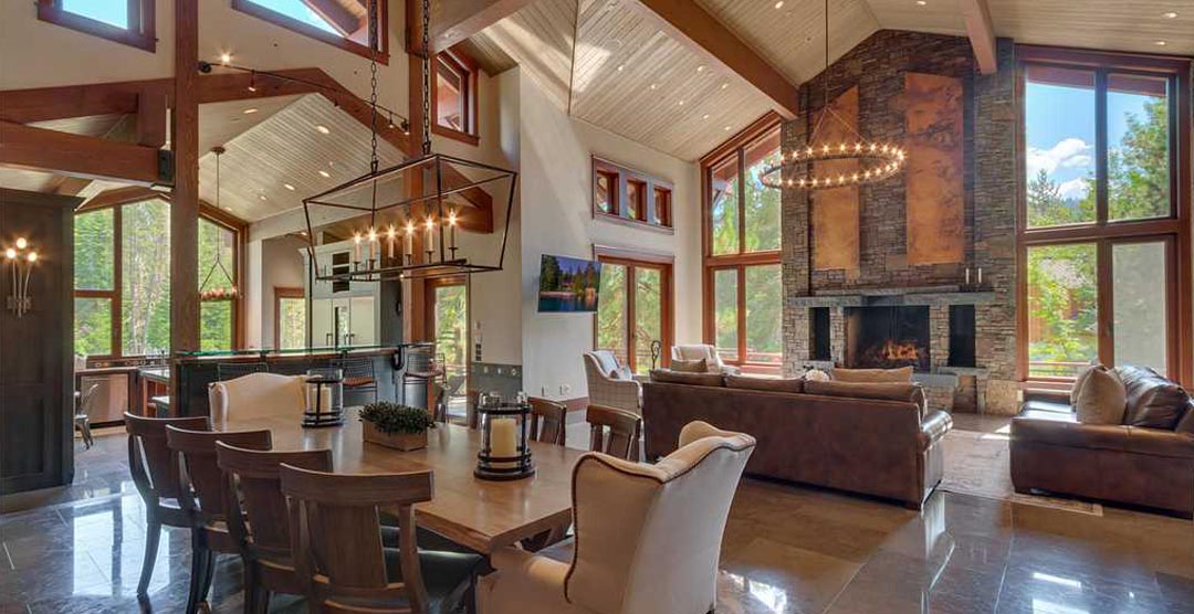 Inside, the comfortable floor plan is complemented by the towering stone-stacked fireplace with copper accents inviting you to relax. The cathedral ceilings and picture windows that frame glorious views and all-day sunshine create a bright and open space for enjoying your Tahoe getaway from the moment you rise.