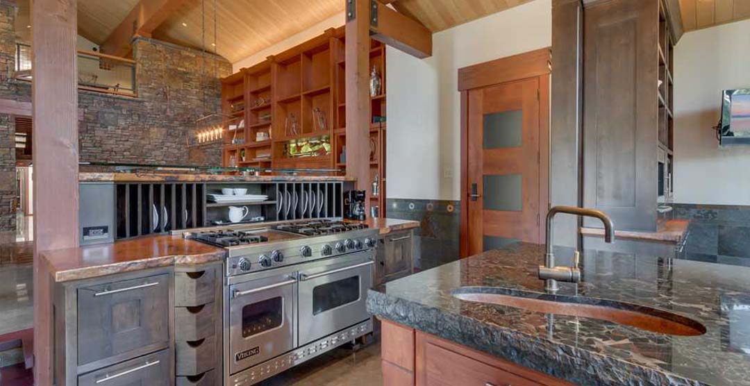 Surround yourself in luxurious comforts in this craftsman-inspired, architecturally superior home in the exclusive Painted Rock Estates community of Squaw Valley. This vacation rental features a blend of warm tones and modern touches with exceptional finishes like custom handcrafted steel, reclaimed Douglas fir, Portuguese limestone flooring and exquisite stone. Even before you set foot inside this paragon of design, you will notice the natural and serene creekside setting, the carefully planned landscaping, and the and the beautiful exterior stonework.