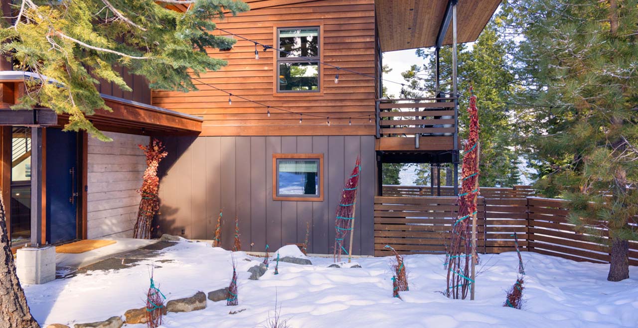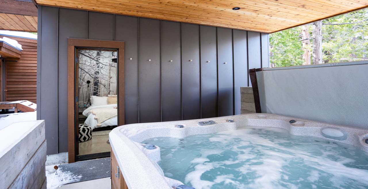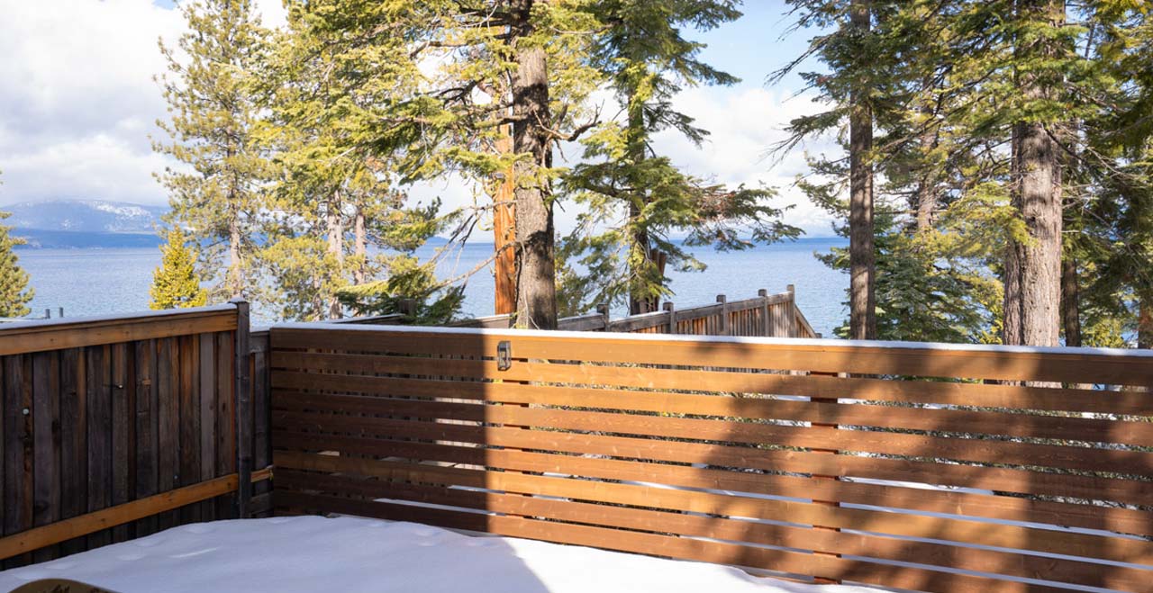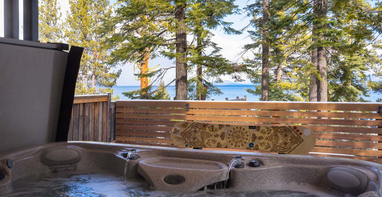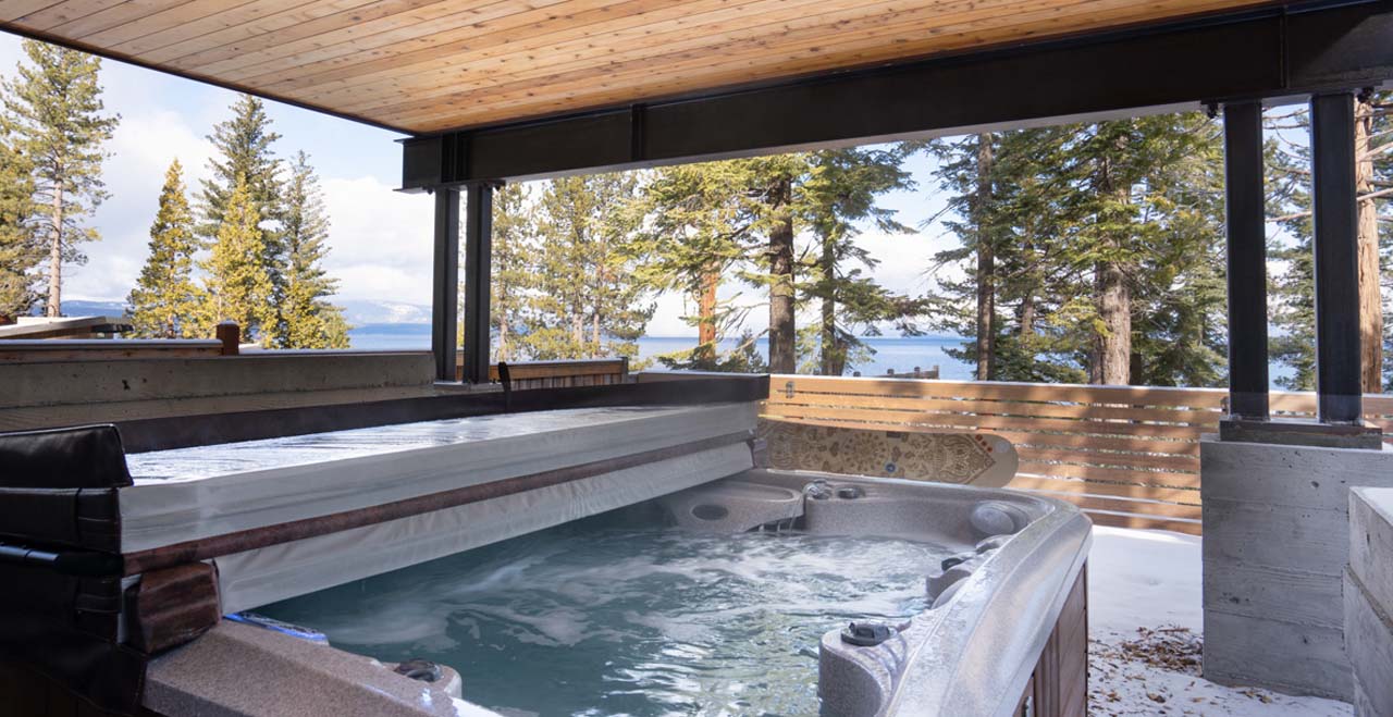 Alpine Chic Home with Private Hot Tub Steps from the Beach. Combining a feeling of total sanctuary with striking modern architecture, this newly constructed 3-bedroom home lies steps from the beach on Tahoe’s West Shore, with lake views through floor-to-ceiling windows and soaring pine trees lining the grounds.