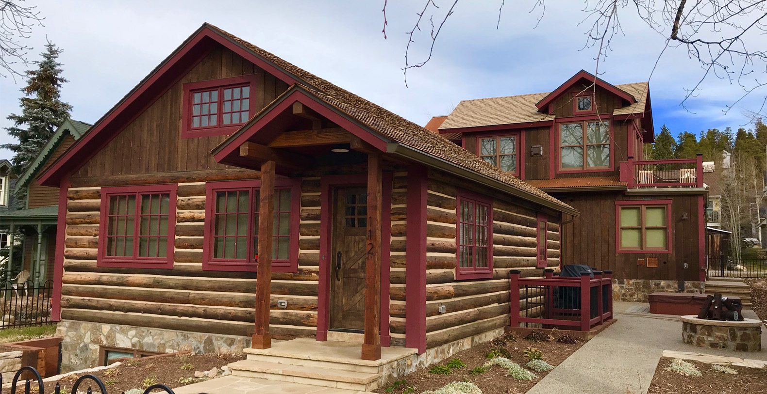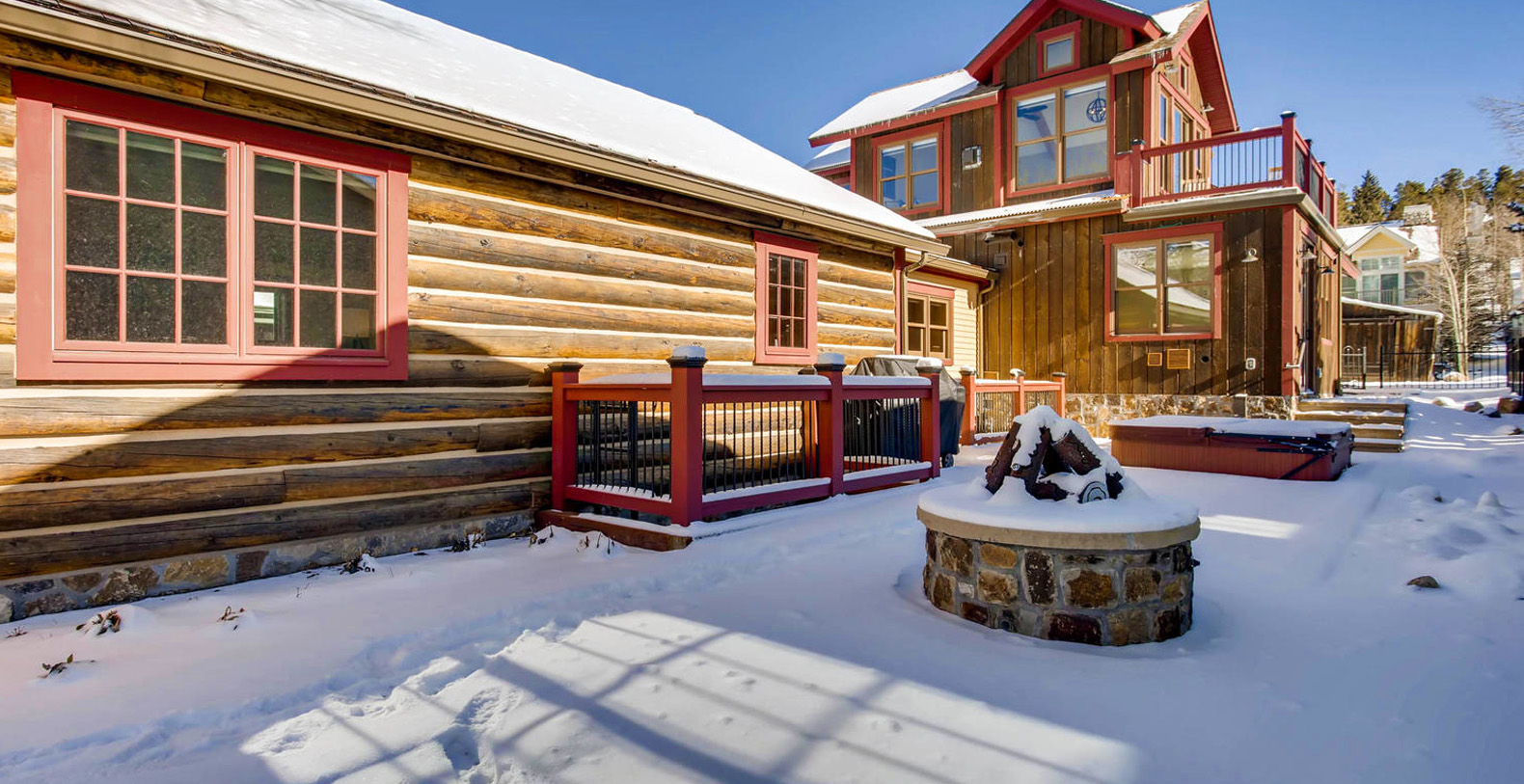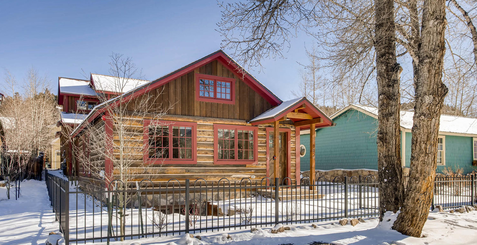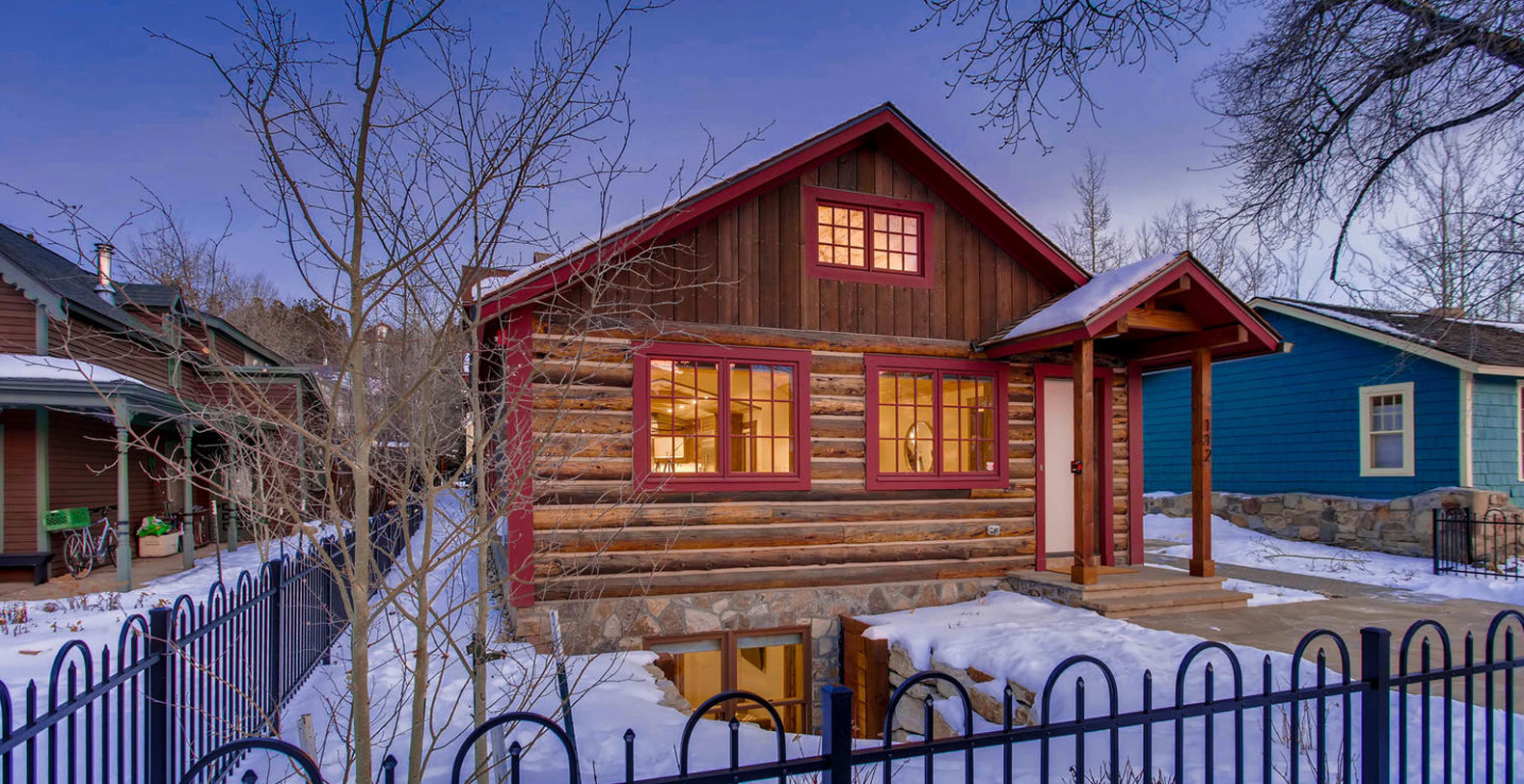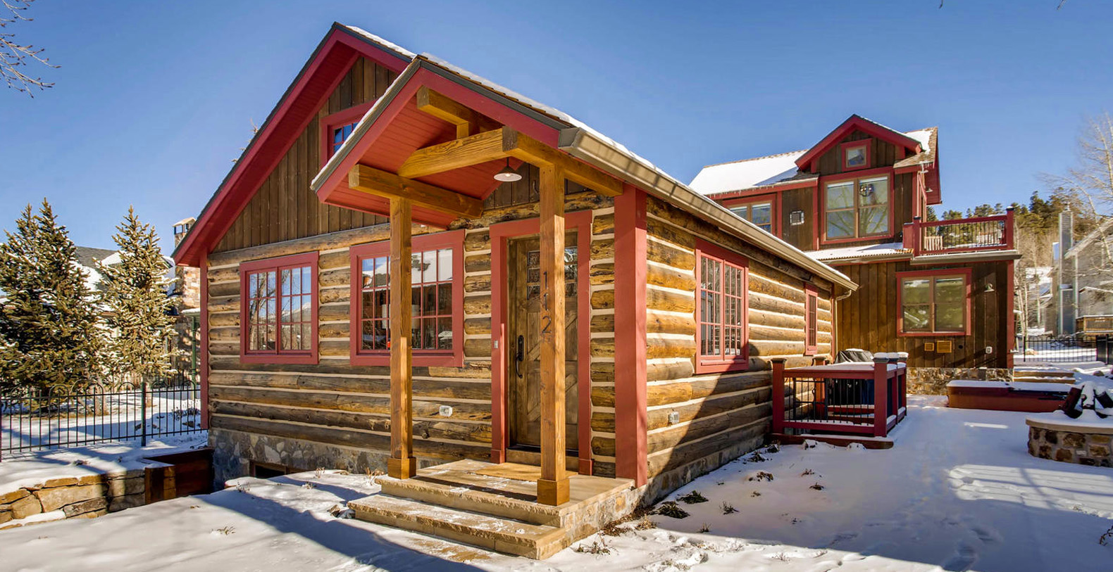 Completely rebuilt 5 bedrooms 5 ½ bath 3800 square foot log home in the historic district of downtown Breckenridge. Located across from The Breckenridge Public Library and the Speakeasy Movie theater showing first run movies. Harris House is custom designed and beautifully built on the site of an historic mining cabin sleeping up to 13