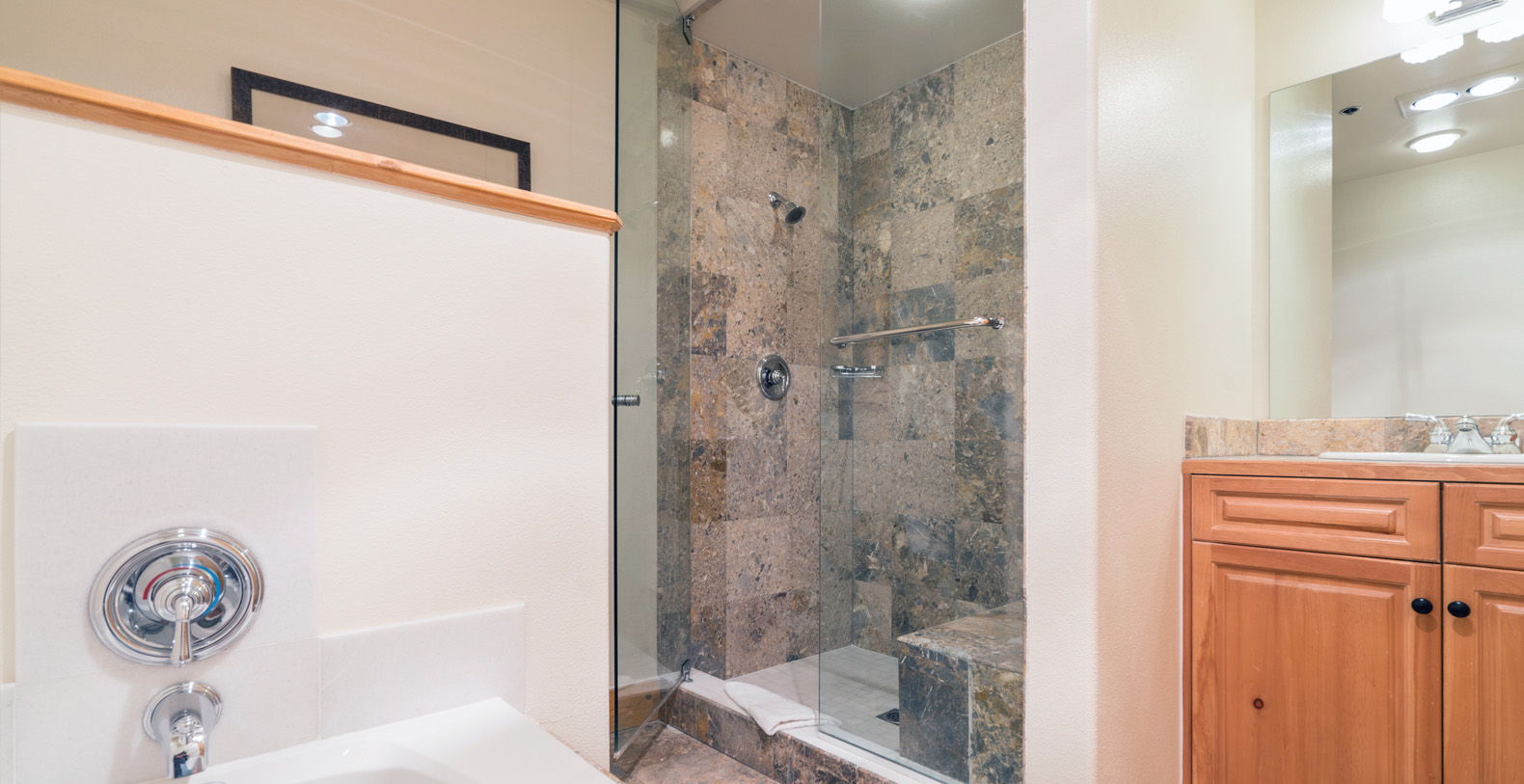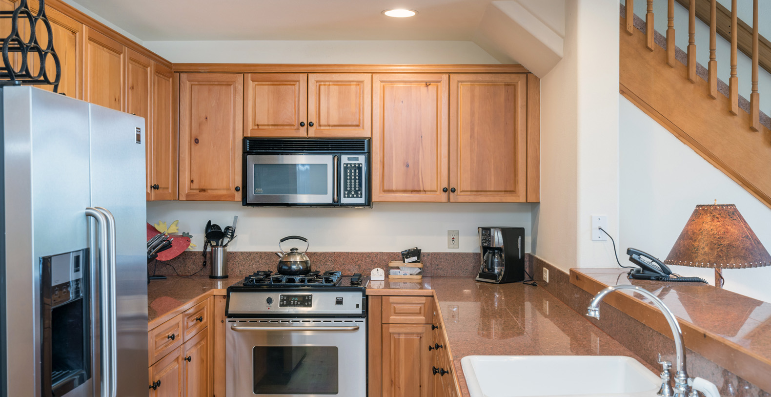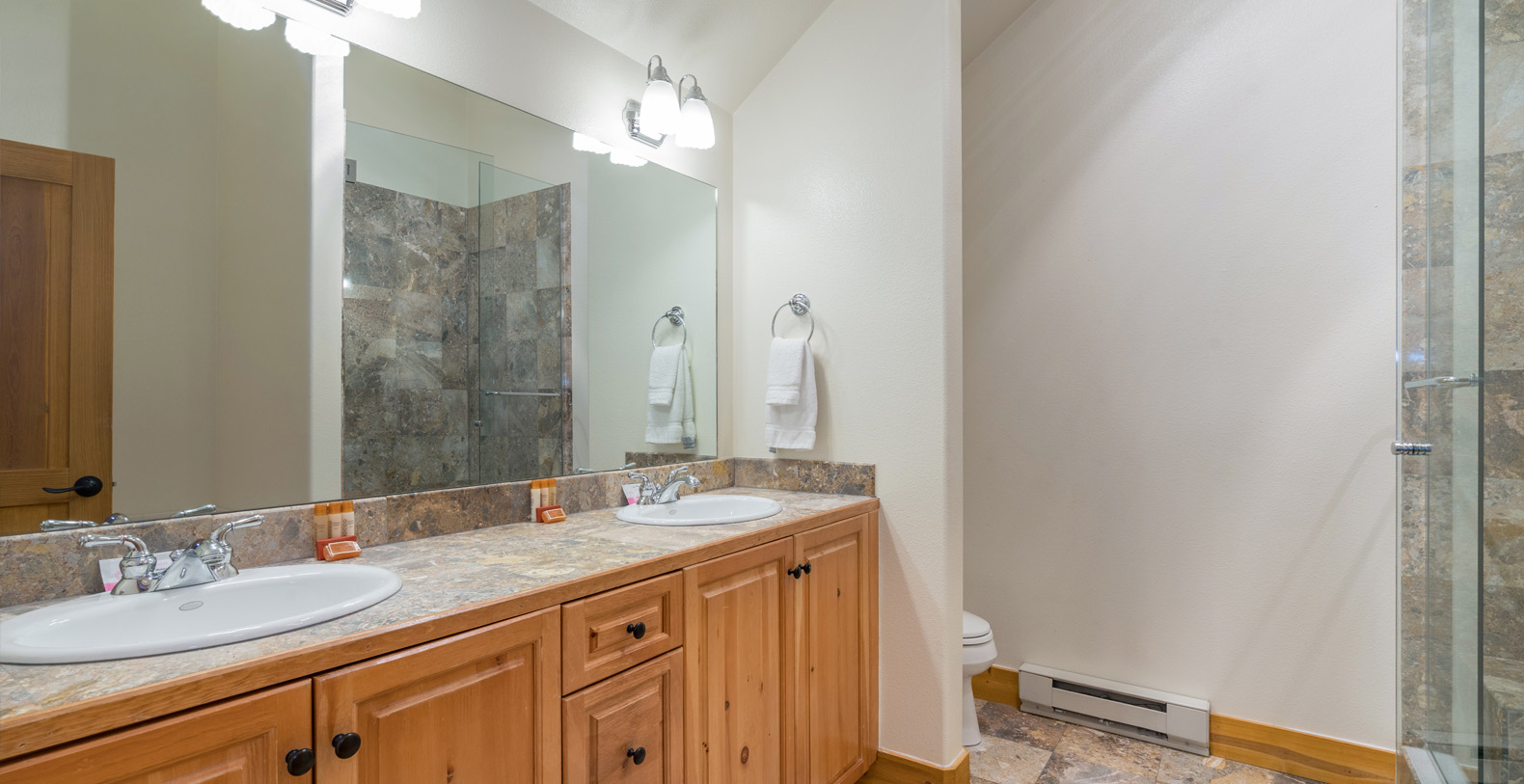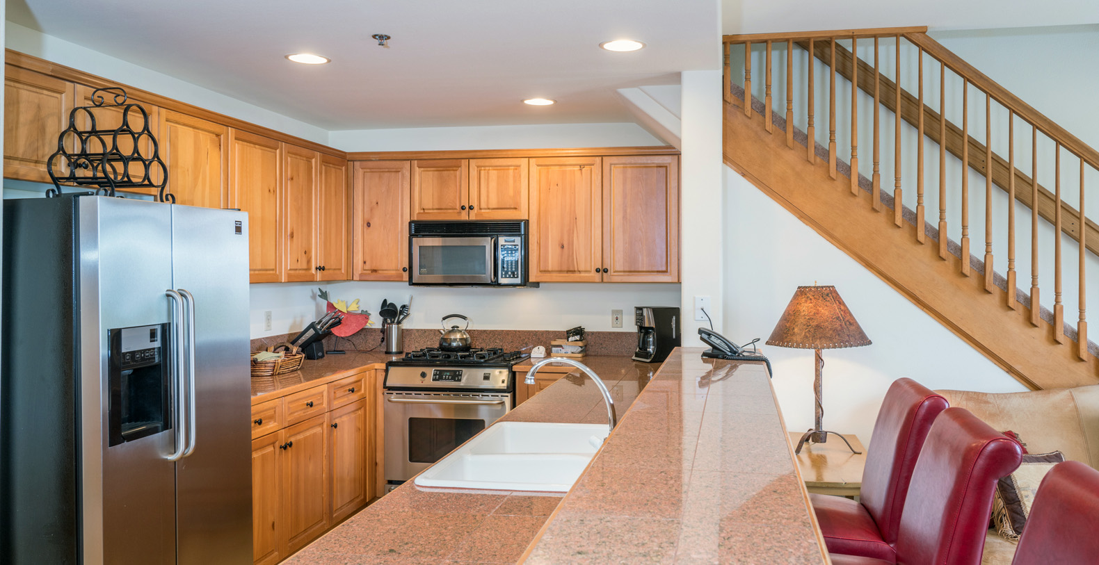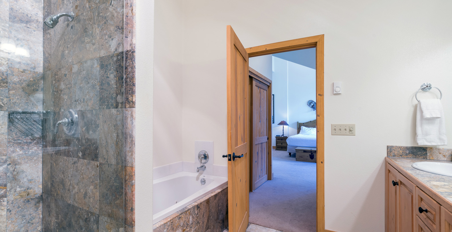 Enter this condo on the 4th floor and walk into the open dining area and living room with a gas fireplace, 46-inch flat-screen TV, balcony with mountain views and queen sleeper sofa. The living room is open to the kitchen with granite countertops and a breakfast bar with seating. On the main level is a bedroom with a king bed, TV and an ensuite bathroom with jetted tub and separate shower. The 2nd bedroom on the main level has a king bed that can be split into 2 twins, TV and a bathroom in the hallway with shower/tub combo. Upstairs is the master bedroom with a king bed, TV, walk-in closet and ensuite bathroom with double sinks, jetted tub and separate shower. There is also a safe in the master bedroom. On this floor is another bedroom with king bed that can be split into 2 twins, TV, walk-in closet and ensuite bath with jetted tub and separate shower.