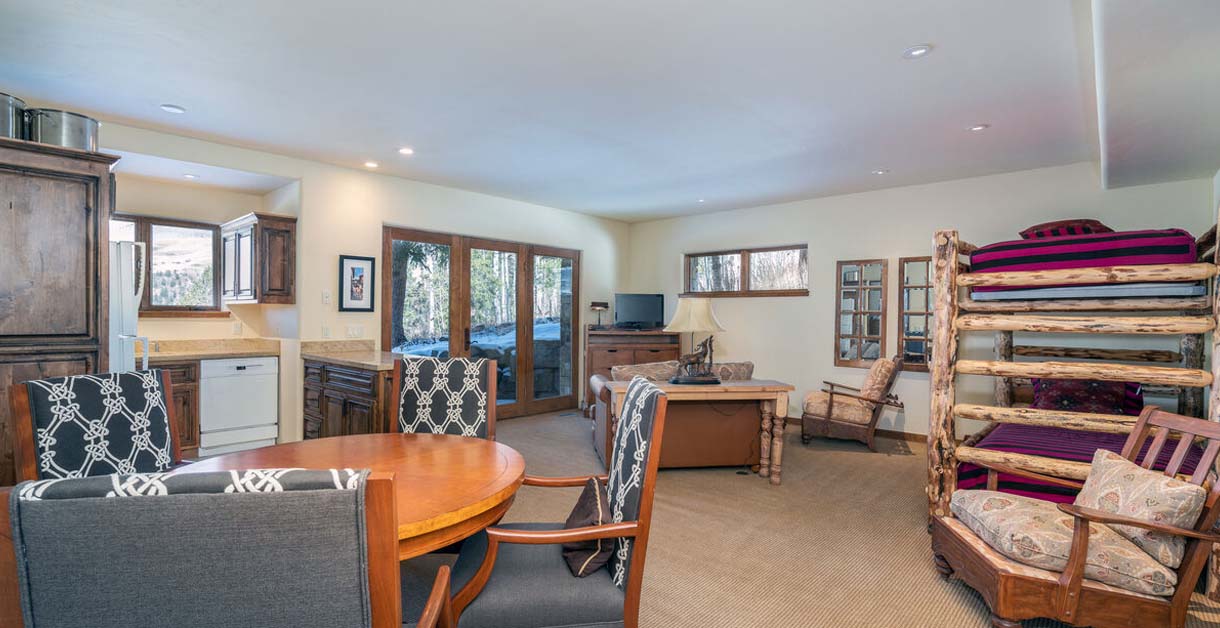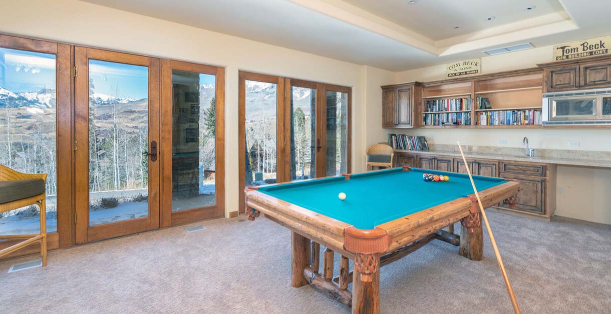 Welcome to your very own mountain retreat with views to make you feel like you are on top of the world! Located in the Timbers development of Mountain Village across from the golf course, this huge 2+ bedroom home has everything to make your Telluride vacation a dream come true. With two floors, each equipped with full kitchens and living areas, this house makes the perfect getaway for families that want to be together, but also have their own privacy and space. The lower floor has its own apartment that closes off from the rest of the house if you choose. There is huge living area with a set of twin bunks, comfortable sitting area, separate queen bedroom, and full bathroom. Make your own meals in the full kitchen and enjoy them on the walkout patio. The ground level also has a separate billiards room where can stare out at the San Sophia Range while you show off your skills on the full-sized pool table.