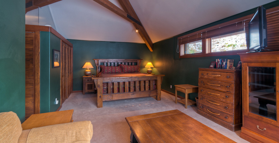 There is a second Master on the top floor that has a Queen and separate sleeping area with bunk beds. The view tower has a built-in single bed with a massage table. Off this tower is the hot tub platform with absolutely stunning views to soak it ALL in at the end of the day