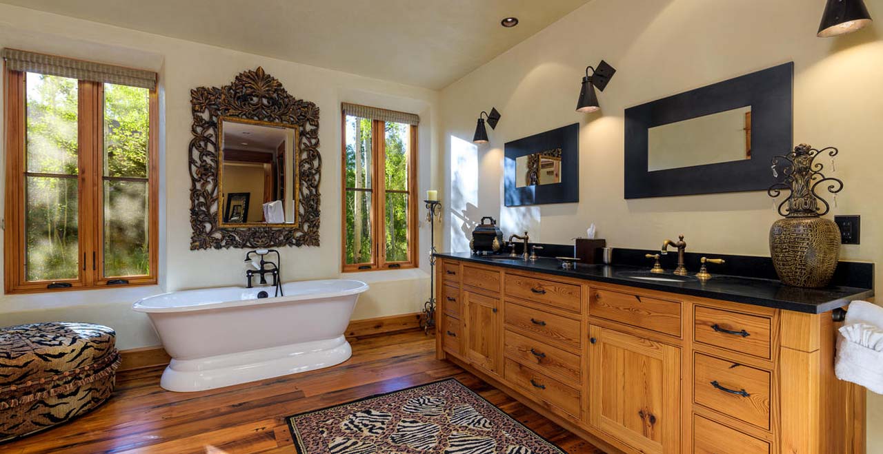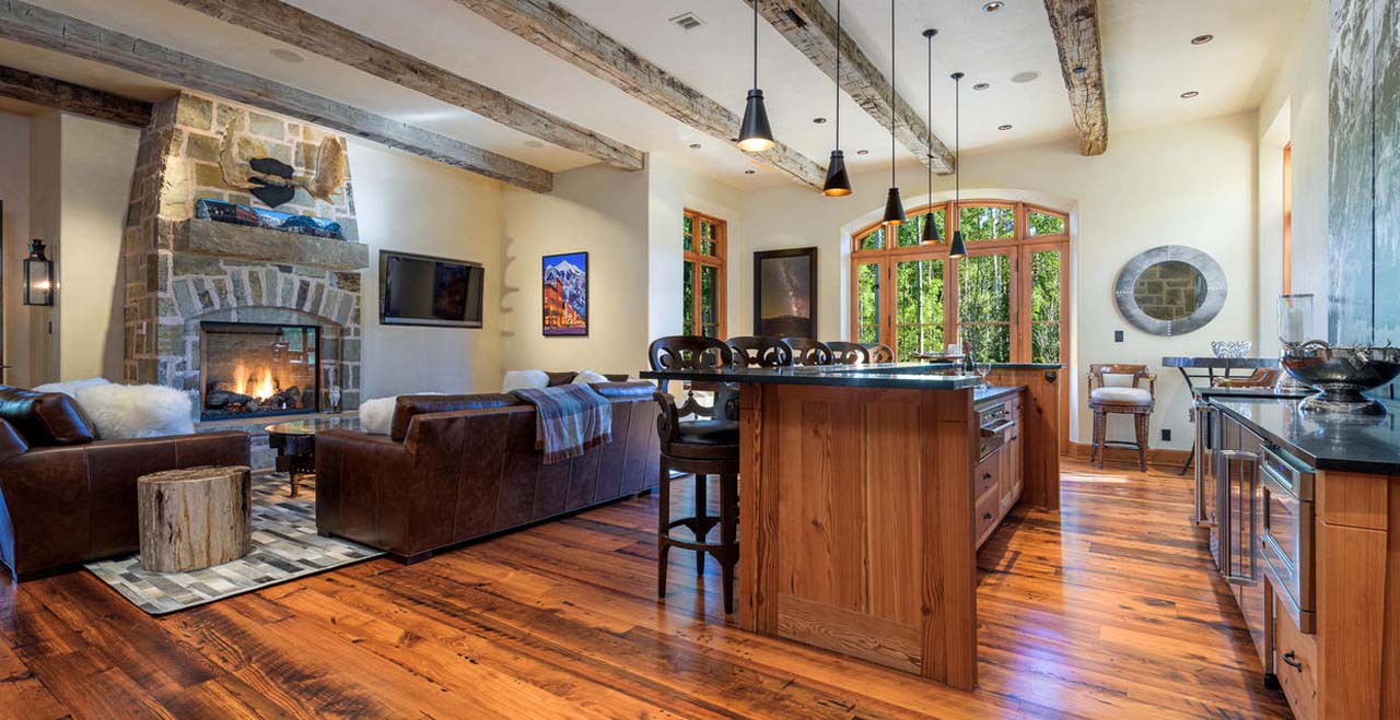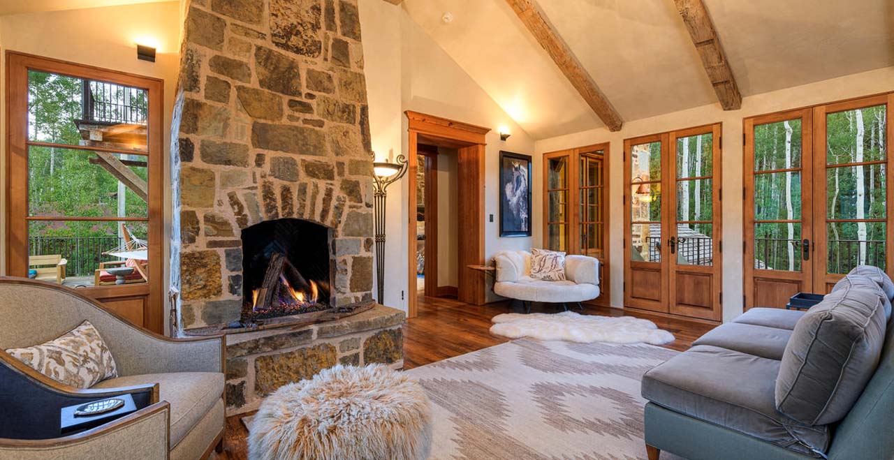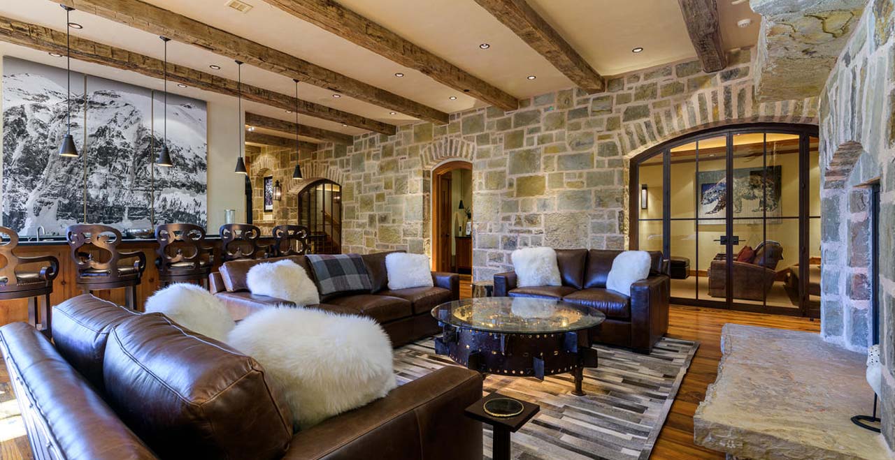 Among the most sought-after ski properties within Mountain Village, Wilde Chateau is a beautifully hand-crafted stone estate reminiscent of a Tuscan farmhouse or Hill Country ranch. Artfully combining rich antique oak timbers with rugged imported sandstone, the home's interiors are warmly accented with long-leaf pine, clear-grain fir, rough-sawn flooring & tumbled brick.