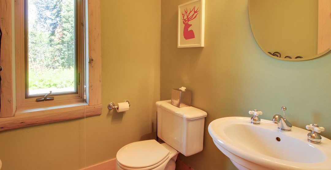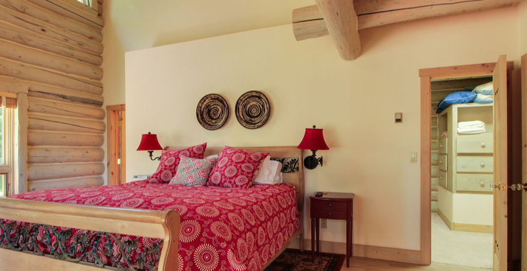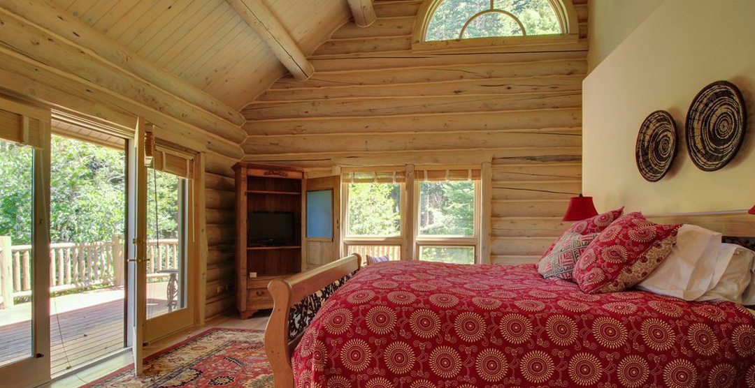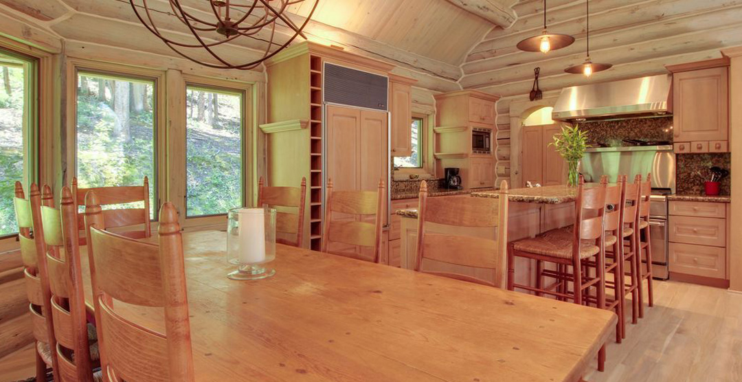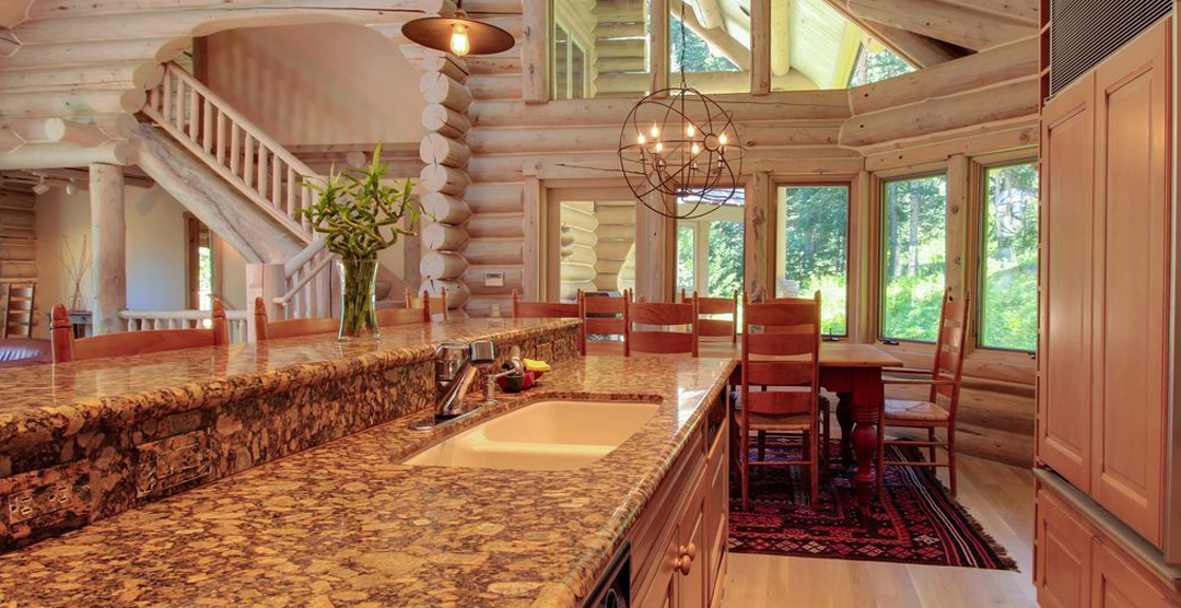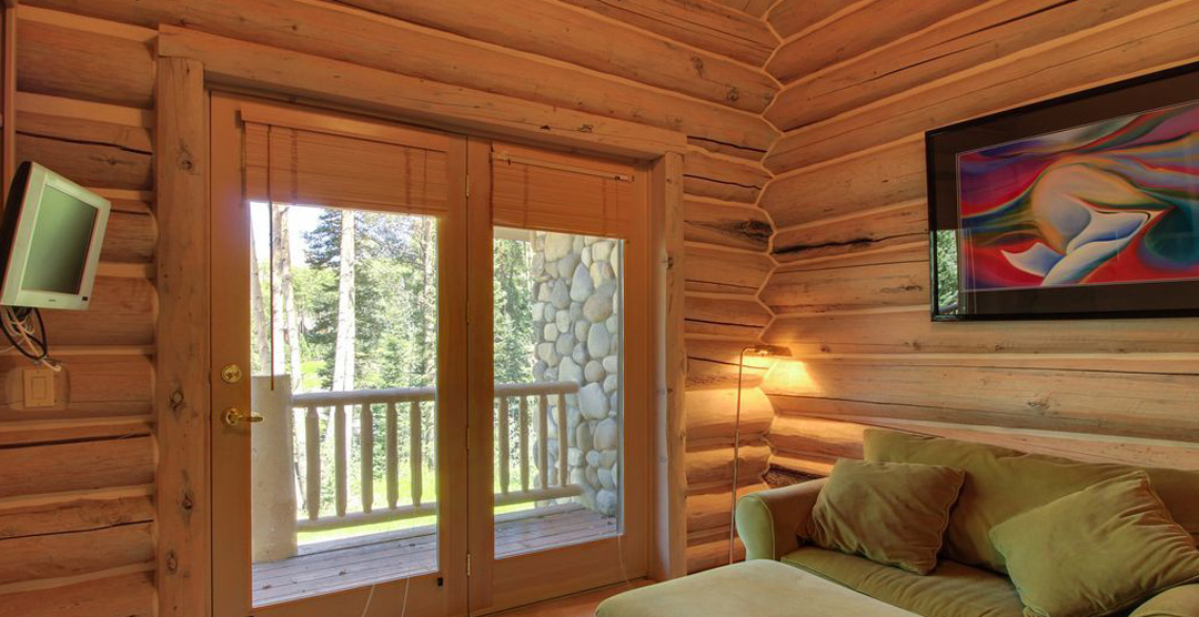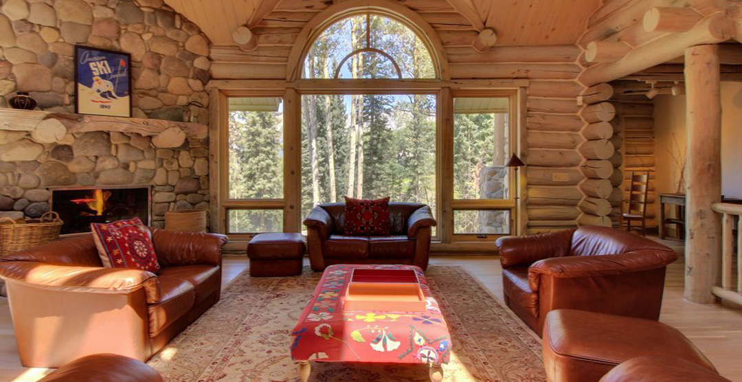 Custom built 6 bedroom log and stone residence located on a beautifully wooded and private 1.19 acre lot with excellent ski access just