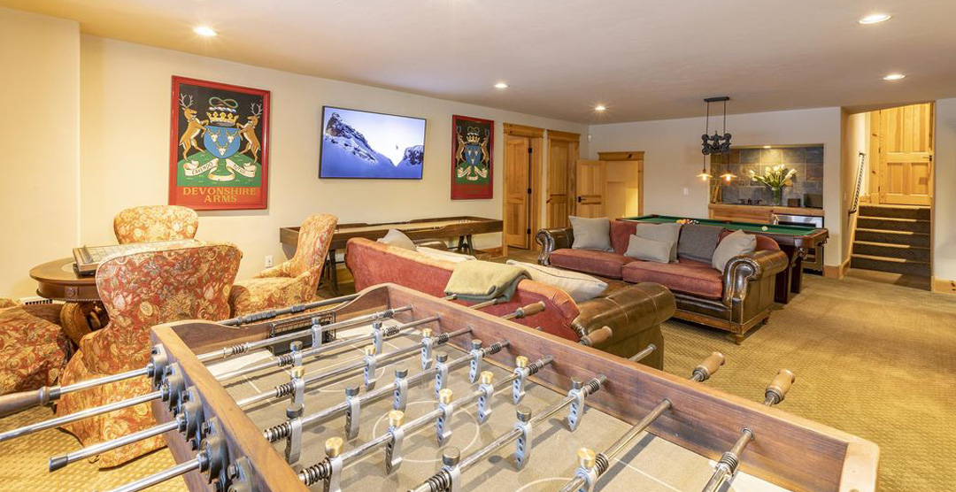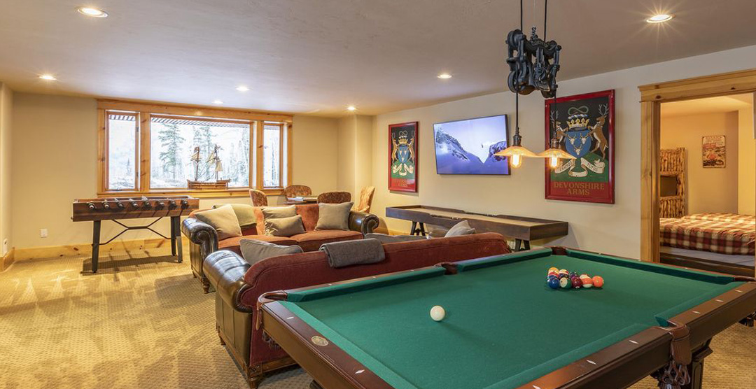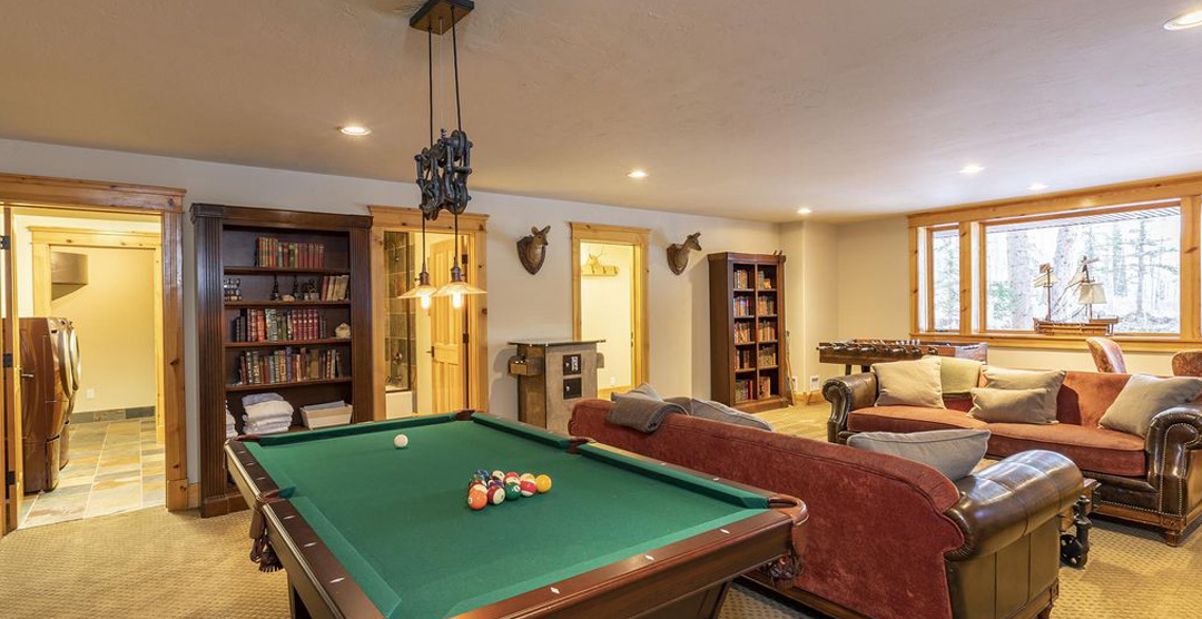 Game Room. A tournament-sized billiards table, foosball table, card & game table, wet bar, refrigerator, draft beer tender.