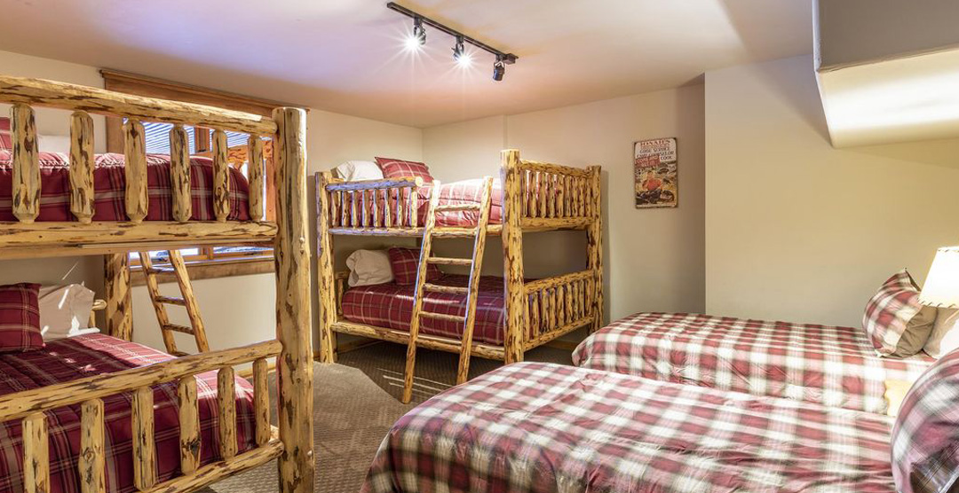 Bunk Room. 4 pine log (double) bunk beds and two twin beds - (up to ten kids can sleep in this room).