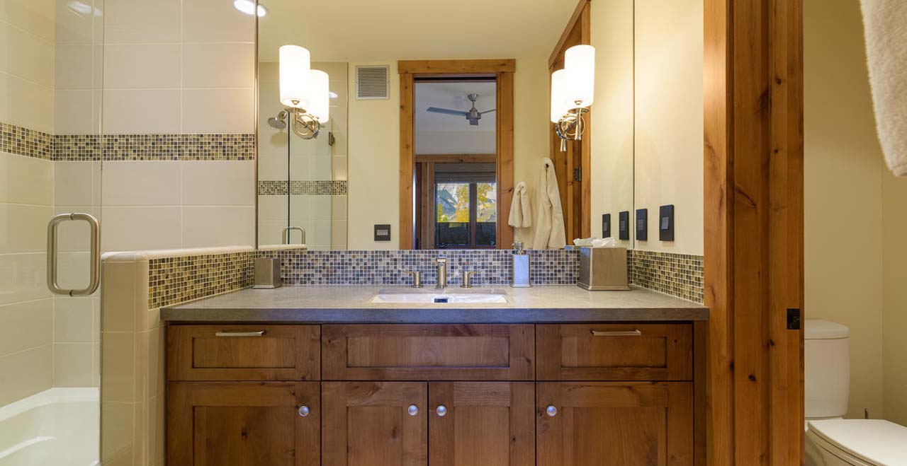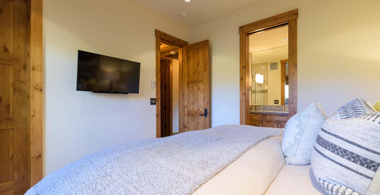 In the main living area, floor-to-ceiling windows ensure you never miss a moment of the stunning skies, and the huge gas fireplace helps create an idyllic scene of comfort and warmth that’s perfect after a day on the mountain. The kitchen, which has easy access to the covered outdoor patio, features all stainless steel appliances, such as the 6-burner gas range and double oven. The breakfast bar and kitchen island both make this an exceptional spot to cook and gather with family and friends.