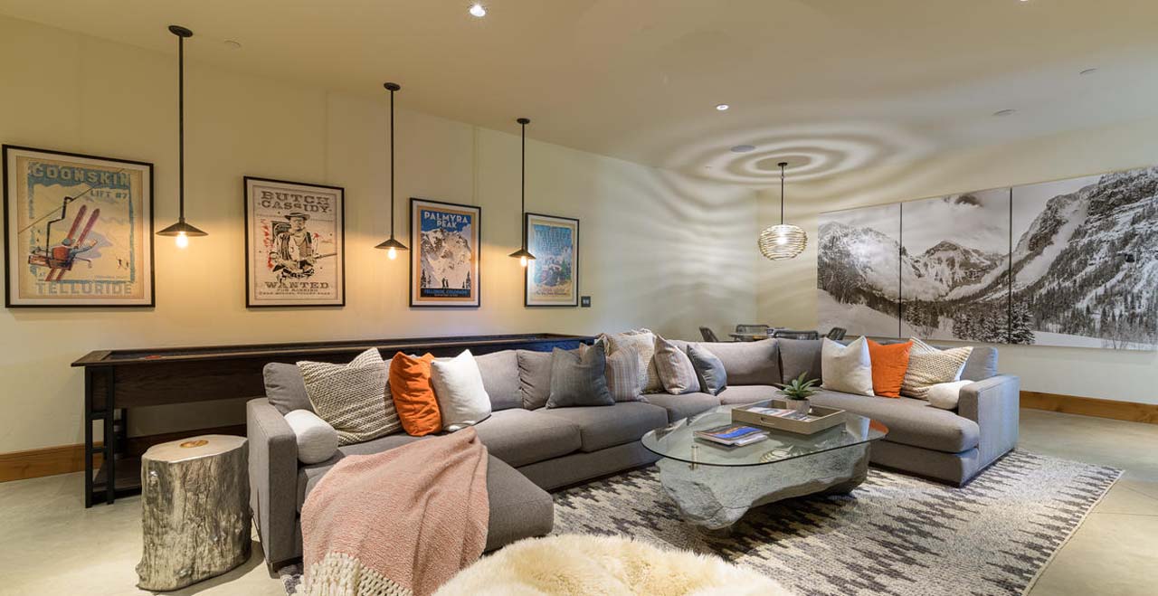 Nestled in the rolling hills that make up the west side of Mountain Village sits The Highlander: a 4-bedroom alpine retreat for up to 10 guests that feels quiet and secluded, yet is a short walk to the Galloping Goose ski run and just minutes from the action of Mountain Village Core. This brand new home was completely furnished and decorated by a Telluride interior designer to create the perfect Mountain Modern aesthetic. This design delights guests in every room, and the two living areas, game room/bar, and outdoor patios and balconies all come together to create an unforgettable experience at any time of year.