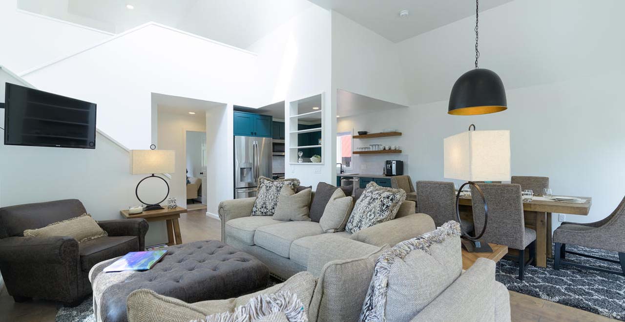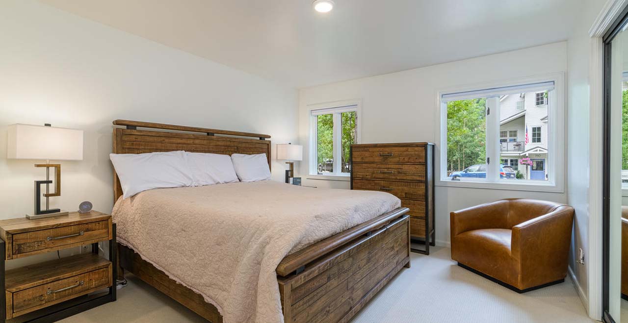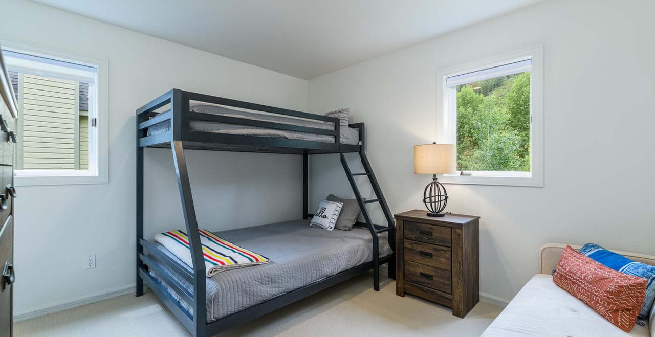 The four bedrooms are set up to accommodate any combinations of guests. Two king-bed suites, a loft with two full beds, and a bunk room with a twin on top and full on bottom all come together to provide various sleeping arrangement options for any group. Warm luxury throughout, traditional architecture, ideal location, and a serene setting all come together to make The Prospector one of Town’s best vacation homes.